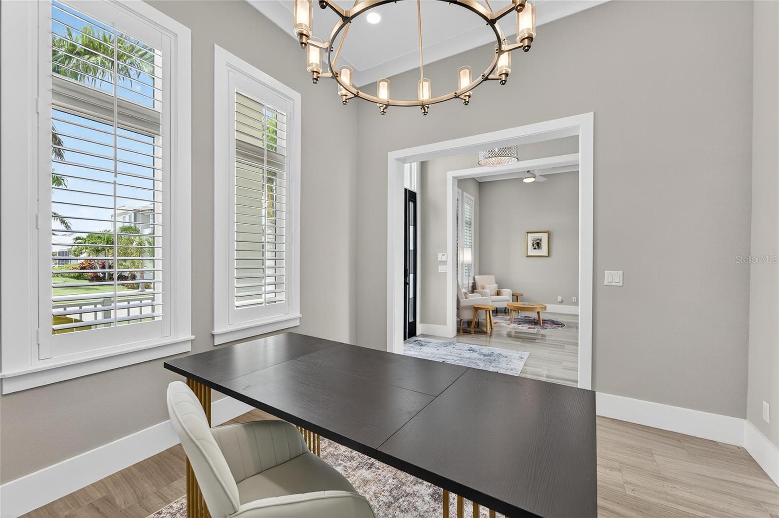 The home also boasts hurricane-rated windows and doors, a durable metal roof, tankless water heater, central vacuum system, LED lighting, crown moldings, and tray ceilings for added detail. Outdoor living is enhanced by gas and electric connections for a custom outdoor kitchen and a custom dog run with a self-access door.