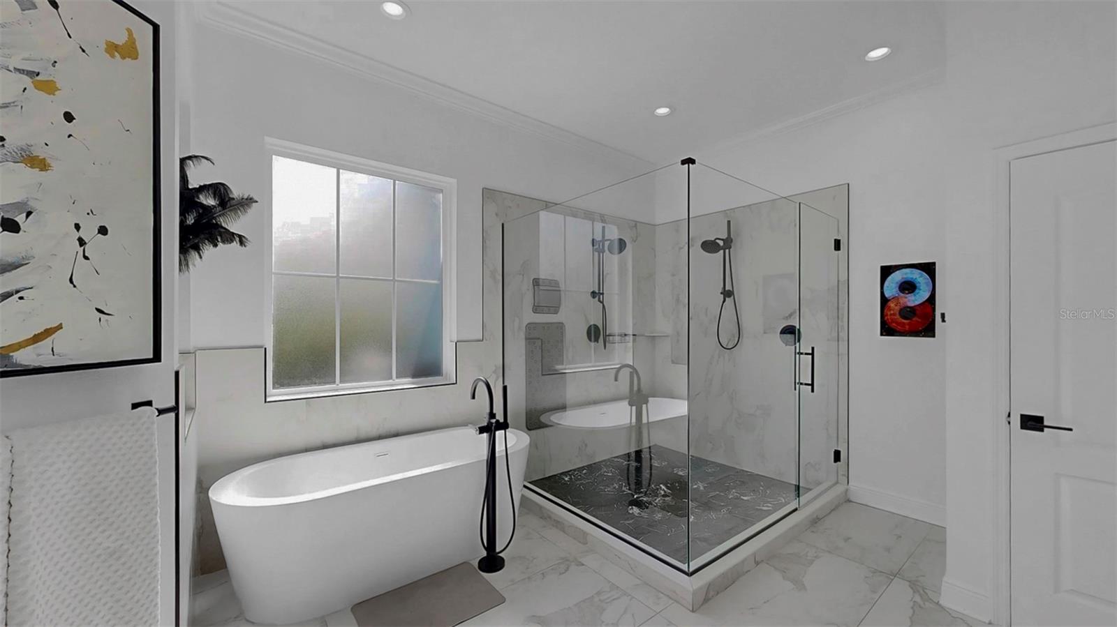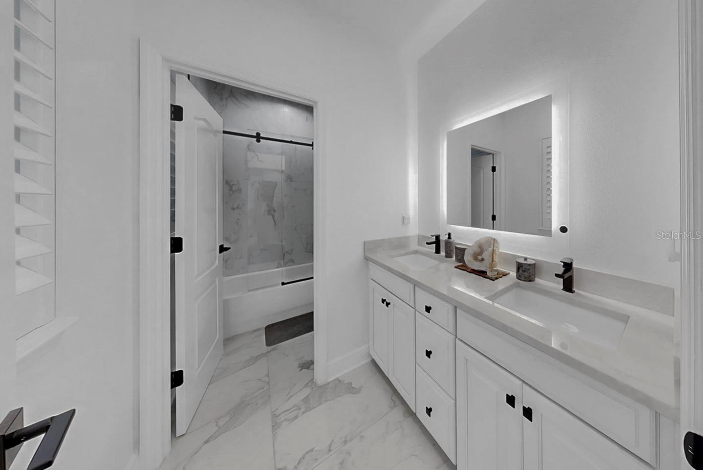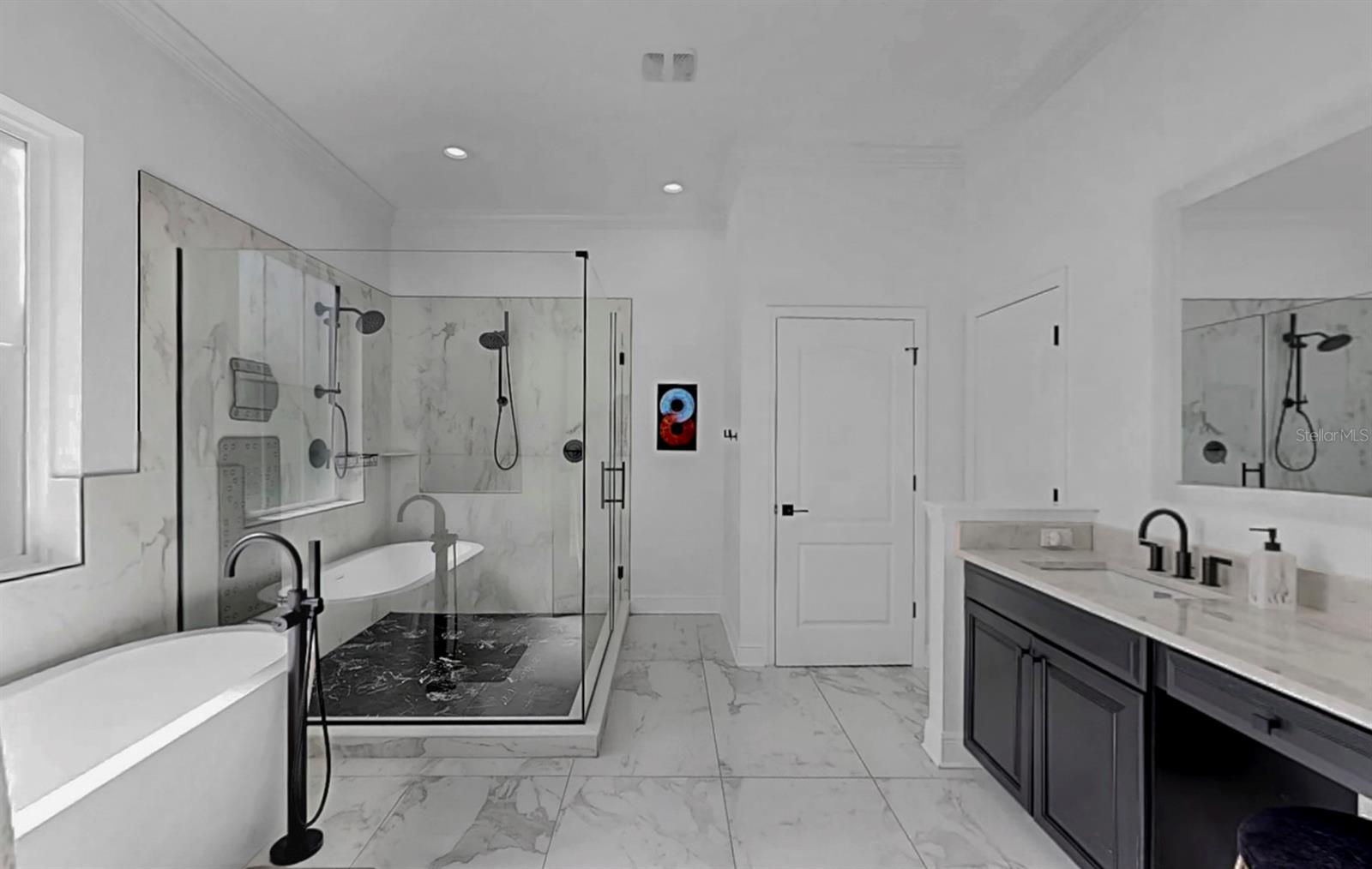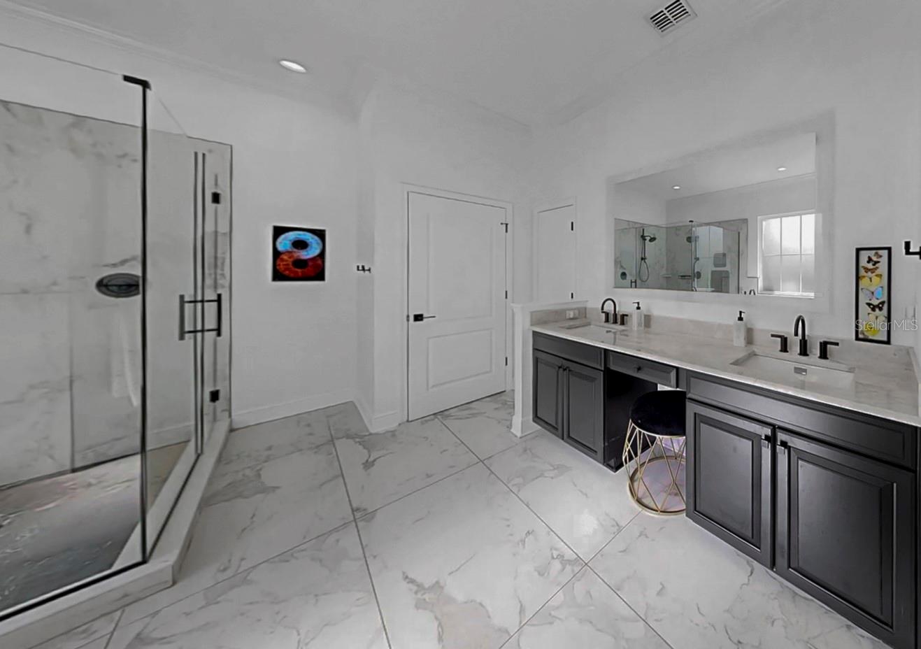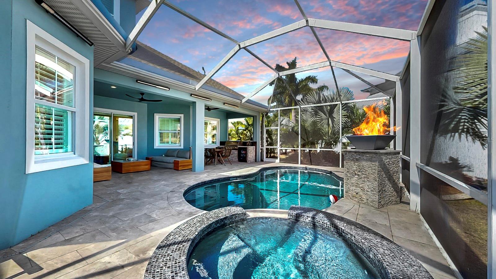 Waterfront one of a kind Custom home! Welcome to MiraBay, an exclusive gated waterfront community where luxury meets coastal charm. This completely renovated 5-bedroom, 4-bath single-family home offers over 4,100 sq. ft. of sophisticated living space designed for both comfort and entertaining. NEW Bathrooms, Kitchen, Floors, Pool/ Spa, Lighting, AC, Garage Doors AND Landscaping! A complete tropical OASIS with the lighting to show it off! Step inside to discover sleek contemporary finishes, marble floors, and designer lighting throughout. The gourmet kitchen is a showpiece, featuring high-end appliances, stone countertops, a custom walk-in pantry, and a butler's pantry, perfect for hosting in style. The open floor plan seamlessly connects to a spacious dining room and bright living areas with sliding glass doors leading out to your private pool and spa oasis. Enjoy resort-style outdoor living with fire features, sparkling water views, and lush tropical landscaping that create a serene coastal escape. The primary suite is conveniently located downstairs, offering privacy and luxury with a spa-inspired bathroom and elegant finishes. Upstairs, you'll find a large bonus room, private balcony, and additional bedrooms, ideal for guests, family, or a home office. A three-car garage and thoughtful, high-end updates complete this exceptional home. Experience luxury waterfront living in one of the area's most desirable coastal communities.