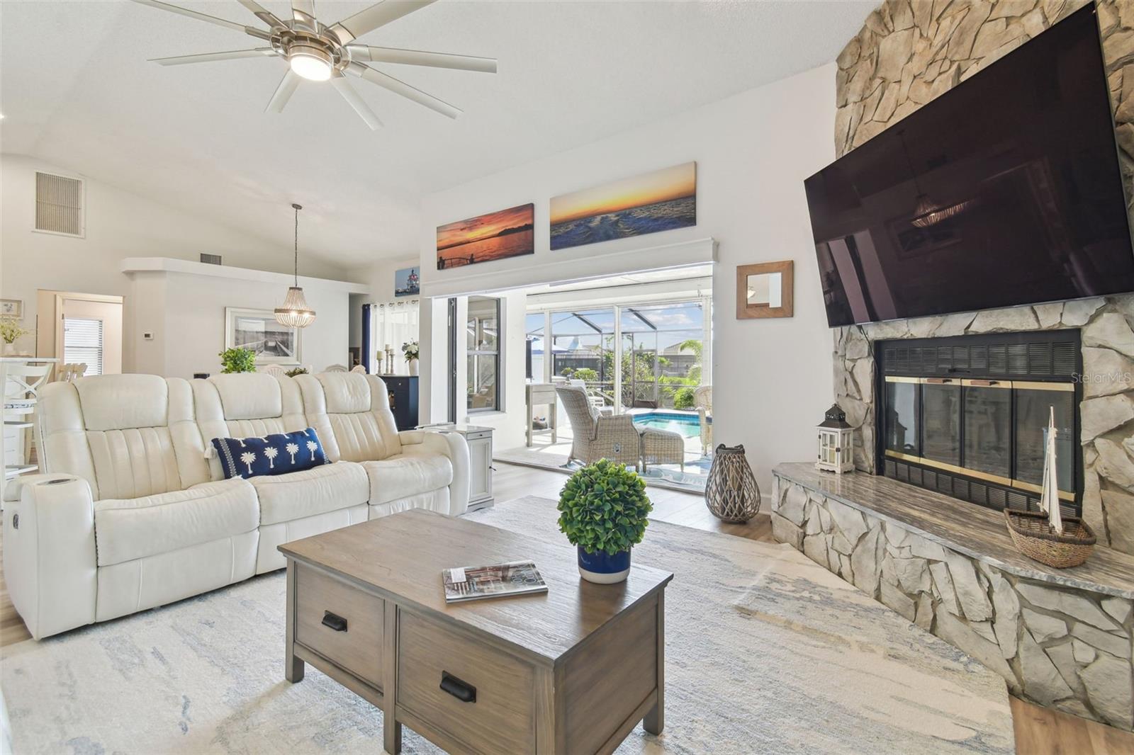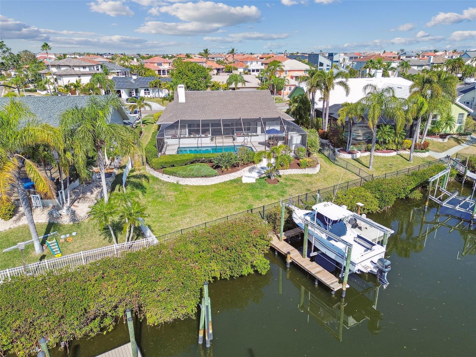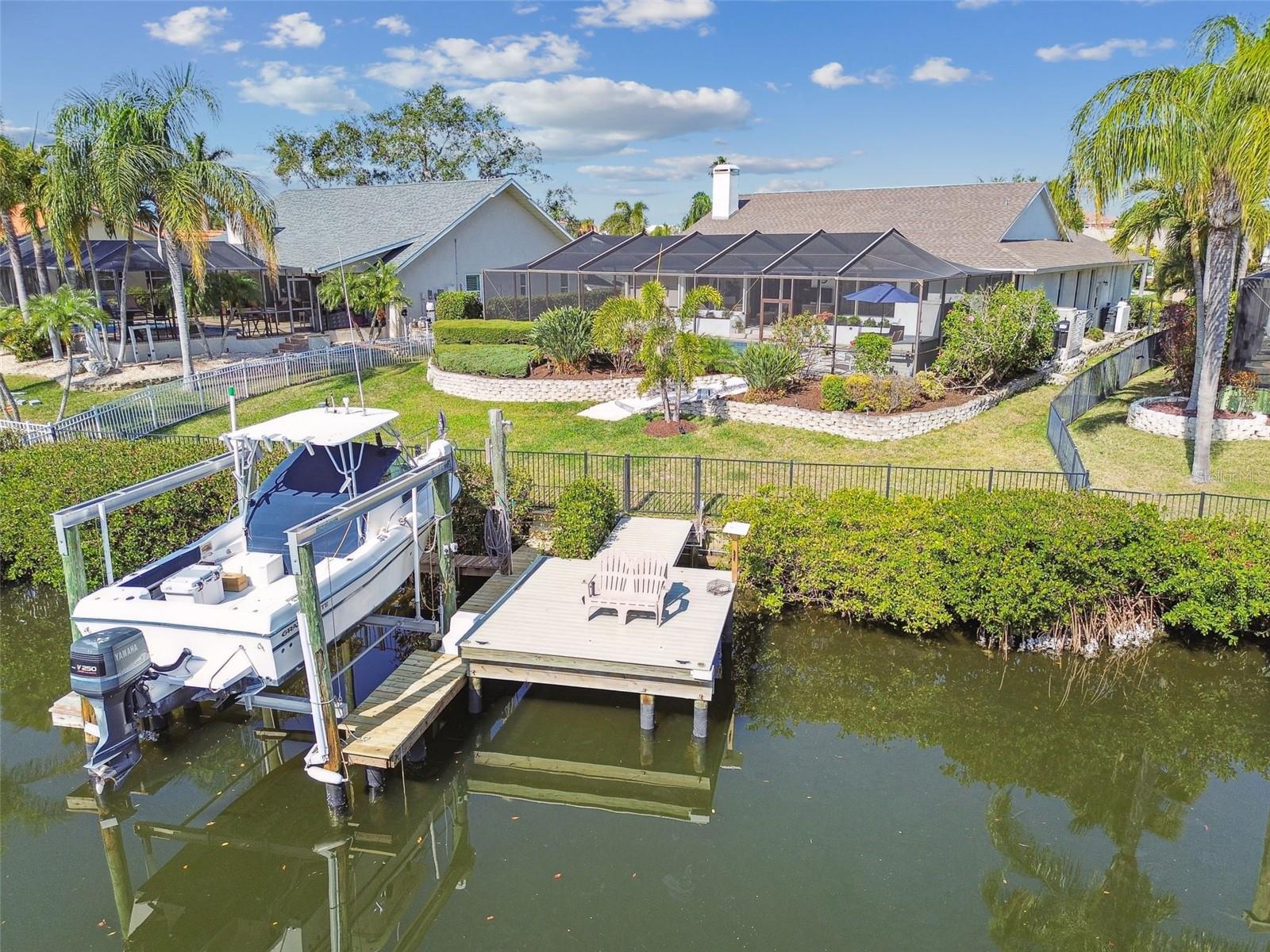 Welcome to 944 Symphony Isles Blvd, a BEAUTIFUL WATERFRONT RETREAT in the prestigious, 24-hour guard-gated community of Symphony Isles. THIS HOME IS HIGH & DRY AT 13' ELEVATION AND WAS WELL PROTECTED DURING RECENT STORMS WITH NO WATER INTRUSION. This 4-bedroom, 2-bathroom home has been thoughtfully updated with modern finishes, high-end features, and an open-concept design that maximizes space, natural light, and breathtaking water views. Step into your private oasis, where outdoor living meets resort-style luxury. Enjoy the oversized heated pool with a new variable-speed Bluetooth pool pump (2023), new pool filter (2023), and a solar cover with reel (2022). The lanai has been completely rescreened (2024), ensuring a pristine outdoor retreat. Your private dock with a newly upgraded finger pier deck (2024) and 12,000 lb boat lift provides direct access to Tampa Bay, making it effortless to enjoy boating and waterfront adventures. This home has been completely transformed with new engineered wood flooring throughout (2023), replacing all carpet. The entire interior has been freshly painted (2023), enhancing its bright, modern aesthetic. The chef’s kitchen underwent a full renovation (2022), featuring shiplap backsplash and bar fronts (2023), stylish cabinetry, and premium finishes—an entertainer’s dream. The vaulted living area seamlessly connects to the outdoors through 12’ pocket sliding doors, now enhanced with remote electronic blinds (2022). A barn door slider (2022) adds a stylish touch to the family room. All interior doors have been replaced (2023) with elegant Shaker frosted 5-panel glass/wood doors for a sleek, contemporary look. The den has been converted into a functional 4th bedroom/home office with a custom-built closet (2023), offering flexibility for your lifestyle. The guest bathroom was fully renovated (2022) with modern finishes. Three closets now feature custom organizers (2023) for optimized storage. This home is elevated for safety and equipped with power hurricane shutters (front and back) for added security. Major updates include a new roof (2021), new attic insulation throughout (2023), and an upgraded HVAC 4-ton system (2020). The driveway was widened to accommodate vehicles three-wide (2023), and a black aluminum fence was added (2022) for enhanced curb appeal. Throughout the home, you’ll find modern ceiling fans (2022) and new light fixtures that elevate every space. Outside, three new palm trees (2024) add to the lush tropical landscaping. Living in Symphony Isles means embracing a premier waterfront lifestyle with 24/7 security, a clubhouse, community pool, private beach, boat ramp, and marina—all with low HOA fees and no CDD! Plus, you’re just minutes from Apollo Beach Park, the Nature Preserve, and the Manatee Viewing Center, making it easy to explore Florida’s stunning natural beauty. Premier waterfront dining at Circle’s or Finn’s are just a golf cart or boat ride away. This is a rare opportunity to own a fully upgraded coastal paradise in one of the area’s most sought-after waterfront communities. Schedule your private tour today!
