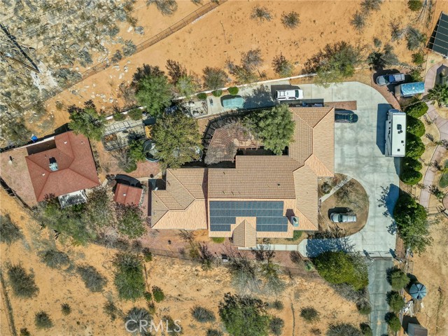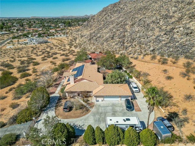 Two Beautiful Homes on a Gated 2.96-Acre Estate – Breathtaking Desert Knolls Views ** Income, Luxury & Opportunity Combined. Welcome to your private hilltop retreat nestled against scenic Bass Hill, overlooking the prestigious Desert Knolls neighborhood — a close-knit, highly sought-after community where neighbors look out for one another. This secure, peaceful estate spans nearly 3 acres and offers not just one, but two fully independent homes, perfect for multi-generational living, Airbnb income, or future development potential. Main Residence (Built 1995 – 3,946 sq. ft.) This stunning custom-built home was designed with space, comfort, and elegance in mind. • 4 spacious bedrooms including a luxurious primary suite with dual walk-in closets and an ensuite bath featuring a bidet • 3.5 bathrooms total • Expansive living room, family room, and formal dining room • Private office with a dual-sided fireplace shared with the game room • Modern kitchen with ample storage and natural light • Laundry room, linen room, and extra storage closet • Oversized 3.5-car garage with built-in cabinetry, work walls, and a swamp cooler • Two new A/C units, forced air heating, solar panels, and automatic landscaping sprinklers Perfect for entertaining. Second Home (Built 1971 – approx. 1,100 sq. ft.) A fully self-contained 2-bedroom, 1-bath guest home with a spacious living room, indoor laundry, and kitchen. Ideal for extended family, a rental unit, or an Airbnb with high earning potential. Property Highlights • Two homes with separate septic systems • Solar-powered panels for energy efficiency • Gated estate with dual security gates — both top and bottom — featuring digital, remote, and card access • Zoned for horses • RV parking plus paved parking for 16+ vehicles • Panoramic night views that make this estate truly one-of-a-kind Endless Potential With nearly 3 acres of prime land, this estate offers room to expand — build additional units for rental income, subdivide, or create a boutique Airbnb compound. The possibilities are endless for investors, families, or anyone seeking a peaceful desert escape with incredible earning potential. This is more than a home — it’s a rare opportunity to own a private estate in one of the most desirable and safe communities in the High Desert.