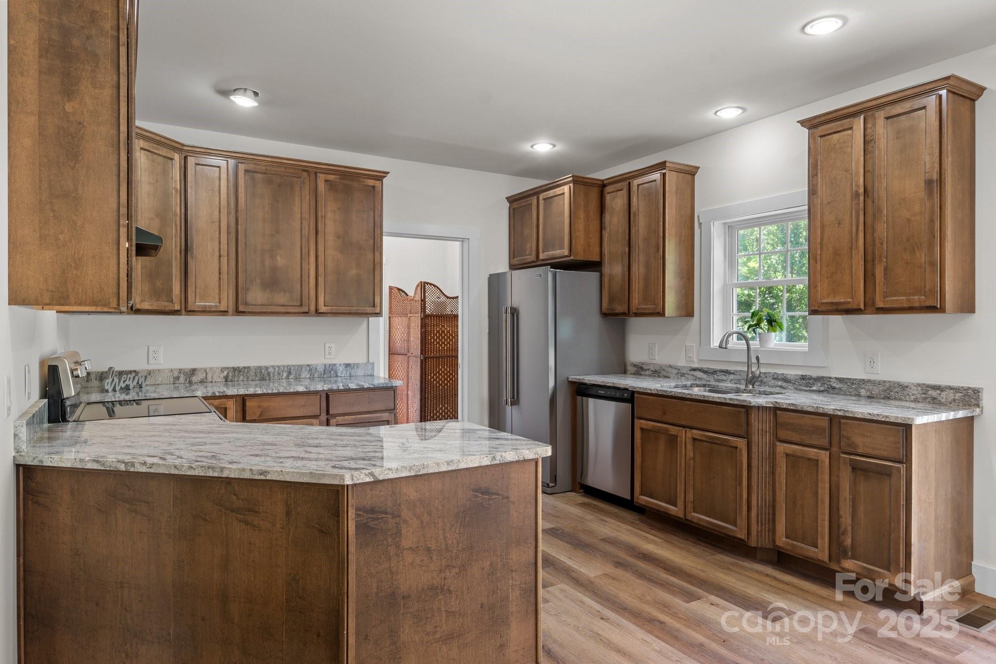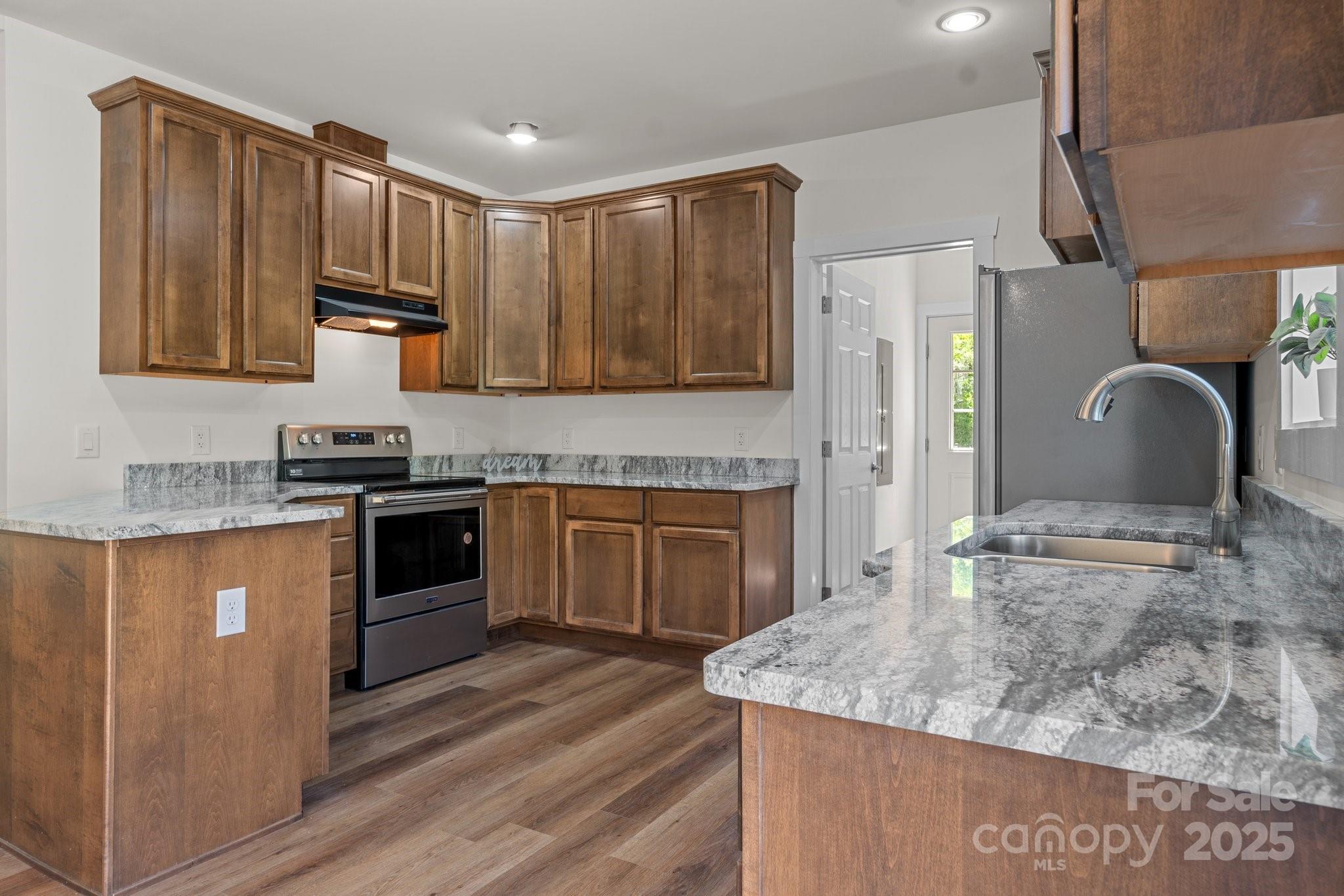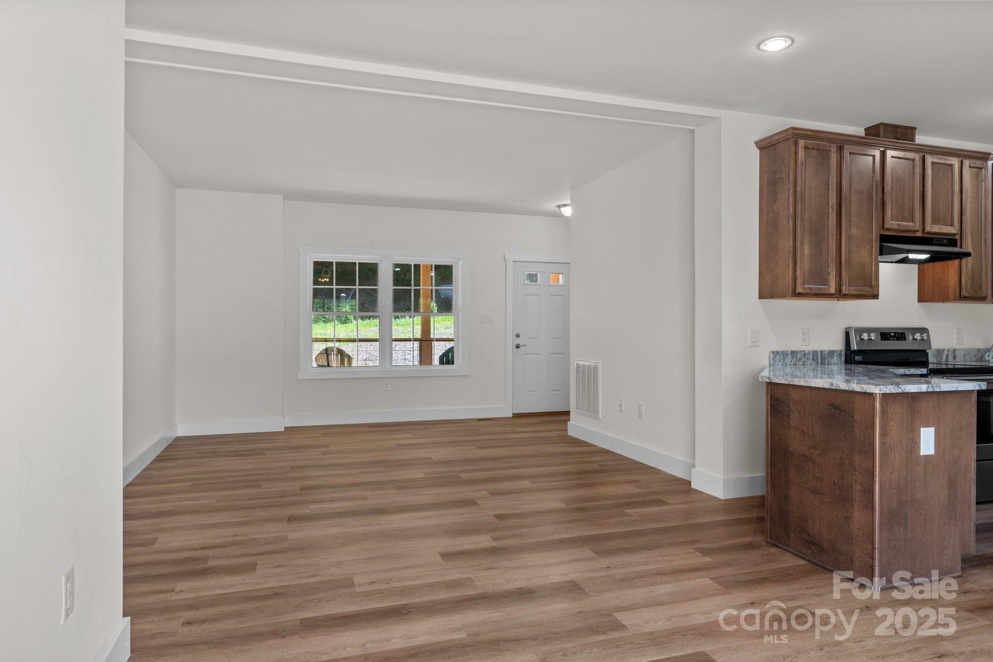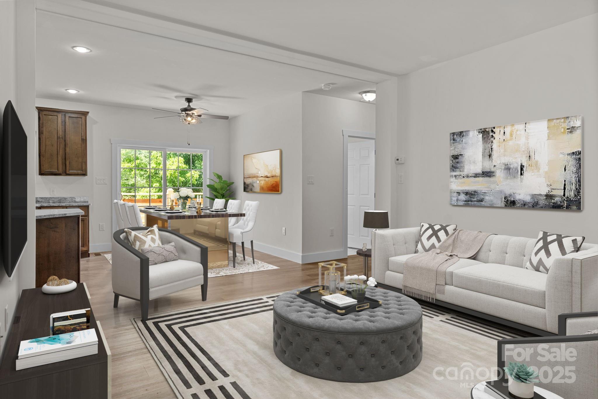 Beautifully built 3 bedroom 2 bath home with 9-foot ceilings throughout ! This lovely home boasts Luxury Vinyl Plank flooring, granite counter tops, 42” walnut cabinets with soft-close doors & drawers and an OPEN FLOOR PLAN! Perfect for entertaining friends and family as the kitchen flows into the dining area and living room! Relax in the lush level backyard as you hang out after a long day and enjoy being together! Sit on the covered front porch to escape, the sun on these hot southern summer days! Huge level backyard is a blank canvas for creating a fire pit, fencing in for fur babies or a garden spot ...so much potential!! Split bedroom plan, large drive way for parking several vehicles, mud room and conveniently located! Less than 10 minutes to downtown Asheville ,I-240 , Haywood Road and the River Arts District with all the amenities our town has to offer! 5 minutes from Grocery shopping, restaurants and so much more! Welcome home!