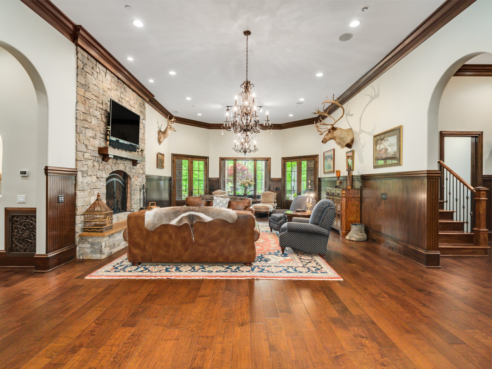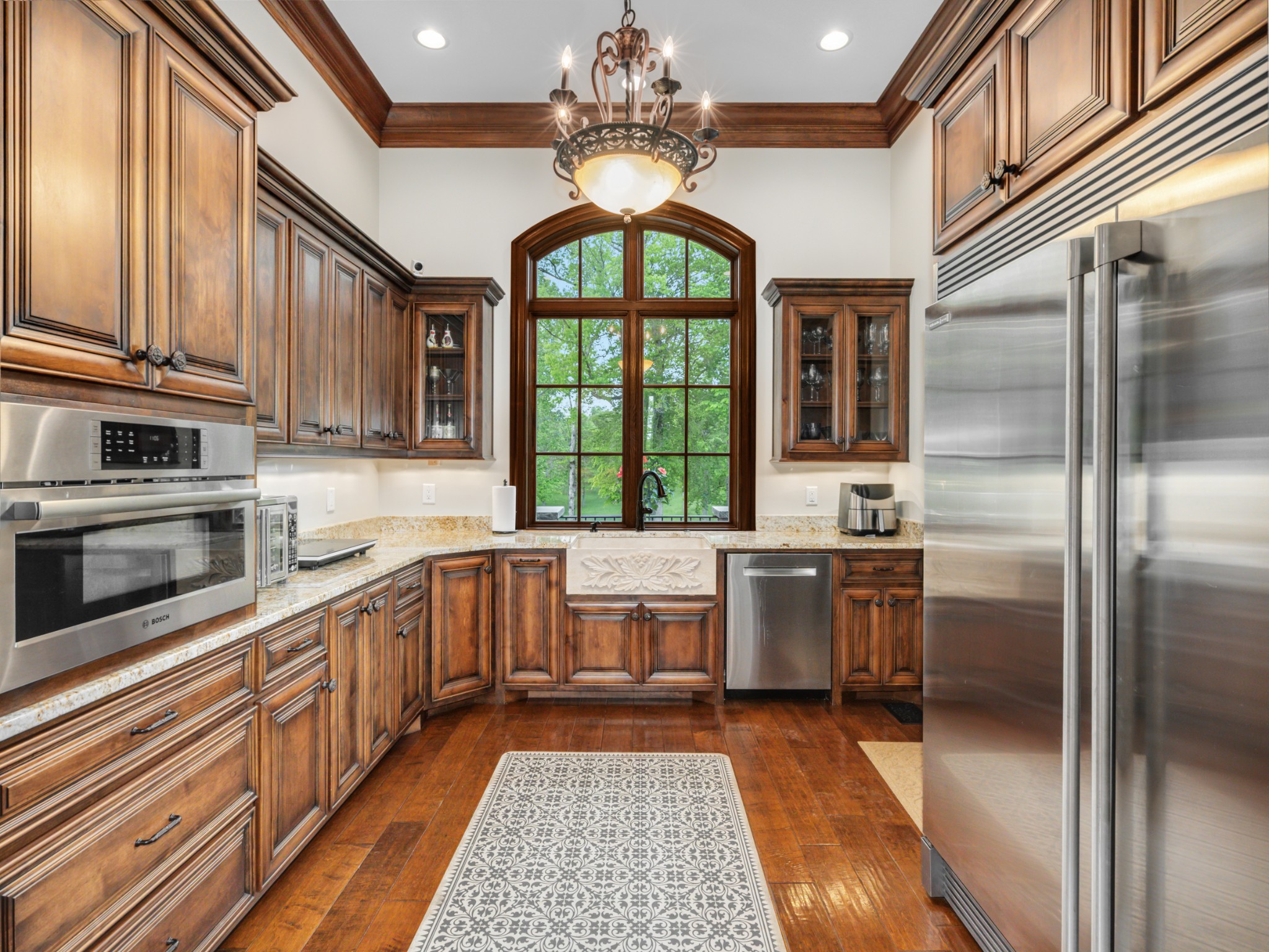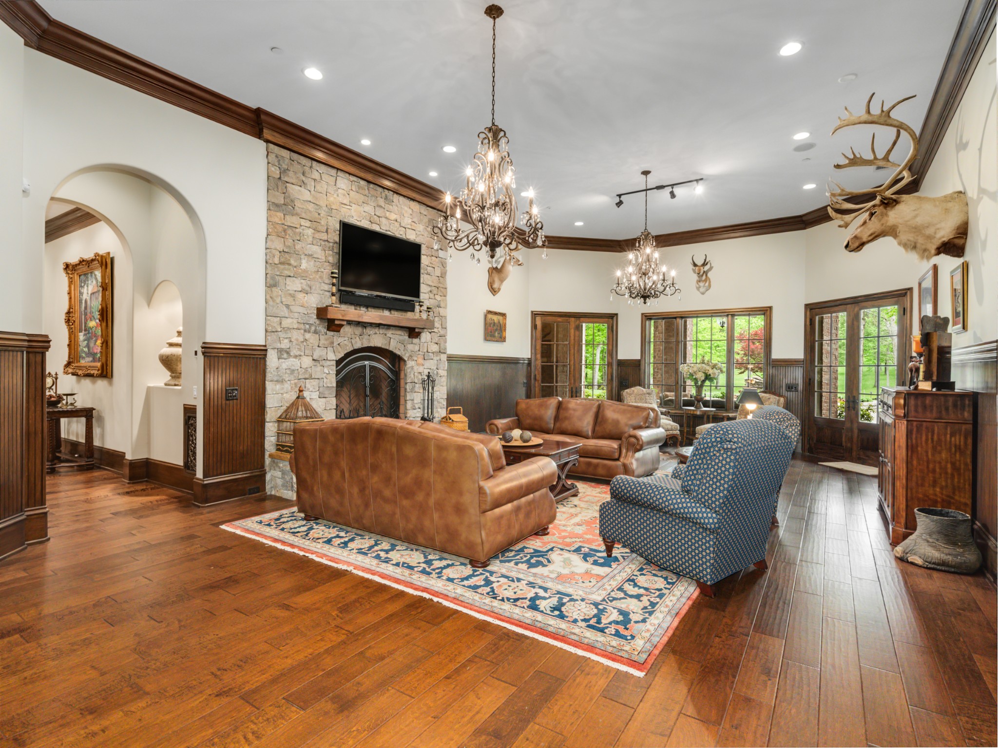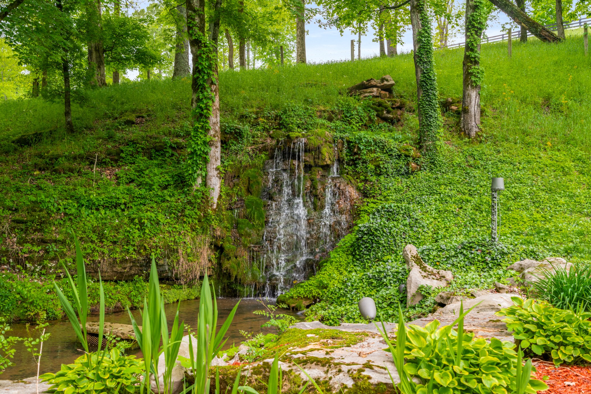 Nestled behind electronic gates just 25 minutes from downtown Nashville, Hidden Falls Estate spans 60.07 pristine acres and features a custom-built 12,447 SF residence (2015) with 5 bedrooms, 8 baths and an attached four-car garage. The grand foyer opens to soaring ceilings, hand-scraped white oak floors and a motorized crystal chandelier, leading into a chef’s kitchen appointed with Jenn-Air Pro appliances, dual Sub-Zero refrigerators, six-burner range, honed granite island and walk-in butler’s pantry
