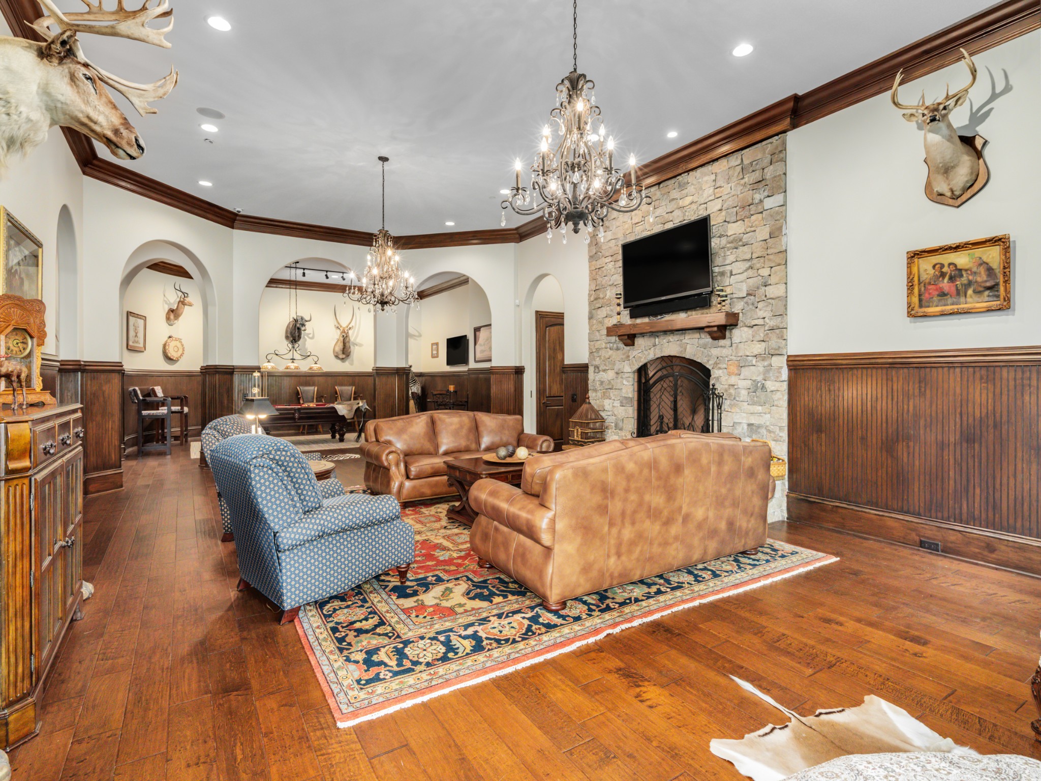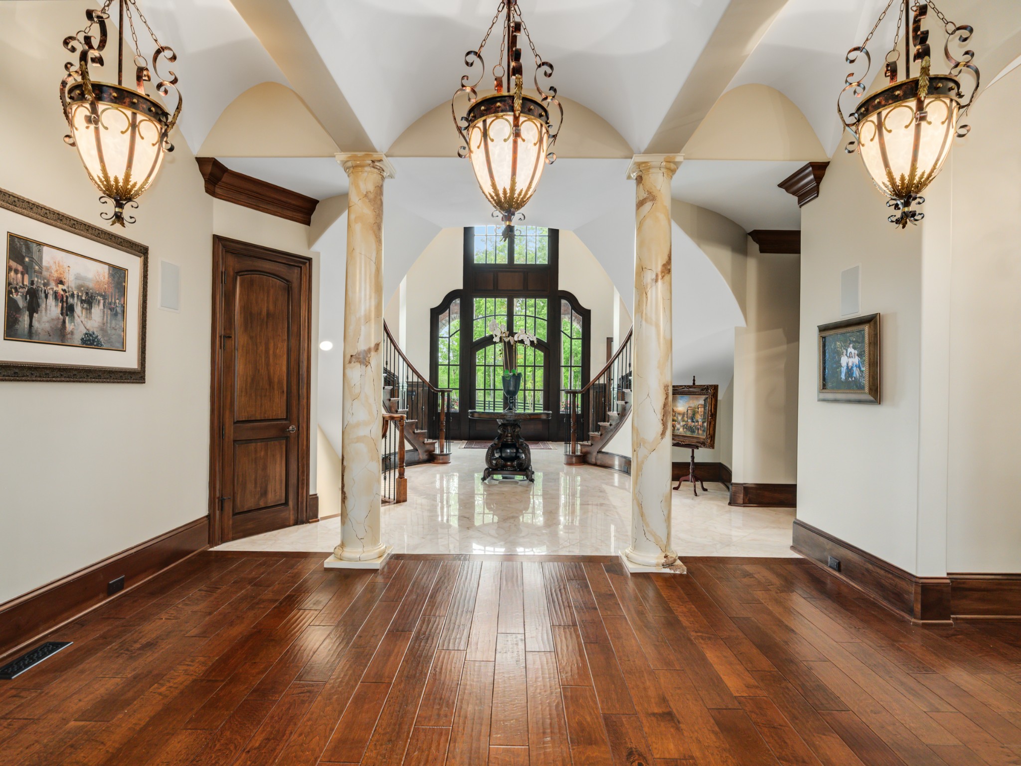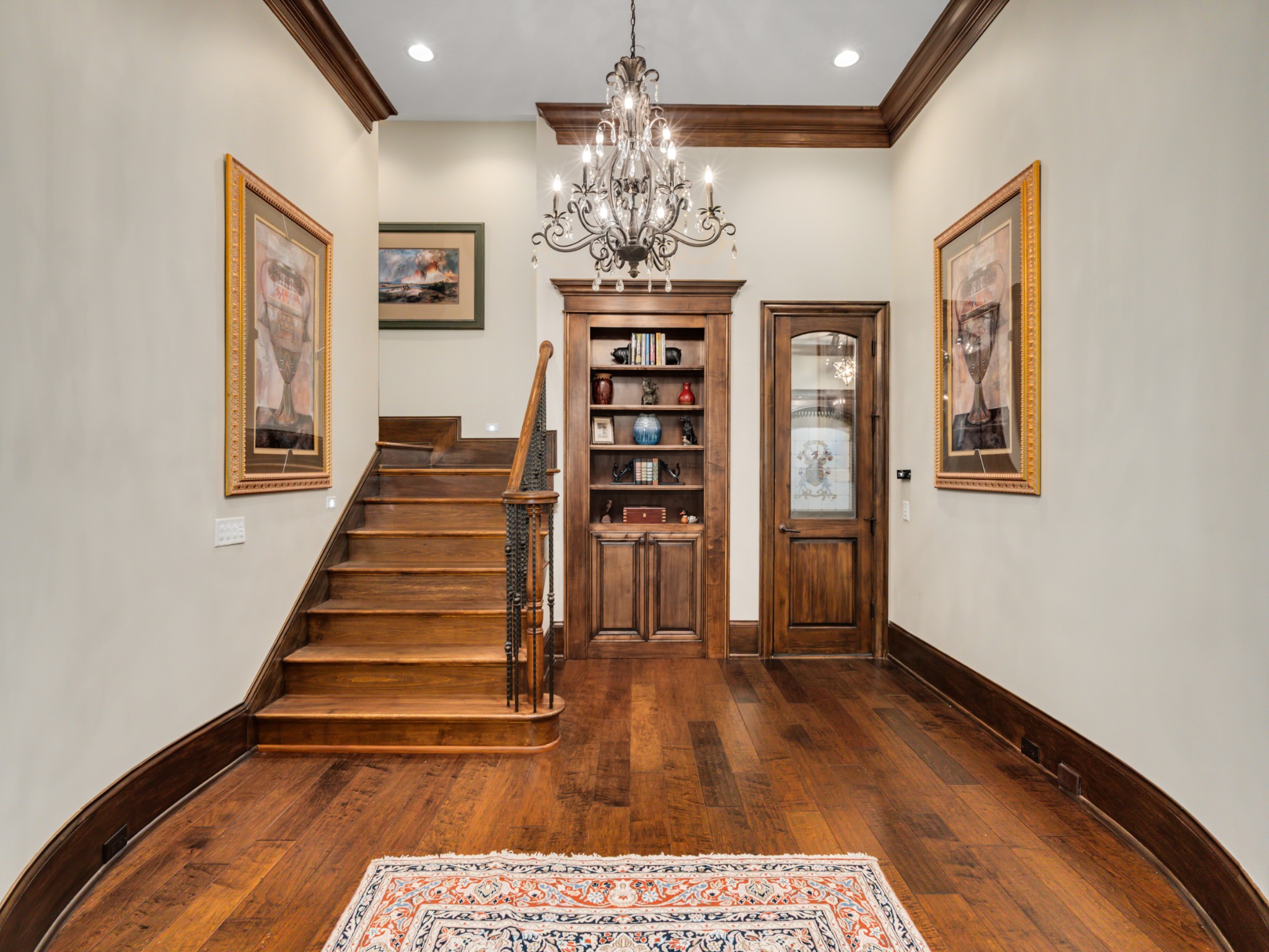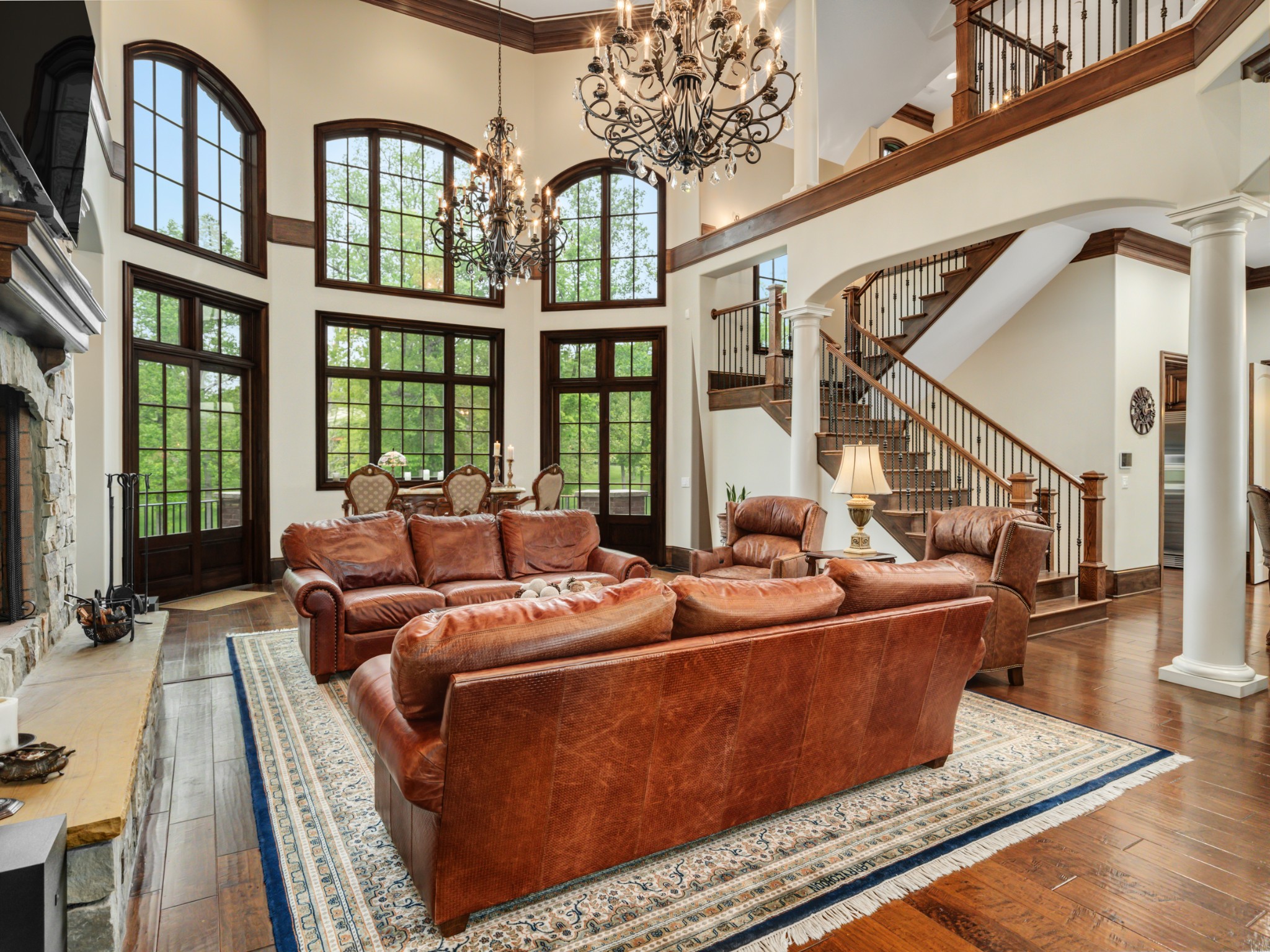 Nestled behind electronic gates just 25 minutes from downtown Nashville, Hidden Falls Estate spans 60.07 pristine acres and features a custom-built 12,447 SF residence (2015) with 5 bedrooms, 8 baths and an attached four-car garage. The grand foyer opens to soaring ceilings, hand-scraped white oak floors and a motorized crystal chandelier, leading into a chef’s kitchen appointed with Jenn-Air Pro appliances, dual Sub-Zero refrigerators, six-burner range, honed granite island and walk-in butler’s pantry