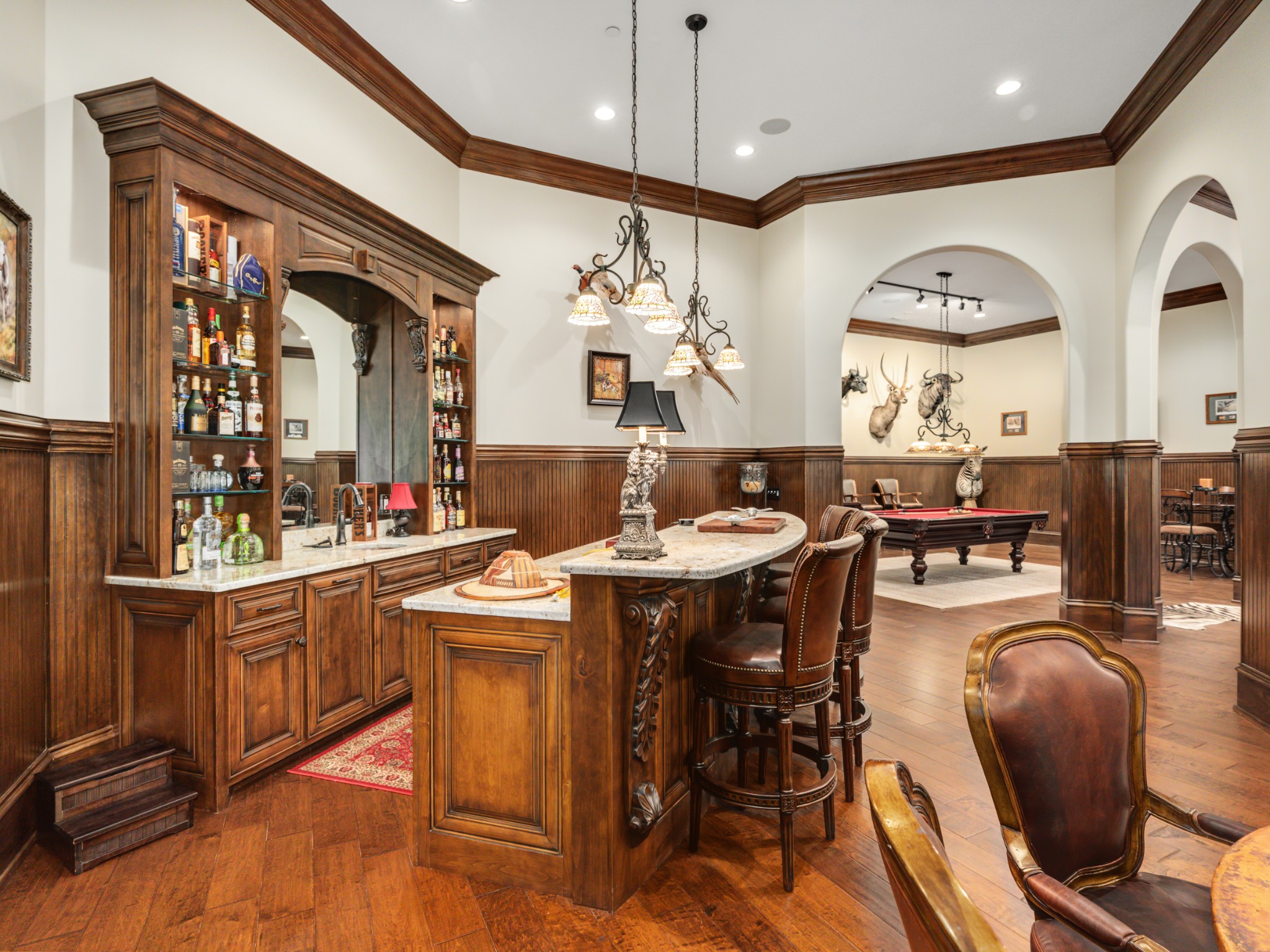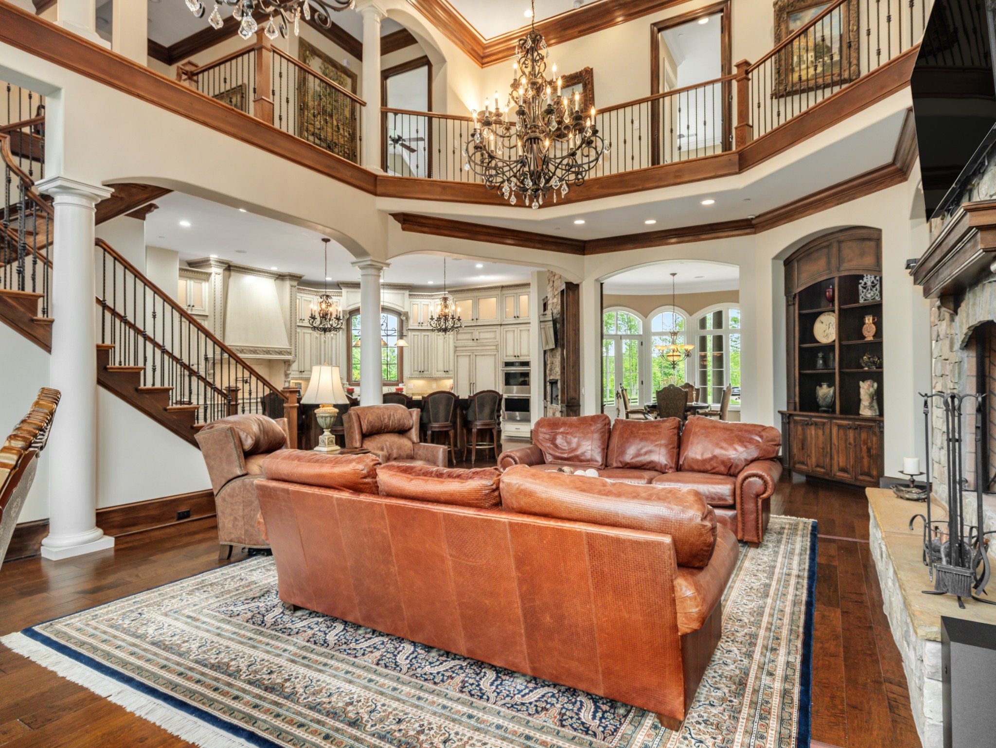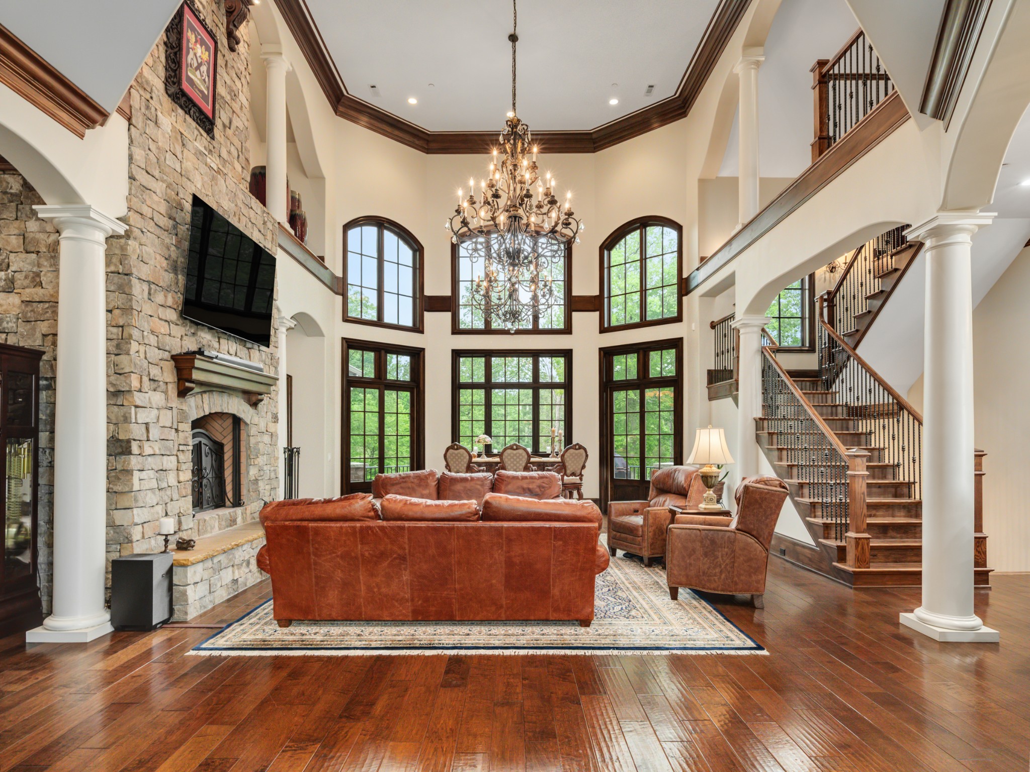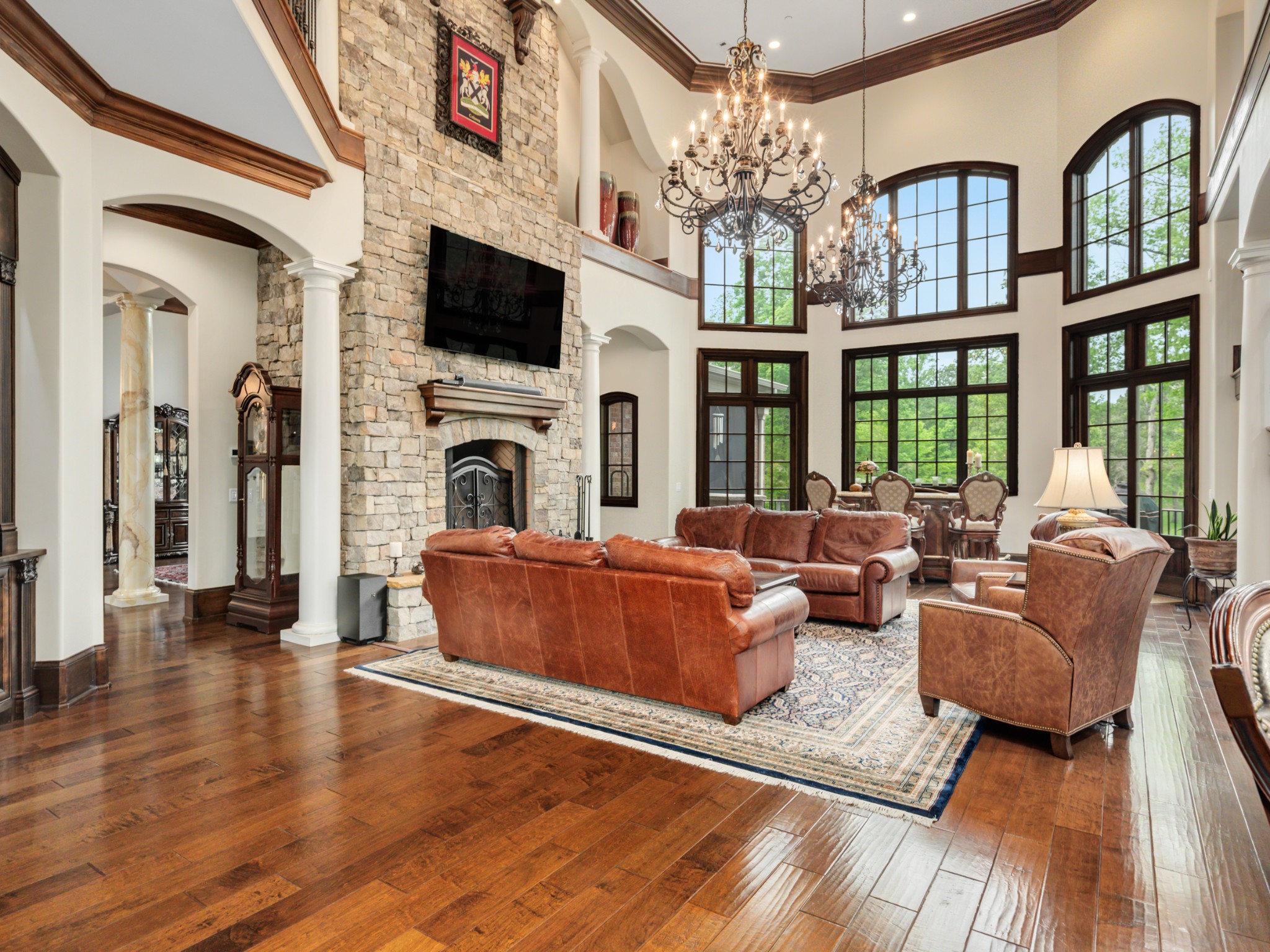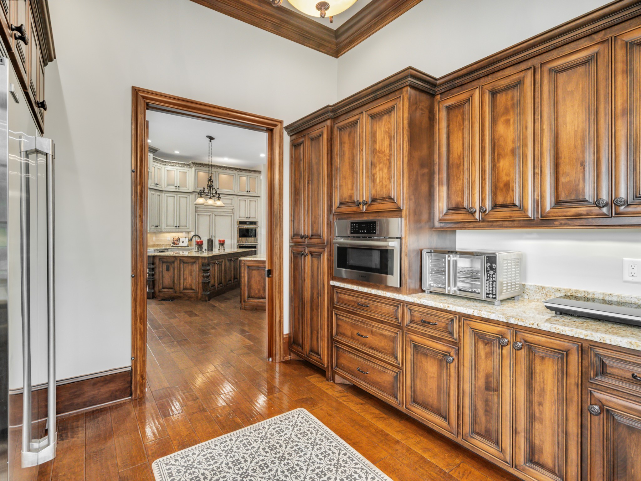 Nestled behind electronic gates just 25 minutes from downtown Nashville, Hidden Falls Estate spans 60.07 pristine acres and features a custom-built 12,447 SF residence (2015) with 5 bedrooms, 8 baths and an attached four-car garage. The grand foyer opens to soaring ceilings, hand-scraped white oak floors and a motorized crystal chandelier, leading into a chef’s kitchen appointed with Jenn-Air Pro appliances, dual Sub-Zero refrigerators, six-burner range, honed granite island and walk-in butler’s pantry