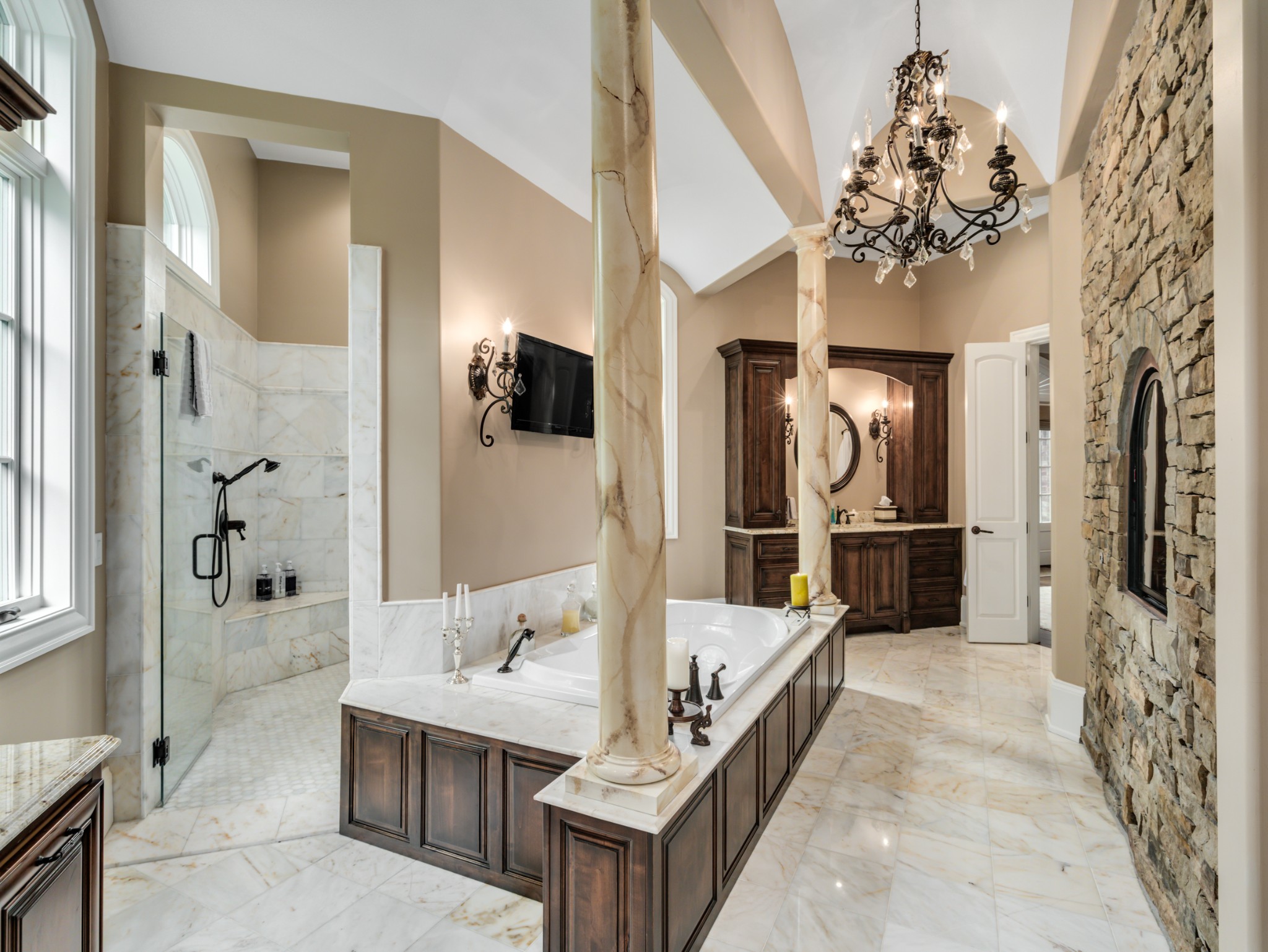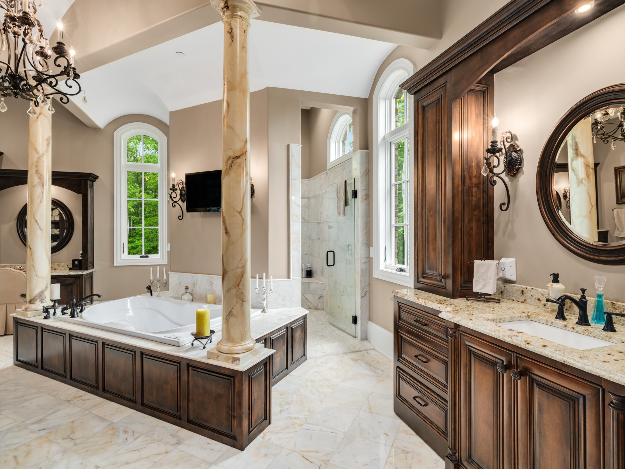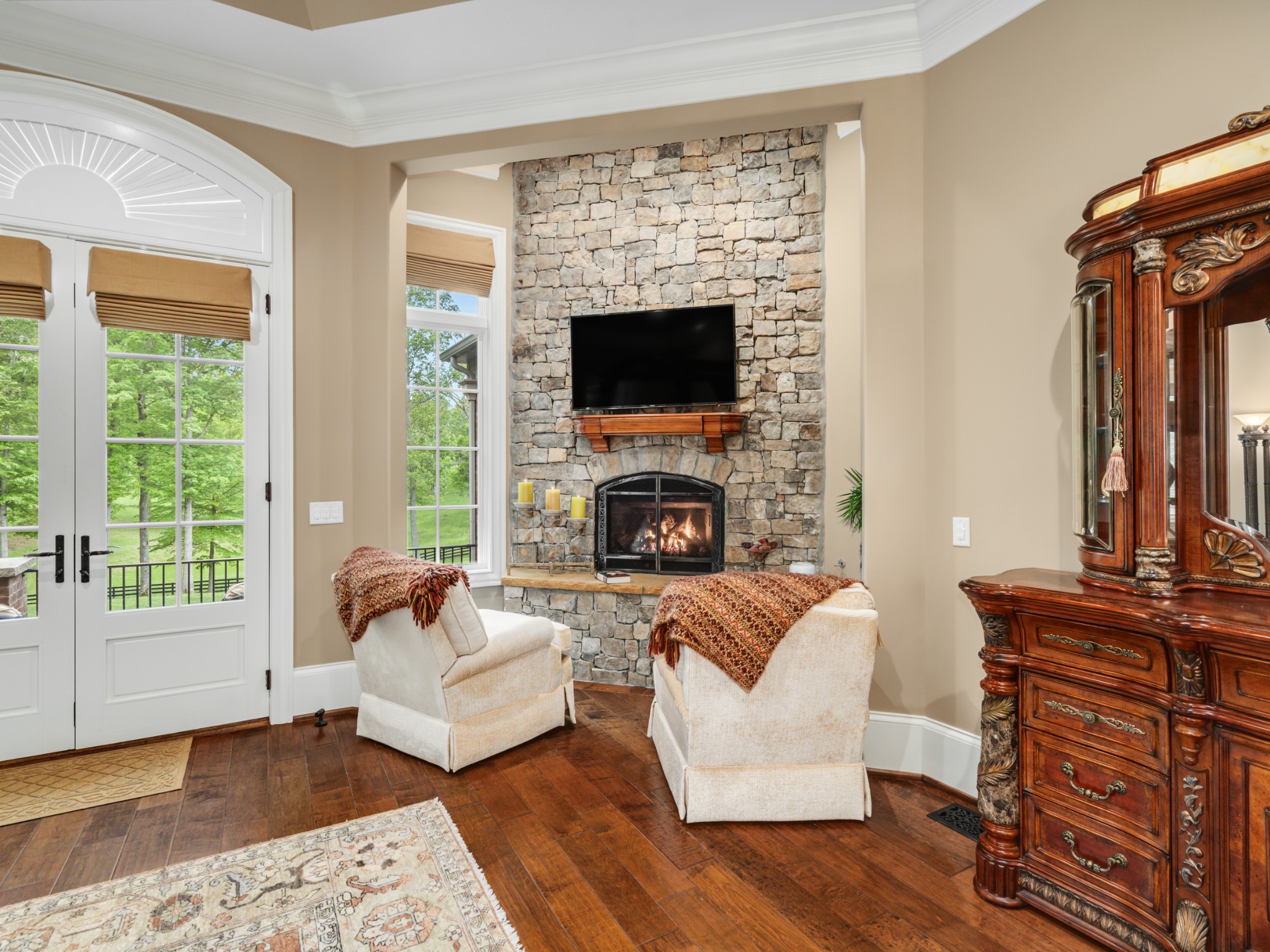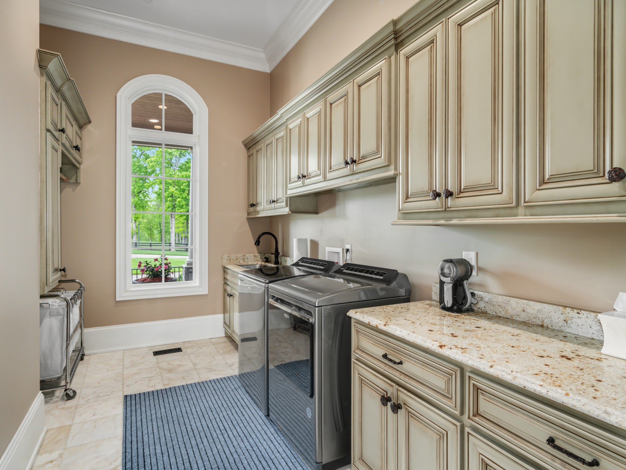 Nestled behind electronic gates just 25 minutes from downtown Nashville, Hidden Falls Estate spans 60.07 pristine acres and features a custom-built 12,447 SF residence (2015) with 5 bedrooms, 8 baths and an attached four-car garage. The grand foyer opens to soaring ceilings, hand-scraped white oak floors and a motorized crystal chandelier, leading into a chef’s kitchen appointed with Jenn-Air Pro appliances, dual Sub-Zero refrigerators, six-burner range, honed granite island and walk-in butler’s pantry