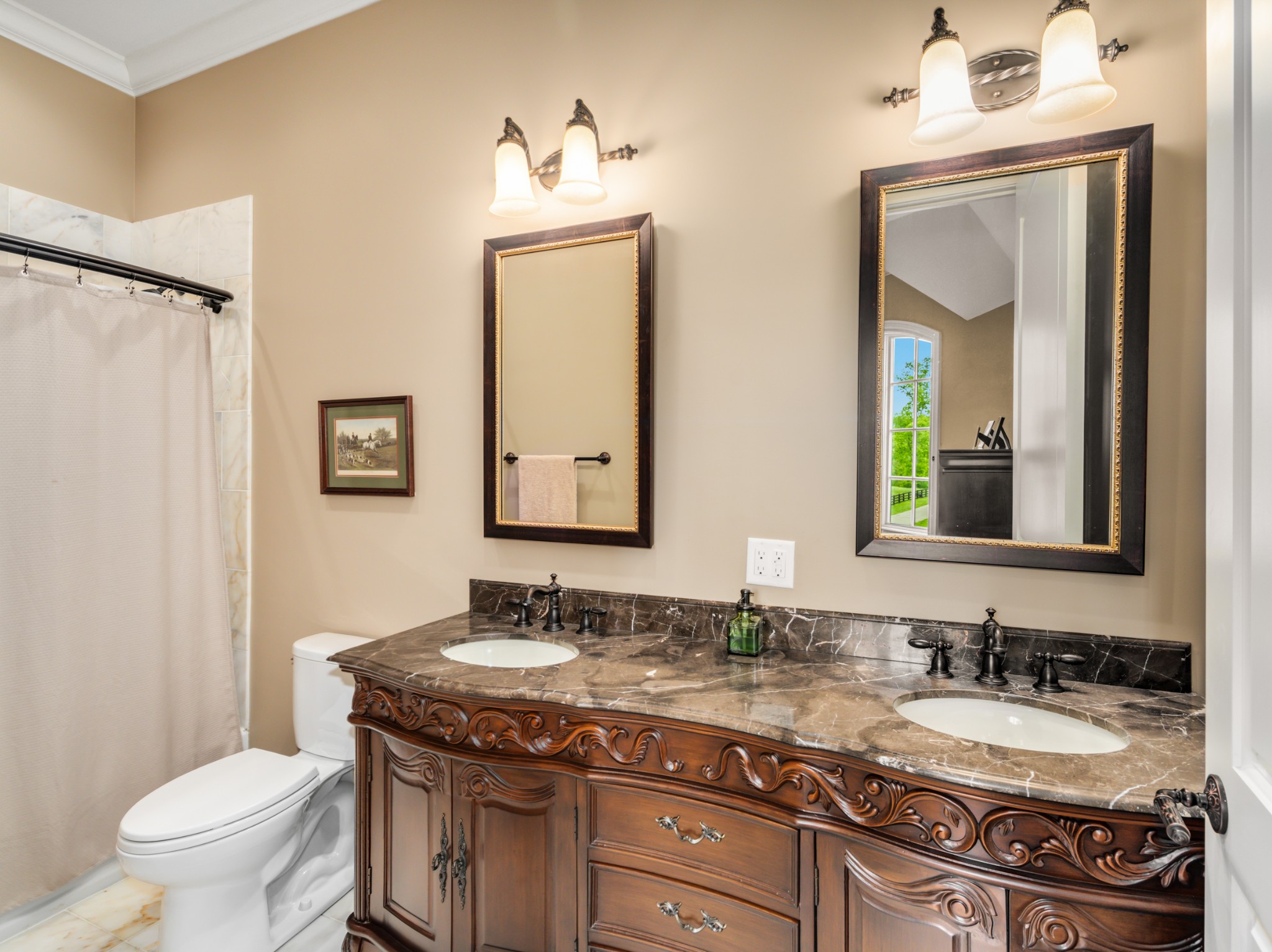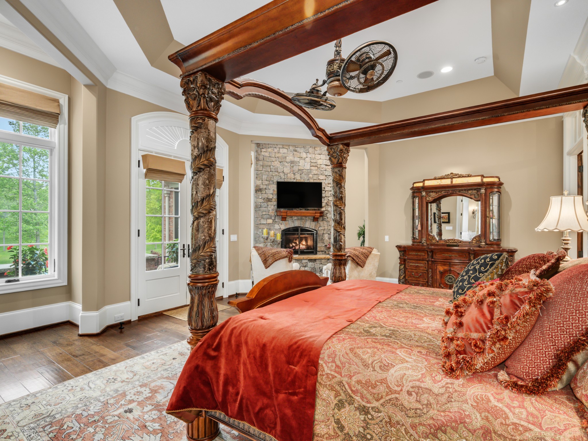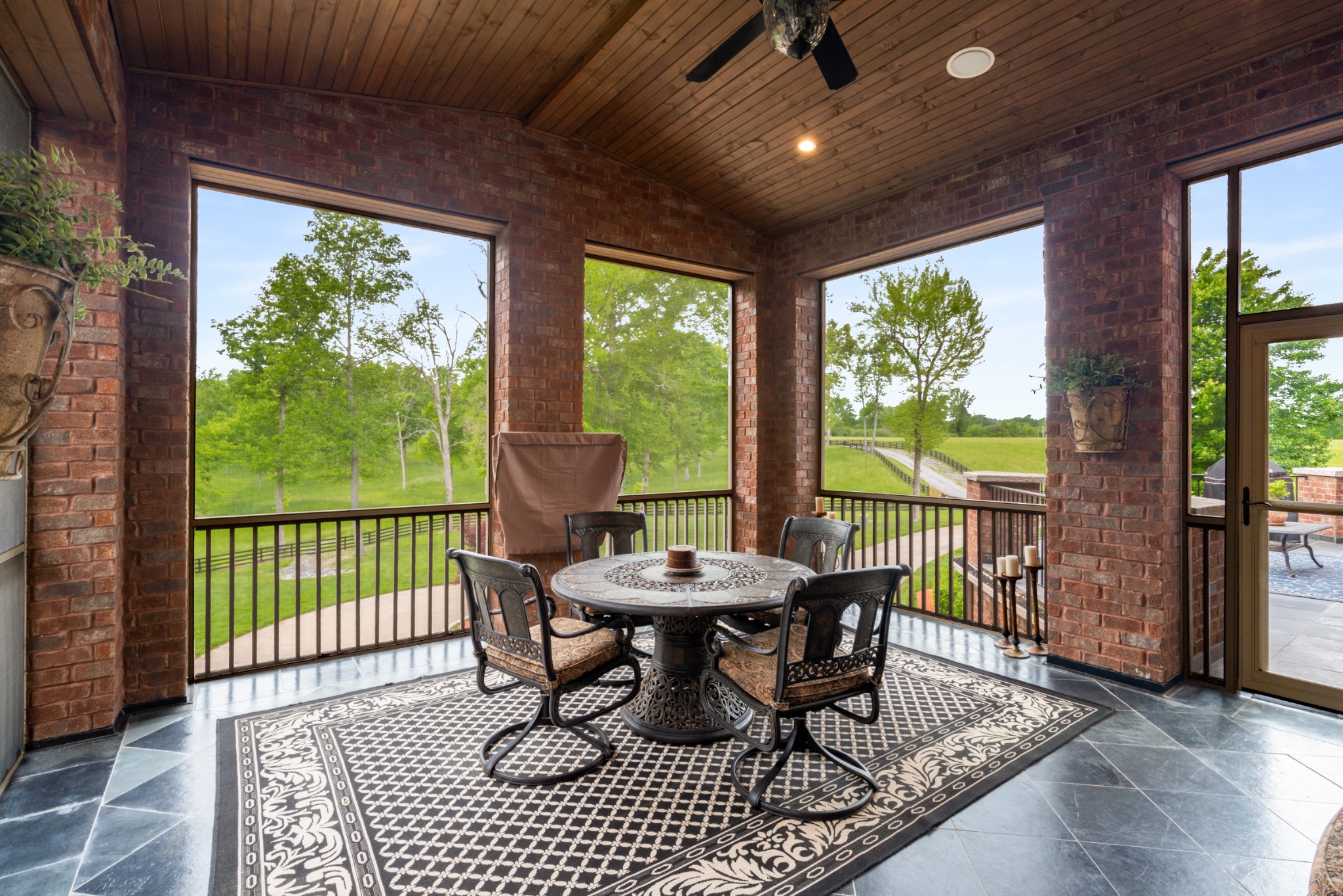 Sophisticated living continues with six marble- and stone-clad fireplaces, heated marble floors in spa-style baths, a state-of-the-art home theater, fully outfitted gym, elevator access and a 500-bottle temperature-controlled wine cellar. Geothermal heating/cooling, Control4 automation, HEPA air filtration, central vacuum, sprinkler system and instant-hot water ensure comfort and efficiency. Outdoors, enjoy a 42×60 insulated workshop with crane, 40×80 climate-controlled livestock barn, manicured lawns leading to year-round creeks and waterfalls, cross-fenced pastures, lighted bocce court, private riding/hiking trails and panoramic rural views, truly a rare fusion of luxury retreat and working estate.