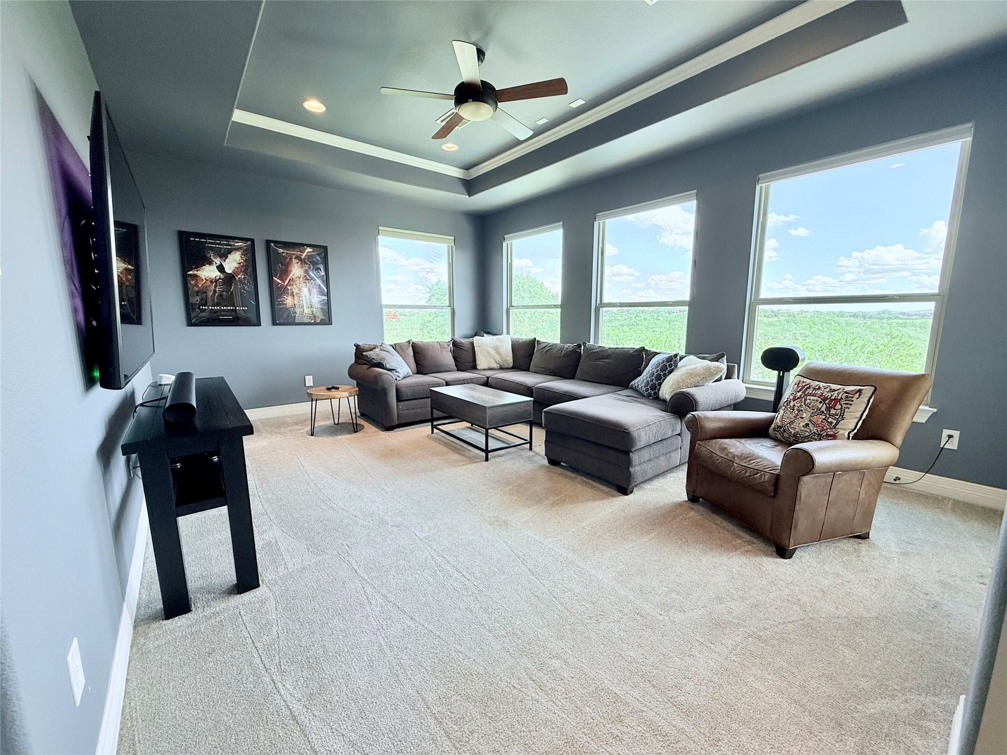 This elegant Mediterranean-style home is thoughtfully designed for a growing, active family and crafted for years of cherished memories. Nestled within the gated community of Savannah Point on a spacious cul-de-sac lot, this stunning 4,662 sq. ft. residence (per appraisal) offers breathtaking views and a perfect blend of luxury, comfort, and thoughtful detail. Inside, four generous bedrooms and three and a half baths complement five inviting living areas, including a game room, media room, and flexible bonus space. The chef’s kitchen—featuring granite countertops (2021), an oversized island, GE Monogram built-in refrigerator, six-burner plus griddle range top, and commercial-grade vent hood—is the true heart of the home. The primary suite impresses with coffered ceiling beams and space for a reading nook or exercise area, while a private, tucked-away office offers ideal work-from-home quiet & convenience. Throughout the home, you’ll find reclaimed wood accents from a century-old Georgetown barn, 8-ft doors, plantation shutters, and abundant natural light. Comfort is ensured by two zoned A/C units and hospital-grade Lennox PureAir filtration systems with UV lights. Outside, Mediterranean charm continues with a stone-and-stucco façade, Spanish tile roof, resort-style pool (new motor 2019), extended stone patio with built-in fireplace and grill, and a serene backyard with panoramic views. Host gatherings or unwind in the effortless backyard oasis, where afternoon shade creates the perfect retreat. Additional features include Tesla solar panels (2018), stained cedar fencing with steel posts (2018), rear iron fencing (2024), and ample storage with floored attic space and custom built-ins. Located in one of the area’s most sought-after communities, residents enjoy resort-style neighborhood amenities and top-rated schools.