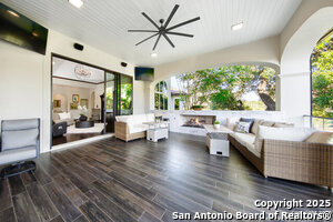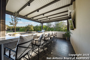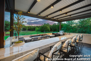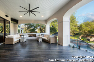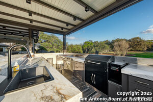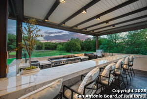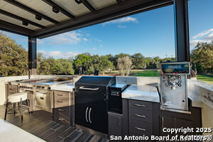 Exterior Features :Patio Slab, Covered Patio, Bar-B-Que Pit/Grill, Gas Grill, Sprinkler System, Double Pane Windows, Solar Screens, Storage Building/Shed, Has Gutters, Special Yard Lighting, Mature Trees, Outdoor Kitchen, Glassed in Porch, Screened Porch