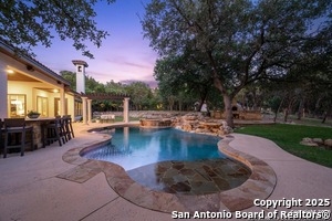 Exterior Features :Patio Slab, Covered Patio, Bar-B-Que Pit/Grill, Wrought Iron Fence, Sprinkler System, Storage Building/Shed, Mature Trees