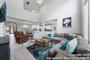 Interior Features : Cable TV Available, Eat-In Kitchen, Game Room, High Ceilings, High Speed Internet, Island Kitchen, Laundry Main Level, Laundry Room, Open Floor Plan, Secondary Bedroom Down, Study/Library, Two Eating Areas, Walk in Closets, Walk-In Pantry