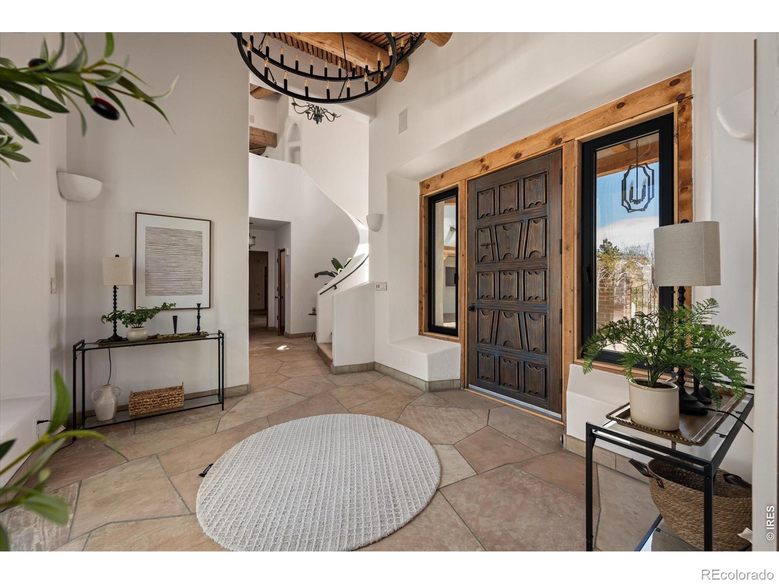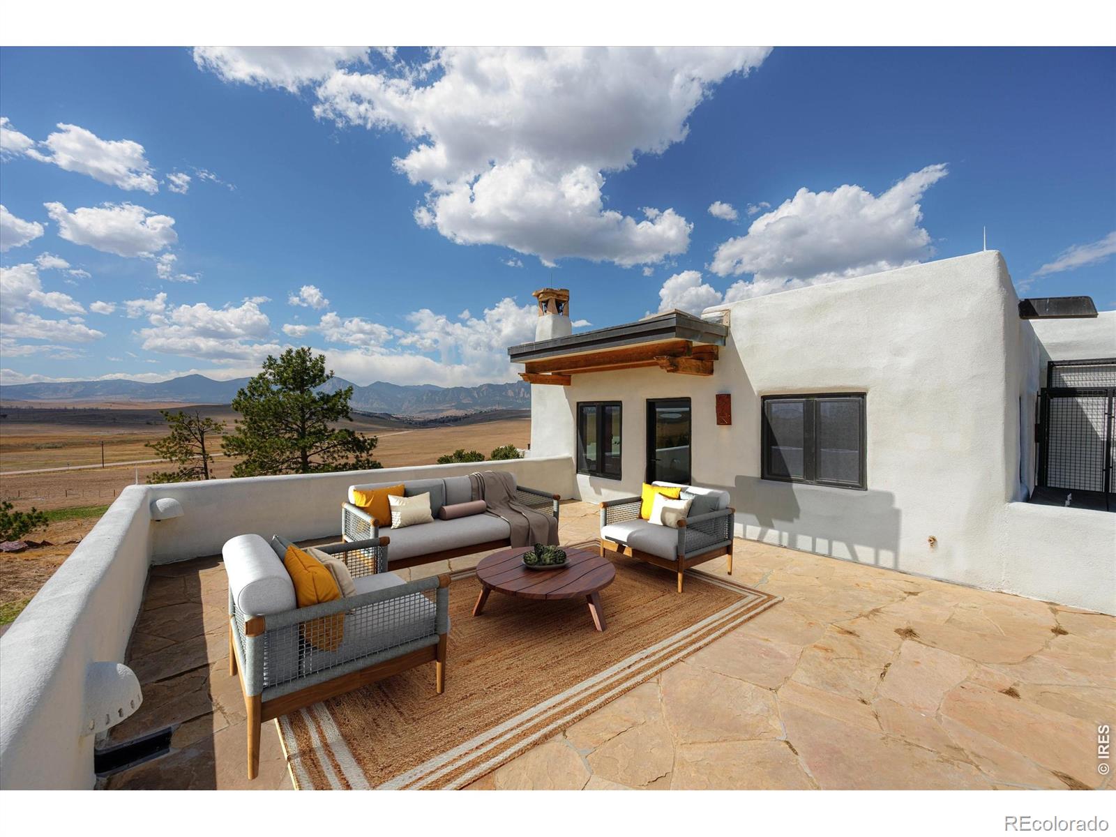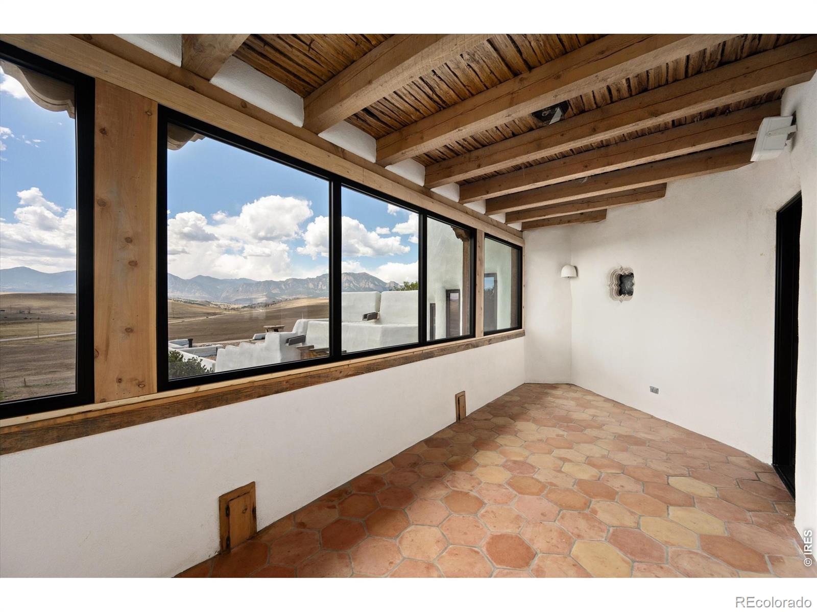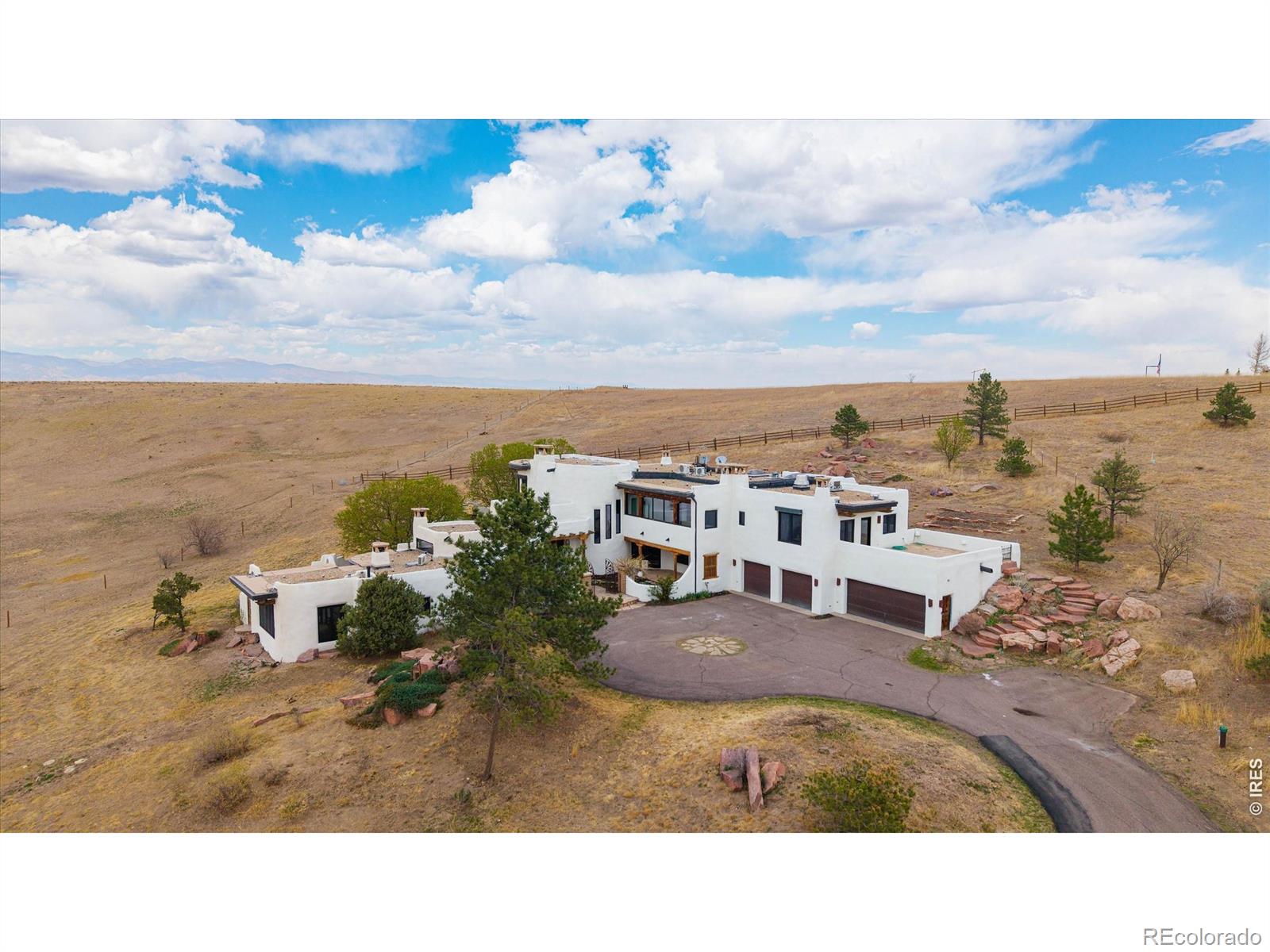 A rare opportunity to own one of Boulder County's most private and architecturally distinctive estates, set on nearly 3 acres directly bordering protected Open Space with unobstructed views that will never change. Extensively remodeled in 2025/2026, this Spanish-inspired retreat blends Santa Fe design with elevated modern finishes across approximately 5,800 square feet. Behind a gated entrance, three enclosed courtyards create a resort-style experience, four secluded patios, all offering seamless indoor-outdoor living, incredible natural light, and unmatched privacy. Inside, soaring 10 to 12 foot ceilings with log beam and latilla detail set the tone, complemented by a rich mix of sandstone, tile, and antique distressed pine and oak wood flooring. Eight fireplaces, custom cabinetry, and stone and quartz surfaces deliver warmth and craftsmanship throughout. The upper main level features a beautifully updated kitchen, multiple living and dining spaces, a solarium, and a private guest suite with its own kitchen and bath, ideal for multigenerational living or long-term guests. The main levels expand the lifestyle with a four car garage with copper clad doors, multiple offices/rooms, game and hobby spaces, sauna, and a secure walk-in safe room. The primary suite is a true escape, complete with a private library, hidden storage, spa-inspired bath with steam shower and soaking tub, and a dedicated jacuzzi and workout room. Built with reinforced concrete & steel, this home offers exceptional durability, fire resistance, and efficiency, complemented by in-floor heating, and whole house fan, this property delivers both peace of mind and enduring quality. Step outside to direct access to City of Boulder open space that extends over hundreds of acres to the Marshall Mesa trail head & experience the perfect balance of peaceful isolation & convenience, just minutes to Boulder, Denver, and Golden. Properties with this level of privacy, views, and proximity are rarely available.