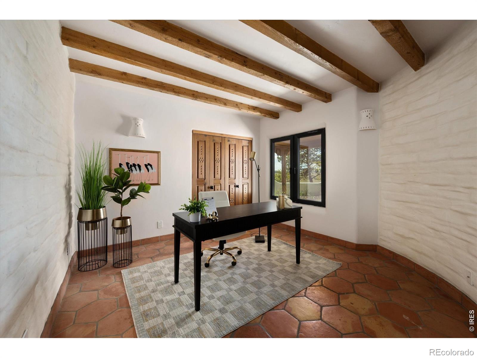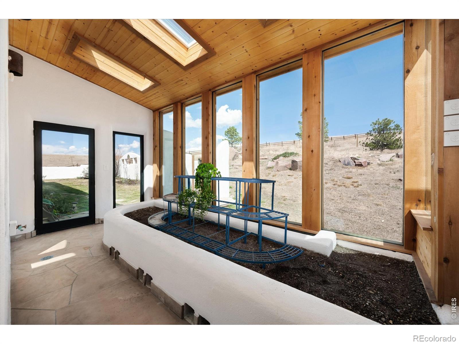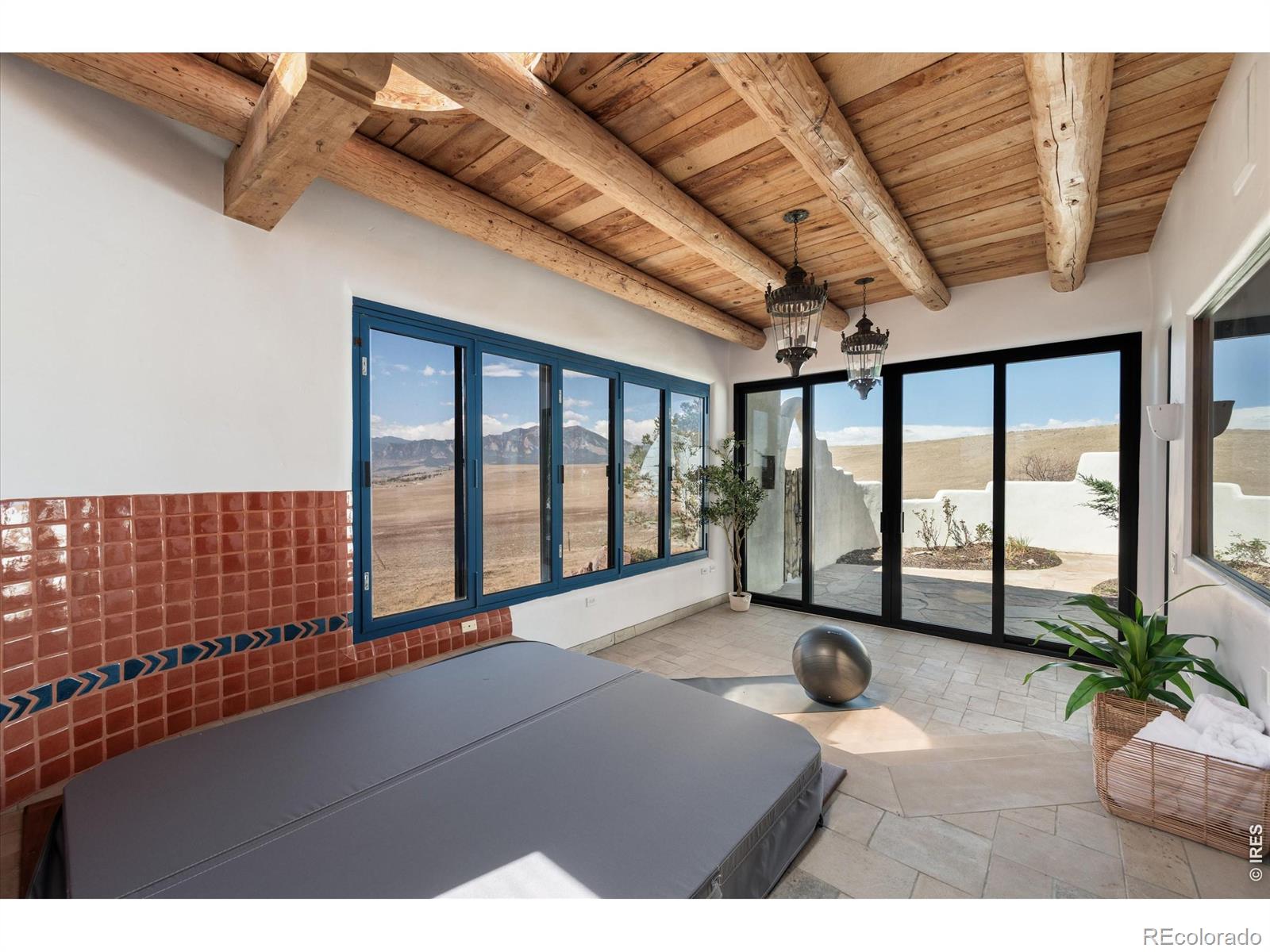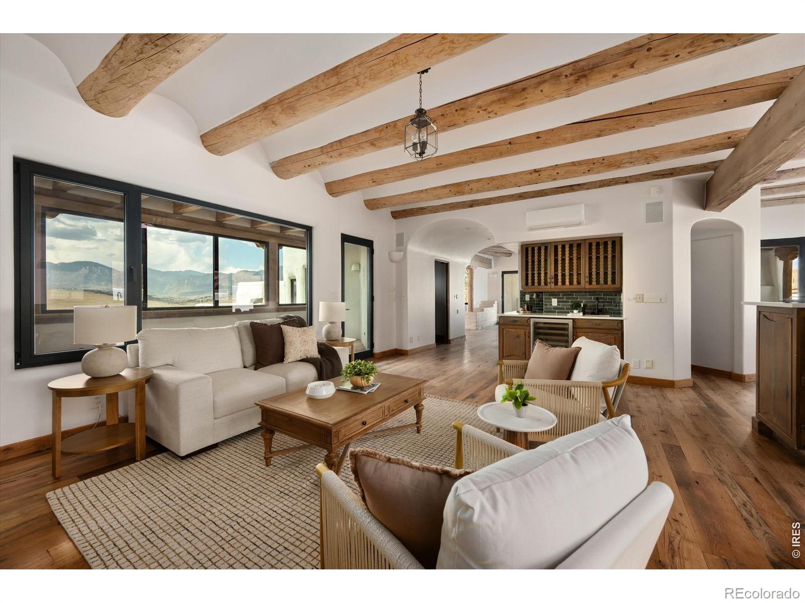 A rare opportunity to own one of Boulder County's most private and architecturally distinctive estates, set on nearly 3 acres directly bordering protected Open Space with unobstructed views that will never change. Extensively remodeled in 2025/2026, this Spanish-inspired retreat blends Santa Fe design with elevated modern finishes across approximately 5,800 square feet. Behind a gated entrance, three enclosed courtyards create a resort-style experience, four secluded patios, all offering seamless indoor-outdoor living, incredible natural light, and unmatched privacy. Inside, soaring 10 to 12 foot ceilings with log beam and latilla detail set the tone, complemented by a rich mix of sandstone, tile, and antique distressed pine and oak wood flooring. Eight fireplaces, custom cabinetry, and stone and quartz surfaces deliver warmth and craftsmanship throughout. The upper main level features a beautifully updated kitchen, multiple living and dining spaces, a solarium, and a private guest suite with its own kitchen and bath, ideal for multigenerational living or long-term guests. The main levels expand the lifestyle with a four car garage with copper clad doors, multiple offices/rooms, game and hobby spaces, sauna, and a secure walk-in safe room. The primary suite is a true escape, complete with a private library, hidden storage, spa-inspired bath with steam shower and soaking tub, and a dedicated jacuzzi and workout room. Built with reinforced concrete & steel, this home offers exceptional durability, fire resistance, and efficiency, complemented by in-floor heating, and whole house fan, this property delivers both peace of mind and enduring quality. Step outside to direct access to City of Boulder open space that extends over hundreds of acres to the Marshall Mesa trail head & experience the perfect balance of peaceful isolation & convenience, just minutes to Boulder, Denver, and Golden. Properties with this level of privacy, views, and proximity are rarely available.