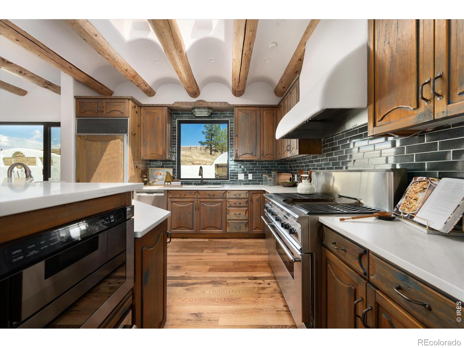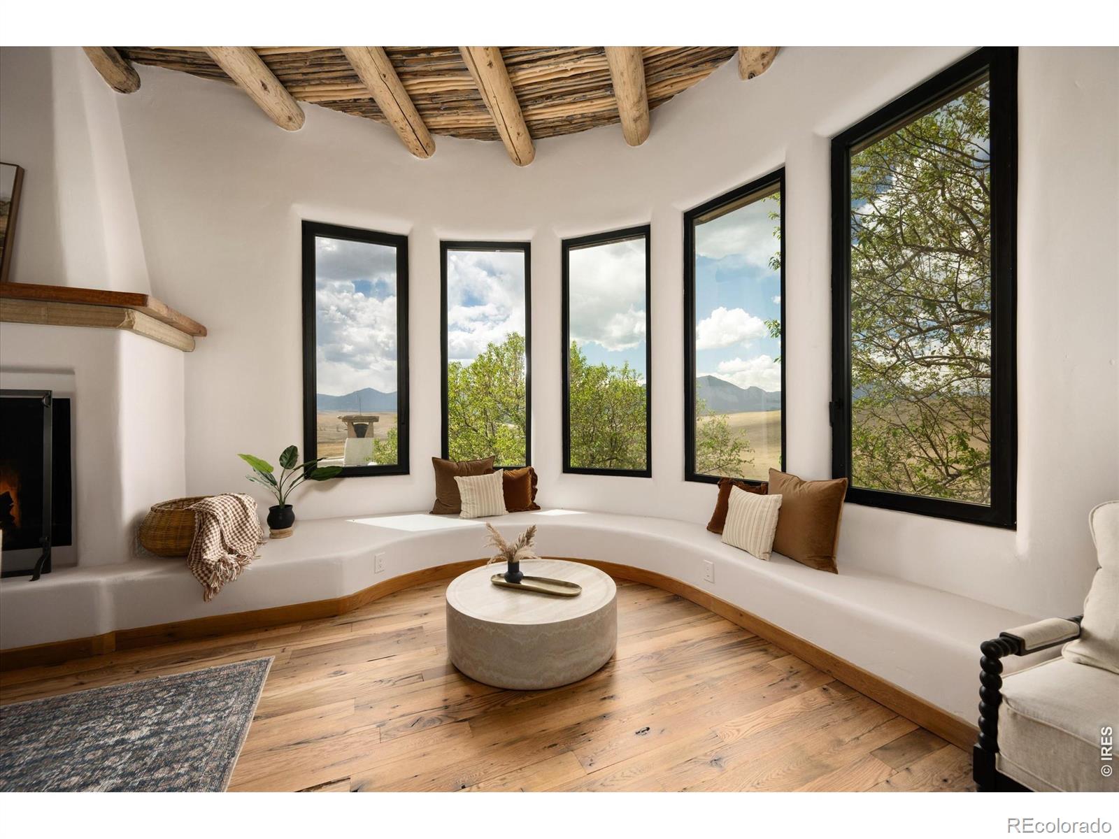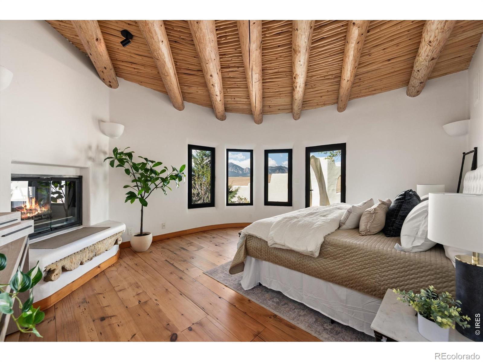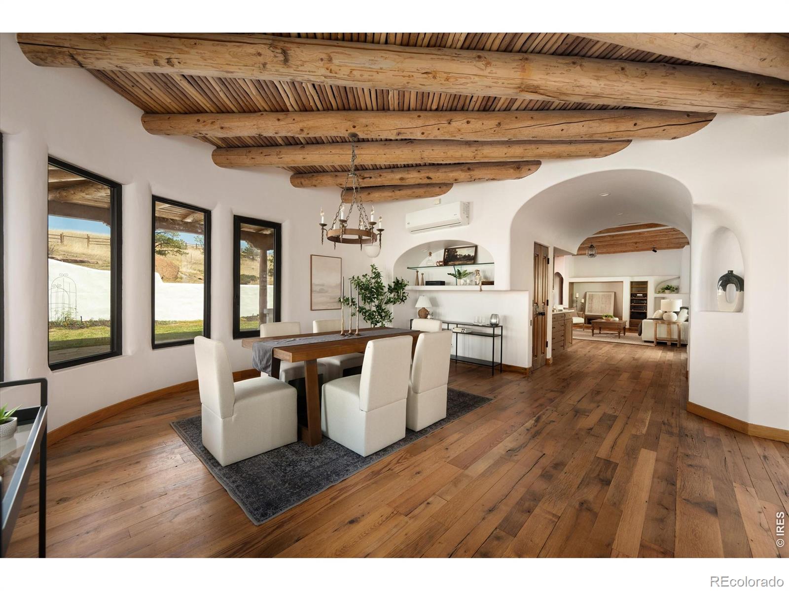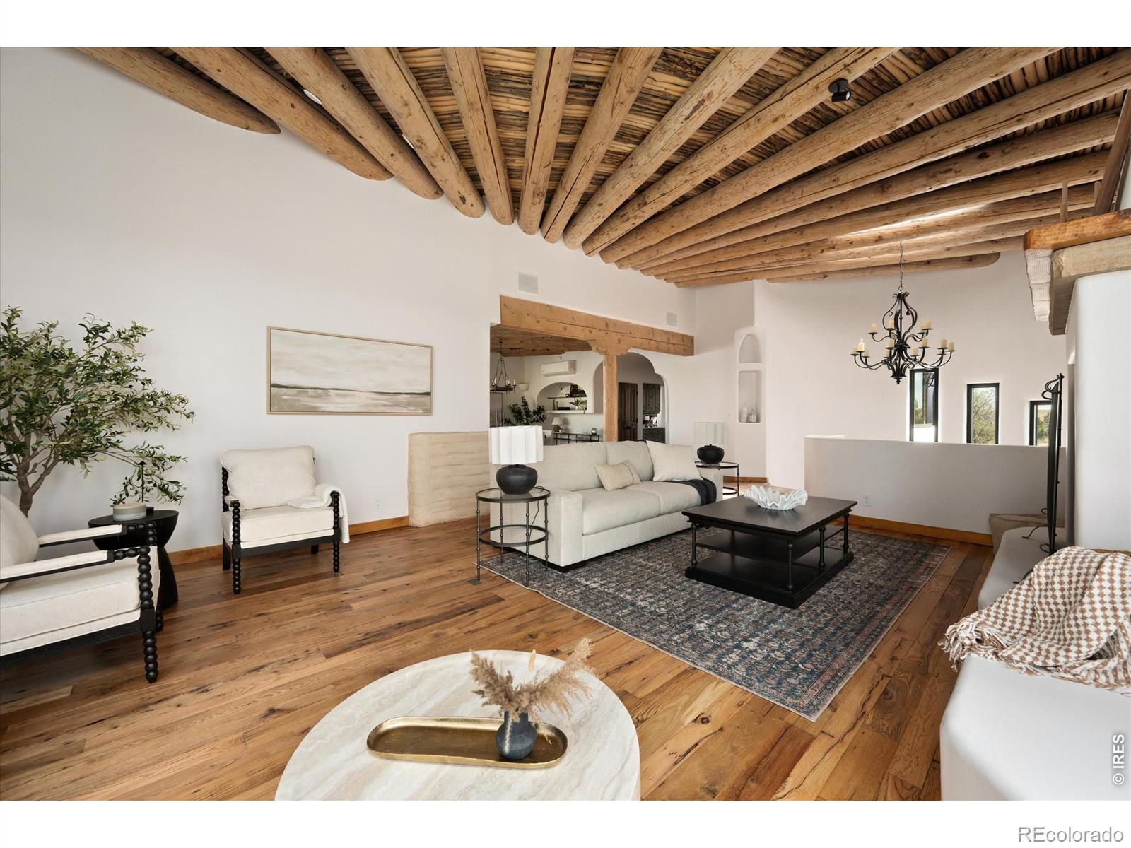 A rare opportunity to own one of Boulder County's most private and architecturally distinctive estates, set on nearly 3 acres directly bordering protected Open Space with unobstructed views that will never change. Extensively remodeled in 2025/2026, this Spanish-inspired retreat blends Santa Fe design with elevated modern finishes across approximately 5,800 square feet. Behind a gated entrance, three enclosed courtyards create a resort-style experience, four secluded patios, all offering seamless indoor-outdoor living, incredible natural light, and unmatched privacy. Inside, soaring 10 to 12 foot ceilings with log beam and latilla detail set the tone, complemented by a rich mix of sandstone, tile, and antique distressed pine and oak wood flooring. Eight fireplaces, custom cabinetry, and stone and quartz surfaces deliver warmth and craftsmanship throughout. The upper main level features a beautifully updated kitchen, multiple living and dining spaces, a solarium, and a private guest suite with its own kitchen and bath, ideal for multigenerational living or long-term guests. The main levels expand the lifestyle with a four car garage with copper clad doors, multiple offices/rooms, game and hobby spaces, sauna, and a secure walk-in safe room. The primary suite is a true escape, complete with a private library, hidden storage, spa-inspired bath with steam shower and soaking tub, and a dedicated jacuzzi and workout room. Built with reinforced concrete & steel, this home offers exceptional durability, fire resistance, and efficiency, complemented by in-floor heating, and whole house fan, this property delivers both peace of mind and enduring quality. Step outside to direct access to City of Boulder open space that extends over hundreds of acres to the Marshall Mesa trail head & experience the perfect balance of peaceful isolation & convenience, just minutes to Boulder, Denver, and Golden. Properties with this level of privacy, views, and proximity are rarely available.