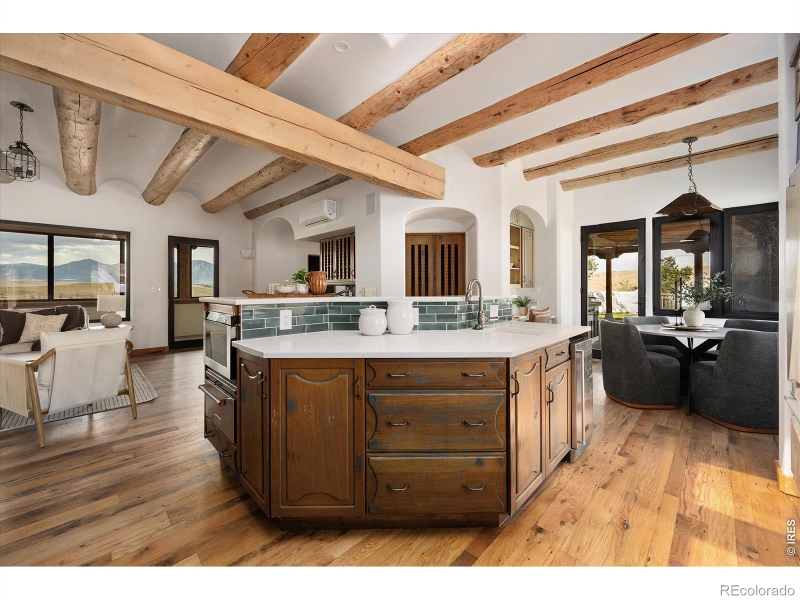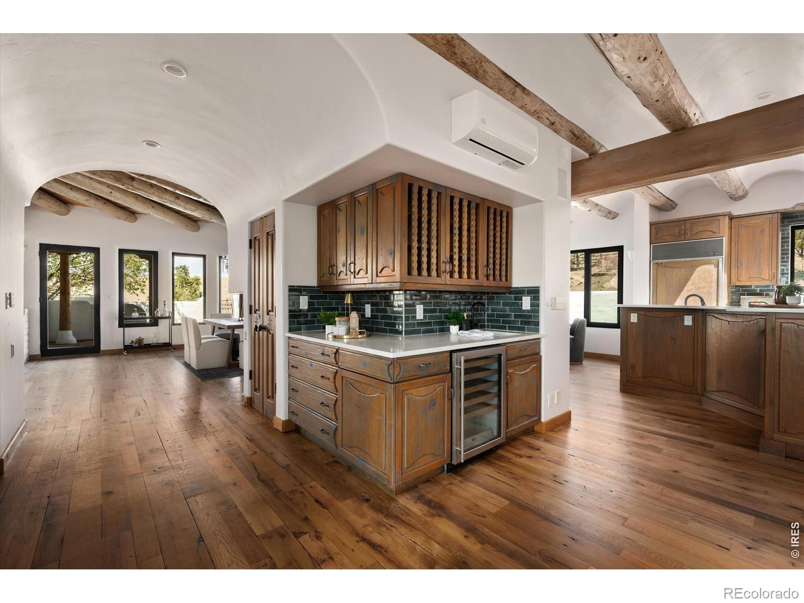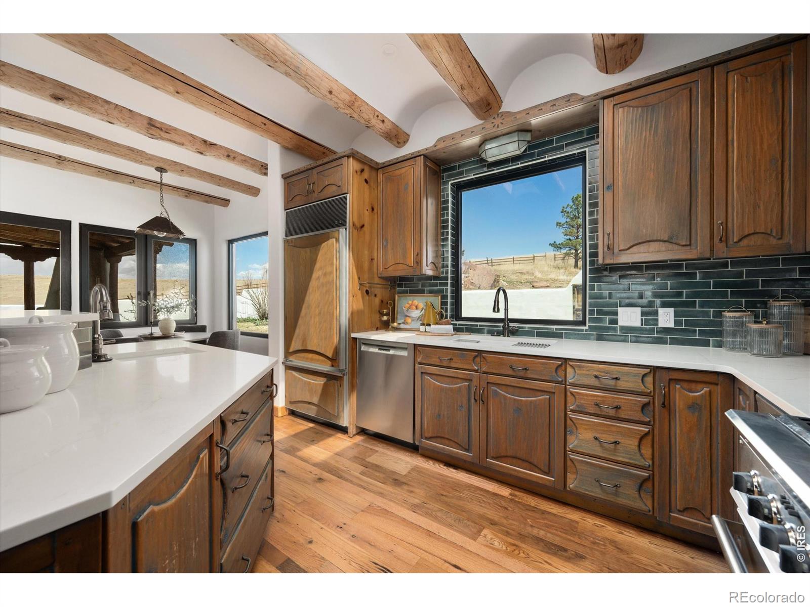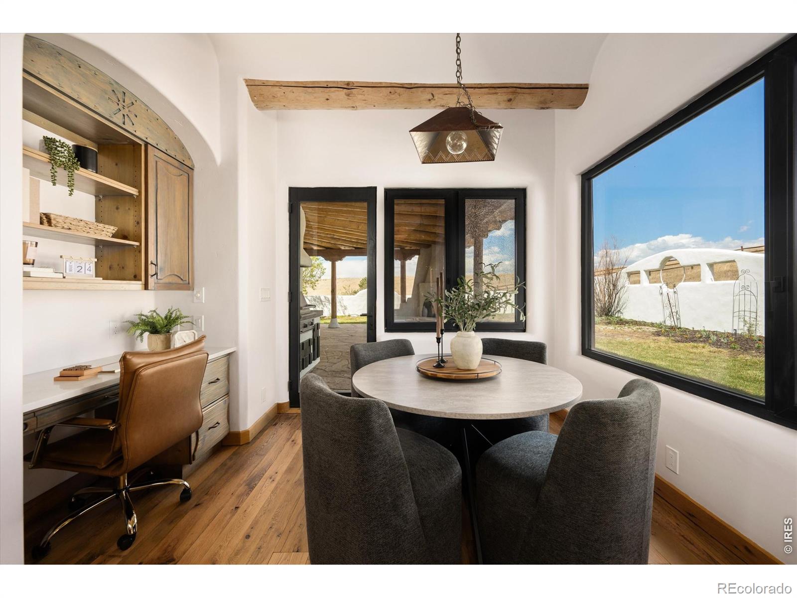 A rare opportunity to own one of Boulder County's most private and architecturally distinctive estates, set on nearly 3 acres directly bordering protected Open Space with unobstructed views that will never change. Extensively remodeled in 2025/2026, this Spanish-inspired retreat blends Santa Fe design with elevated modern finishes across approximately 5,800 square feet. Behind a gated entrance, three enclosed courtyards create a resort-style experience, four secluded patios, all offering seamless indoor-outdoor living, incredible natural light, and unmatched privacy. Inside, soaring 10 to 12 foot ceilings with log beam and latilla detail set the tone, complemented by a rich mix of sandstone, tile, and antique distressed pine and oak wood flooring. Eight fireplaces, custom cabinetry, and stone and quartz surfaces deliver warmth and craftsmanship throughout. The upper main level features a beautifully updated kitchen, multiple living and dining spaces, a solarium, and a private guest suite with its own kitchen and bath, ideal for multigenerational living or long-term guests. The main levels expand the lifestyle with a four car garage with copper clad doors, multiple offices/rooms, game and hobby spaces, sauna, and a secure walk-in safe room. The primary suite is a true escape, complete with a private library, hidden storage, spa-inspired bath with steam shower and soaking tub, and a dedicated jacuzzi and workout room. Built with reinforced concrete & steel, this home offers exceptional durability, fire resistance, and efficiency, complemented by in-floor heating, and whole house fan, this property delivers both peace of mind and enduring quality. Step outside to direct access to City of Boulder open space that extends over hundreds of acres to the Marshall Mesa trail head & experience the perfect balance of peaceful isolation & convenience, just minutes to Boulder, Denver, and Golden. Properties with this level of privacy, views, and proximity are rarely available.