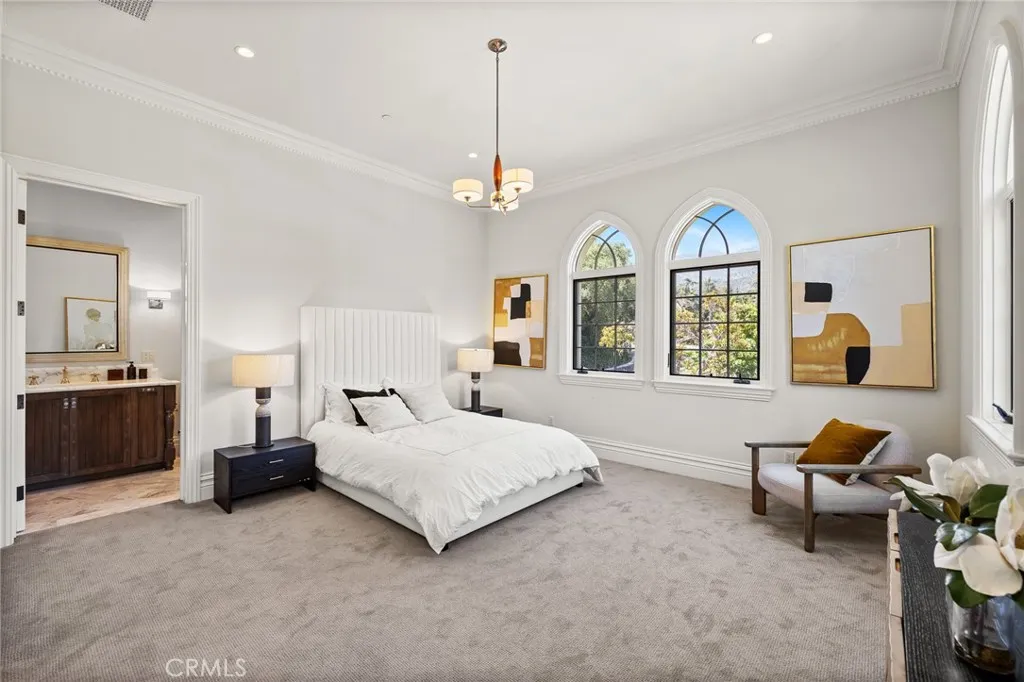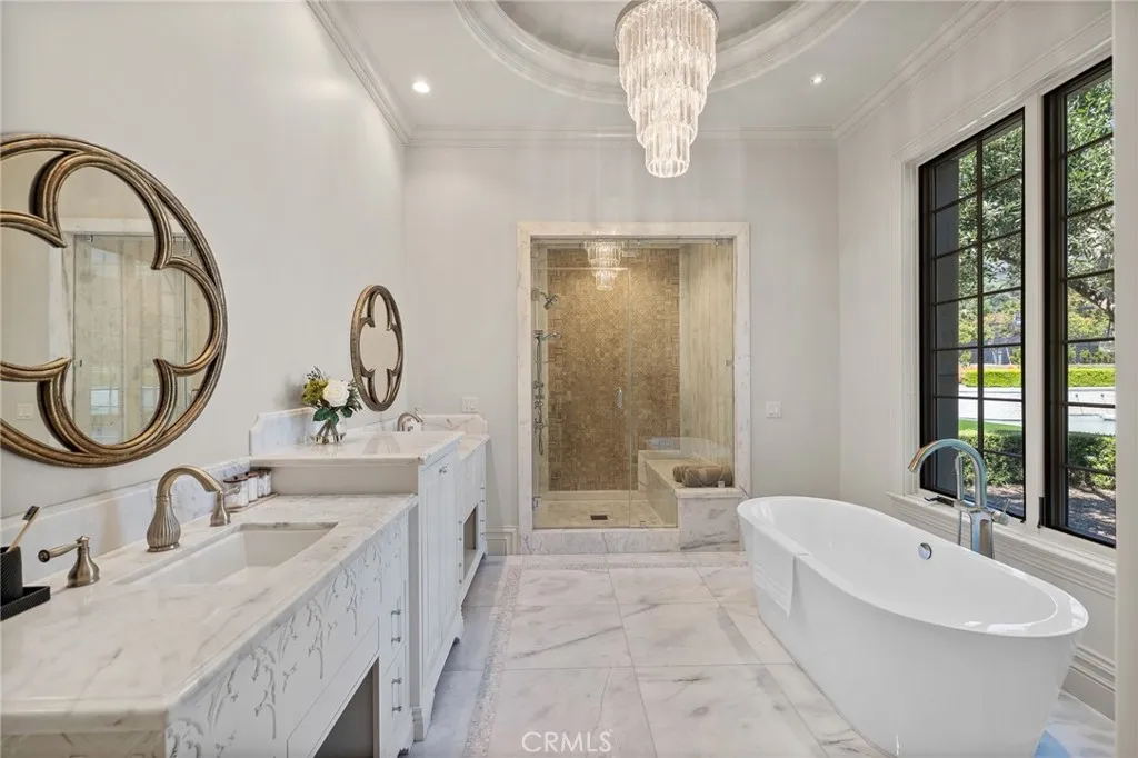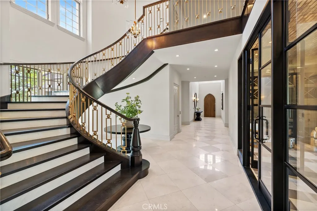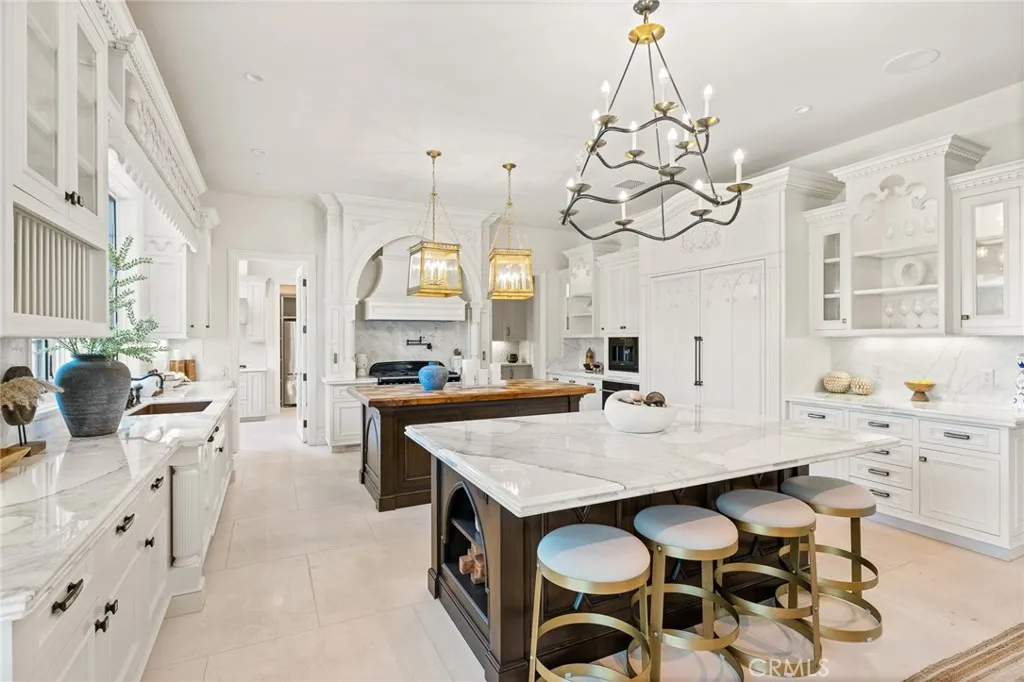 Priced under market value! Rare find. Set behind private wrought-iron gates in the prestigious guard-gated enclave of Bradbury Estates, 18 Dovetail Lane is a masterfully designed English Tudor mansion that blends timeless architecture with modern luxury across an expansive 2.52-acre lot. With 10 bedrooms and 13 bathrooms, including a private 3-bed, 4-bath guest house, this estate is the ultimate in refined living. The main residence offers 7 bedrooms and 9 bathrooms, showcasing soaring cathedral ceilings, gothic arches, fleur-de-lis detailing, and intricate woodwork. A soft neutral palette accented by antiqued metallics and natural finishes evokes both warmth and grandeur. Custom highlights include a gilded coffered library, gourmet kitchen with artisan cabinetry, secondary wok kitchen, private home theater, and dedicated spa room for ultimate relaxation. Resort-style grounds are equally impressive, featuring a full-size basketball court, life-sized chess garden, sparkling pool and spa, and elegant formal landscaping designed for entertaining and peaceful retreat. With its blend of European elegance and California luxury, this stately residence is a rare offering in one of Southern Californias most exclusive communities.