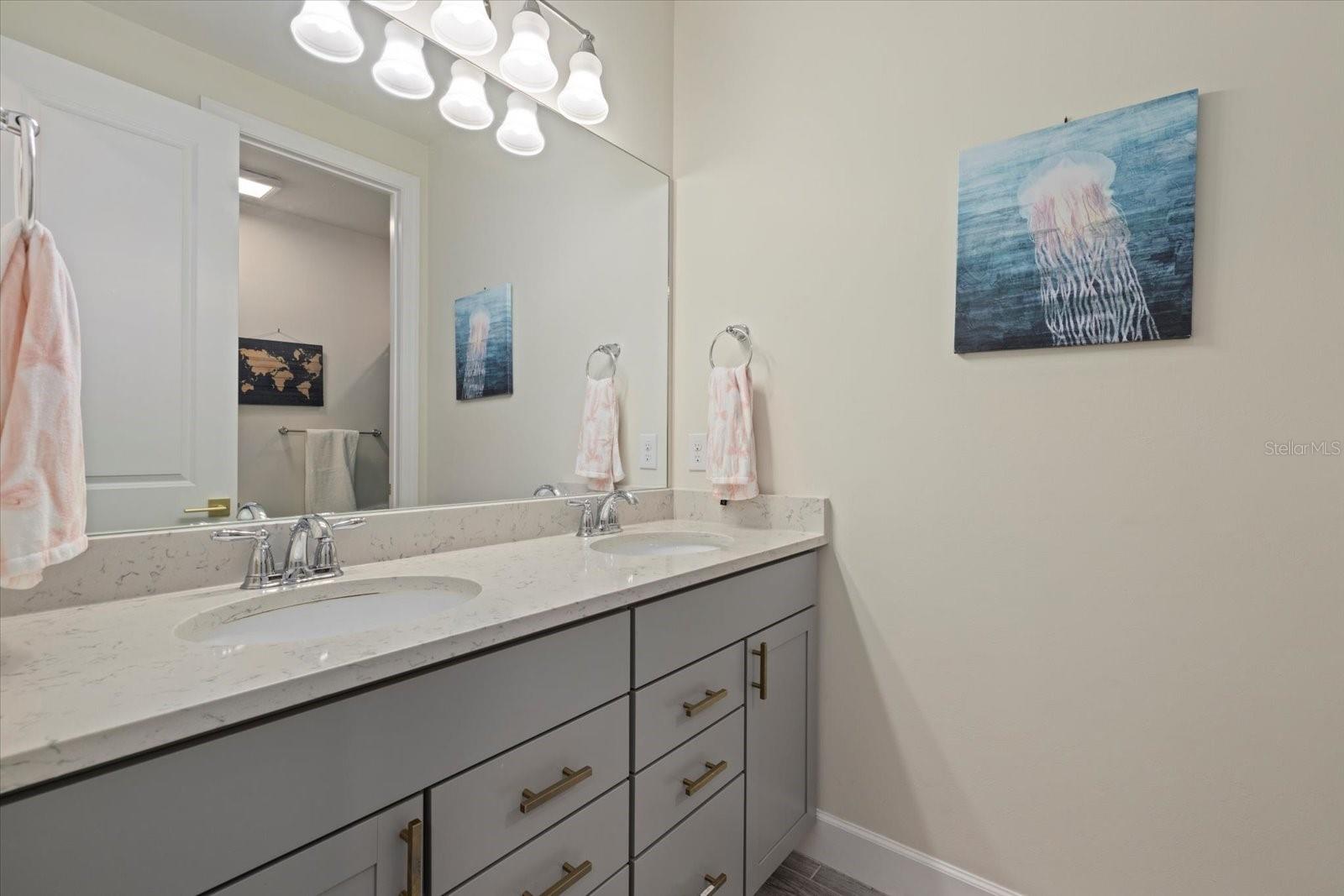 Upstairs, the spacious primary suite is a true retreat, featuring a spa-like en-suite bath and a custom-designed walk-in closet. Three additional guest bedrooms offer abundant natural light and large closets, while a generous guest bathroom provides plenty of space for family or guests.