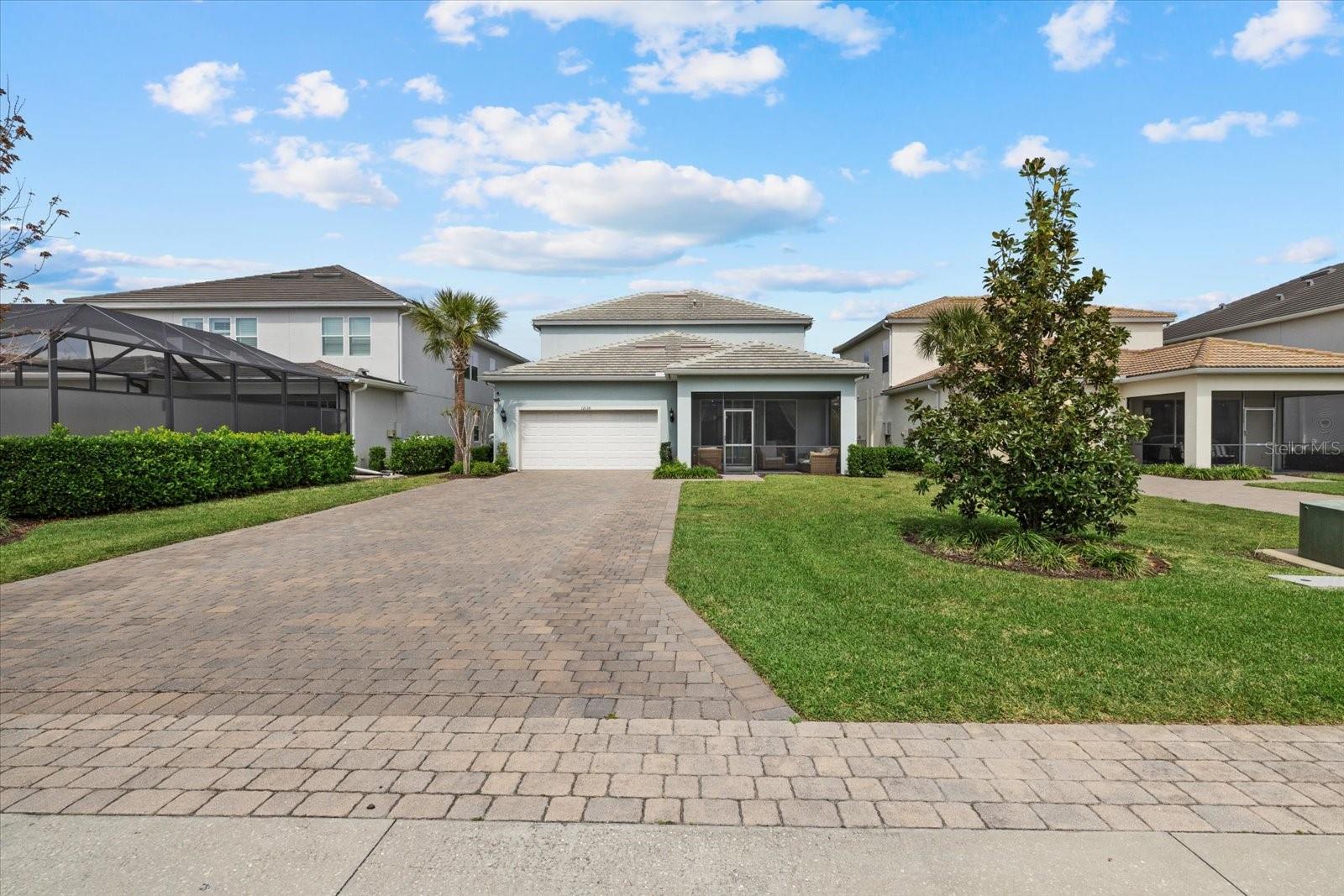 Designed with entertaining in mind, the main level features a chef’s dream kitchen with a large island, eat-in dining space, a butler’s pass-through with bar, and a custom pantry. The open-concept great room seamlessly connects to the lanai and backyard, providing the perfect indoor-outdoor flow. A formal dining room offers a sophisticated space for gatherings, while a dedicated home office provides a quiet retreat for work or study. The first floor also includes a guest bedroom with a private en-suite bath, ideal for visitors or multi-generational living, as well as a convenient guest bath and an extended garage for extra storage.