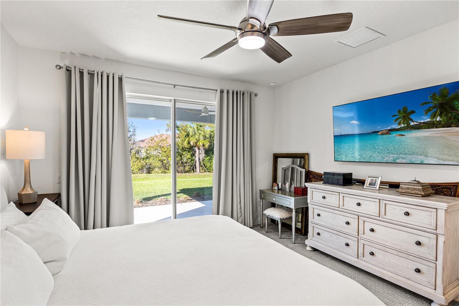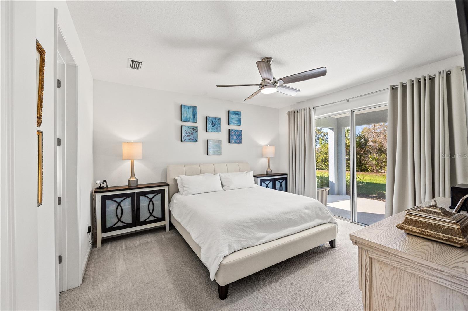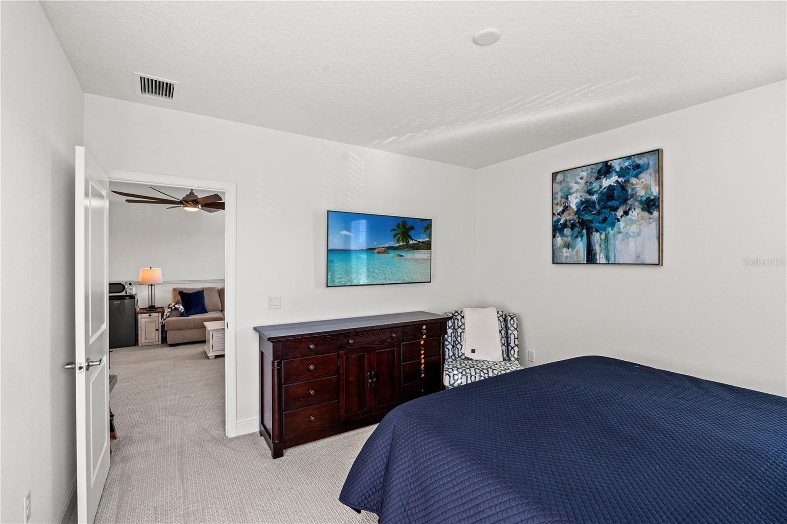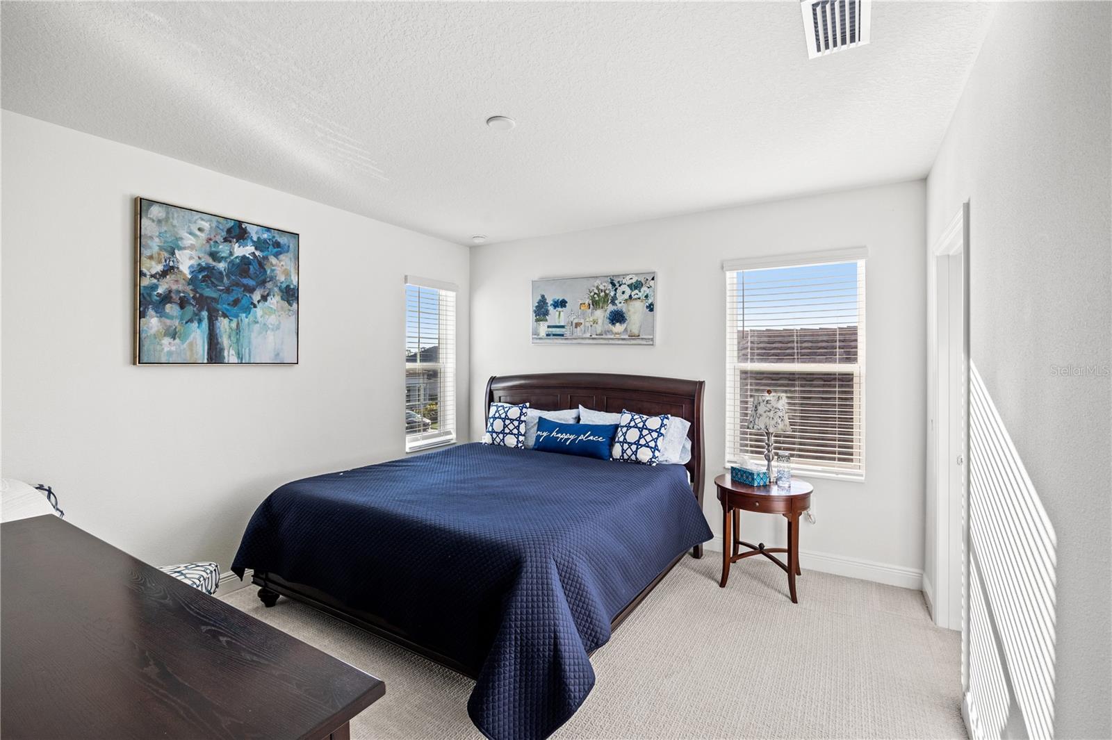 The main-floor owner’s suite is a private retreat featuring sliding glass doors leading to the backyard patio, a spa-like ensuite with dual sink vanities, a large walk-in closet, and a spacious corner shower. Upstairs, a versatile loft space is perfect for a recreation room, second living area, or home office. Three additional bedrooms offer ample space, bedrooms 2 and 3 to bring in Florida’s natural light. This home is equipped with a state-of-the-art UV air purification system integrated into the HVAC, using ultraviolet light technology to help eliminate airborne bacteria, viruses, and allergens—ensuring cleaner, healthier air throughout the home.