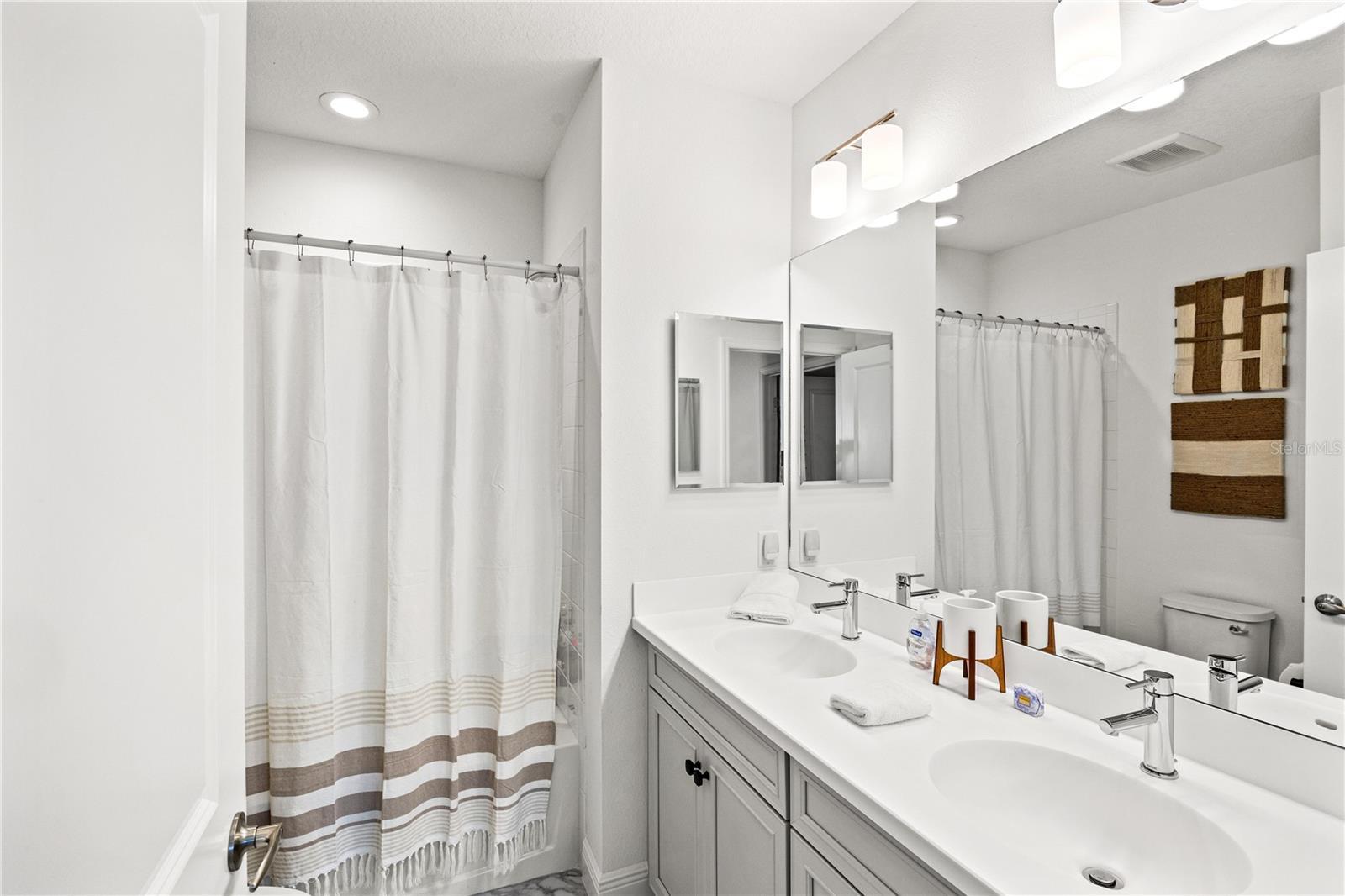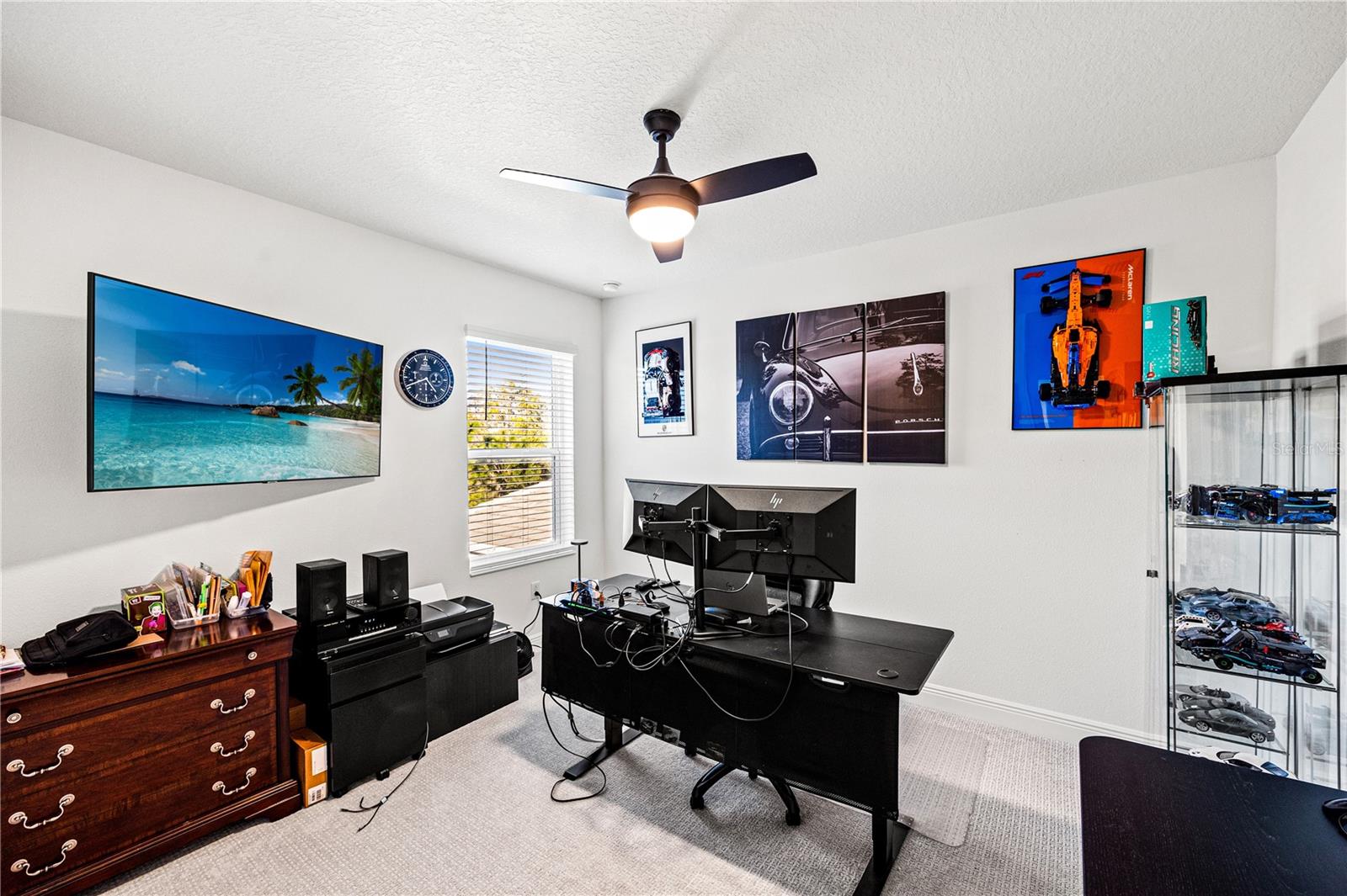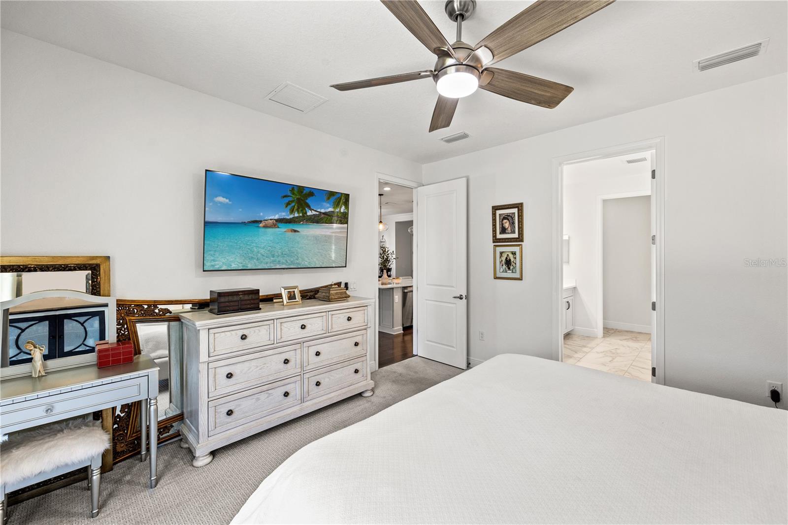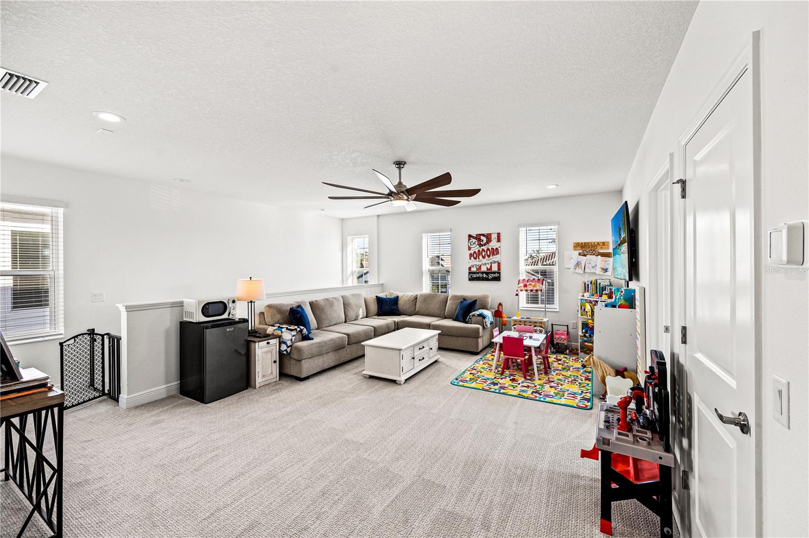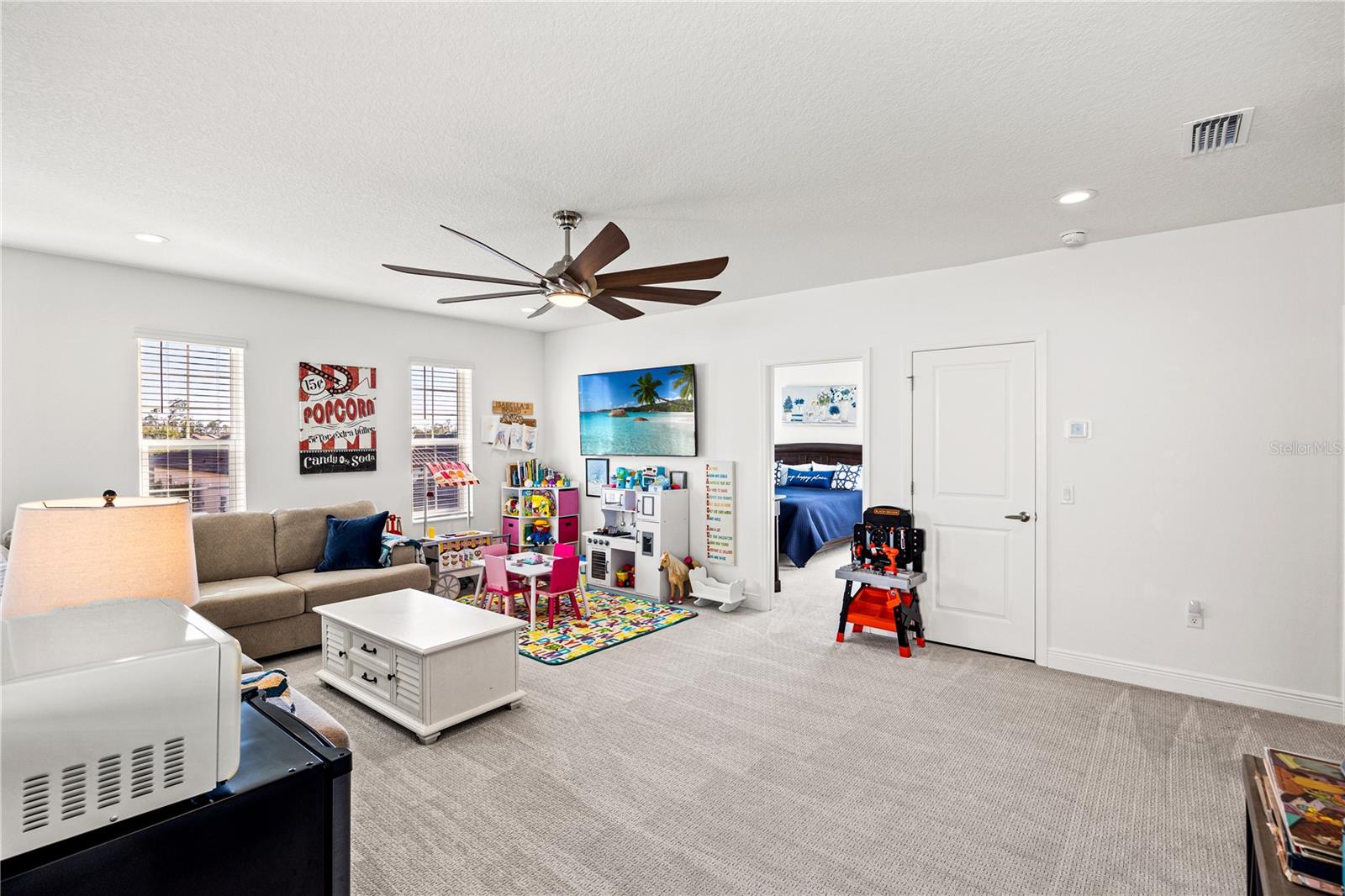The main-floor owner’s suite is a private retreat featuring sliding glass doors leading to the backyard patio, a spa-like ensuite with dual sink vanities, a large walk-in closet, and a spacious corner shower. Upstairs, a versatile loft space is perfect for a recreation room, second living area, or home office. Three additional bedrooms offer ample space, bedrooms 2 and 3 to bring in Florida’s natural light. This home is equipped with a state-of-the-art UV air purification system integrated into the HVAC, using ultraviolet light technology to help eliminate airborne bacteria, viruses, and allergens—ensuring cleaner, healthier air throughout the home.