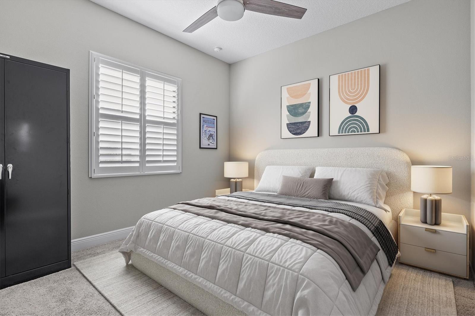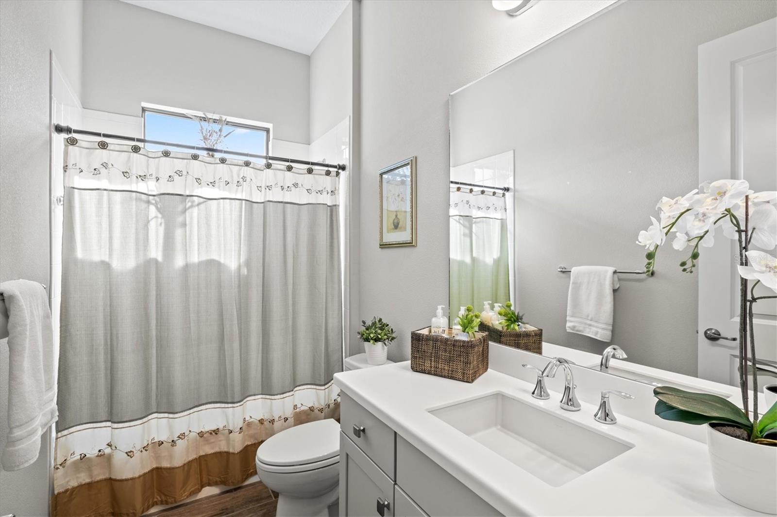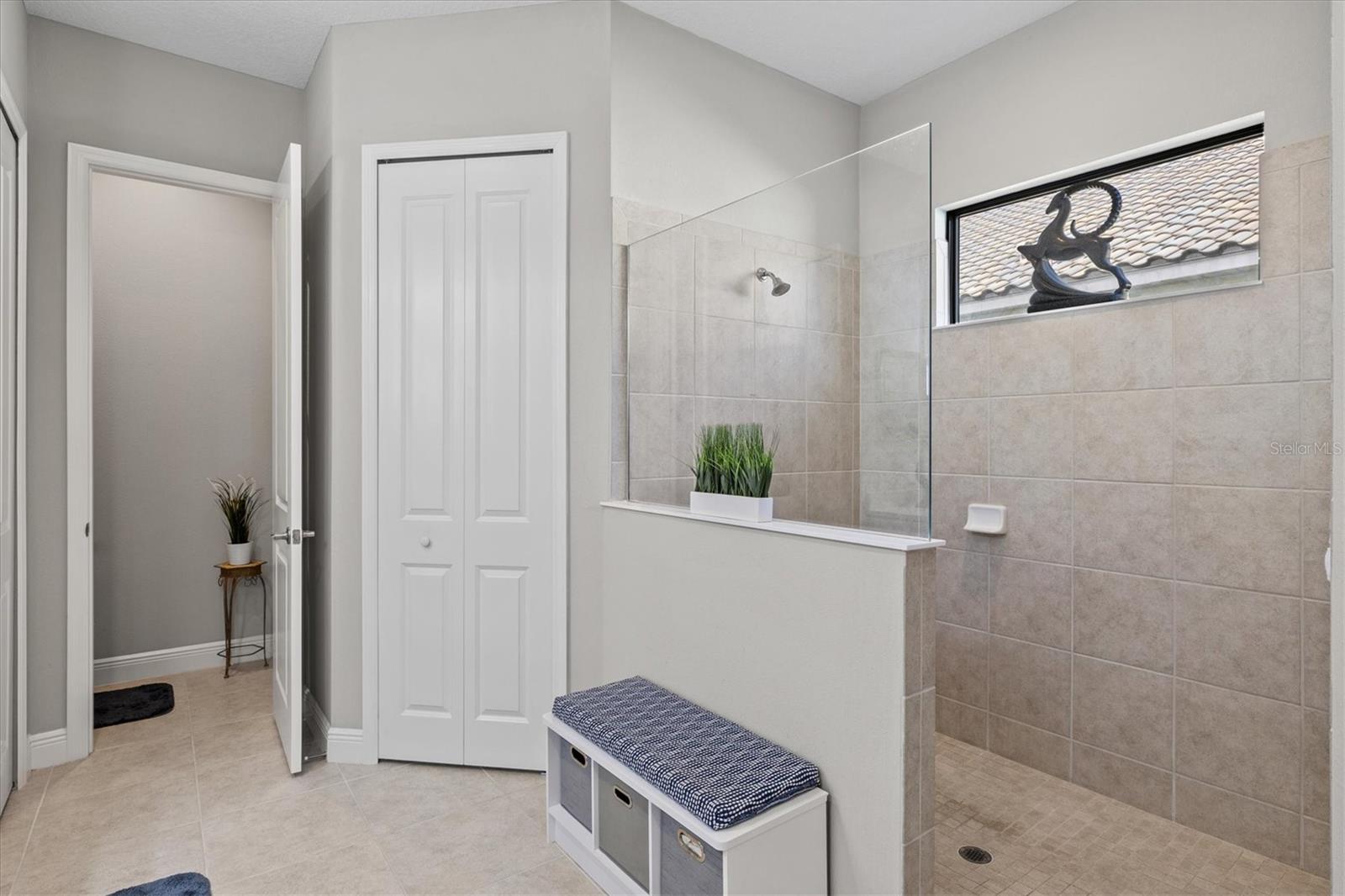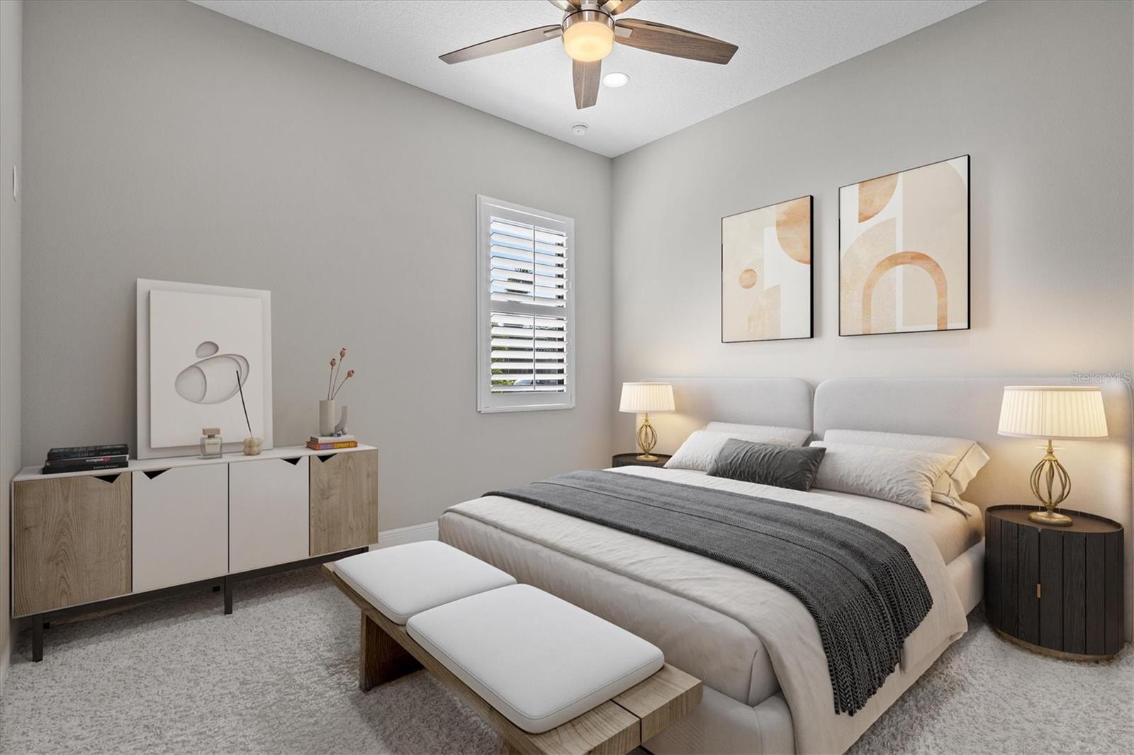 A striking glass-inset front door welcomes you into a sun-drenched foyer, where natural light dances across sleek ceramic tile floors and soaring tray ceilings set a grand tone. Attention to detail is evident throughout—plantation shutters, crown molding, and designer lighting accents elevate every space with timeless style.