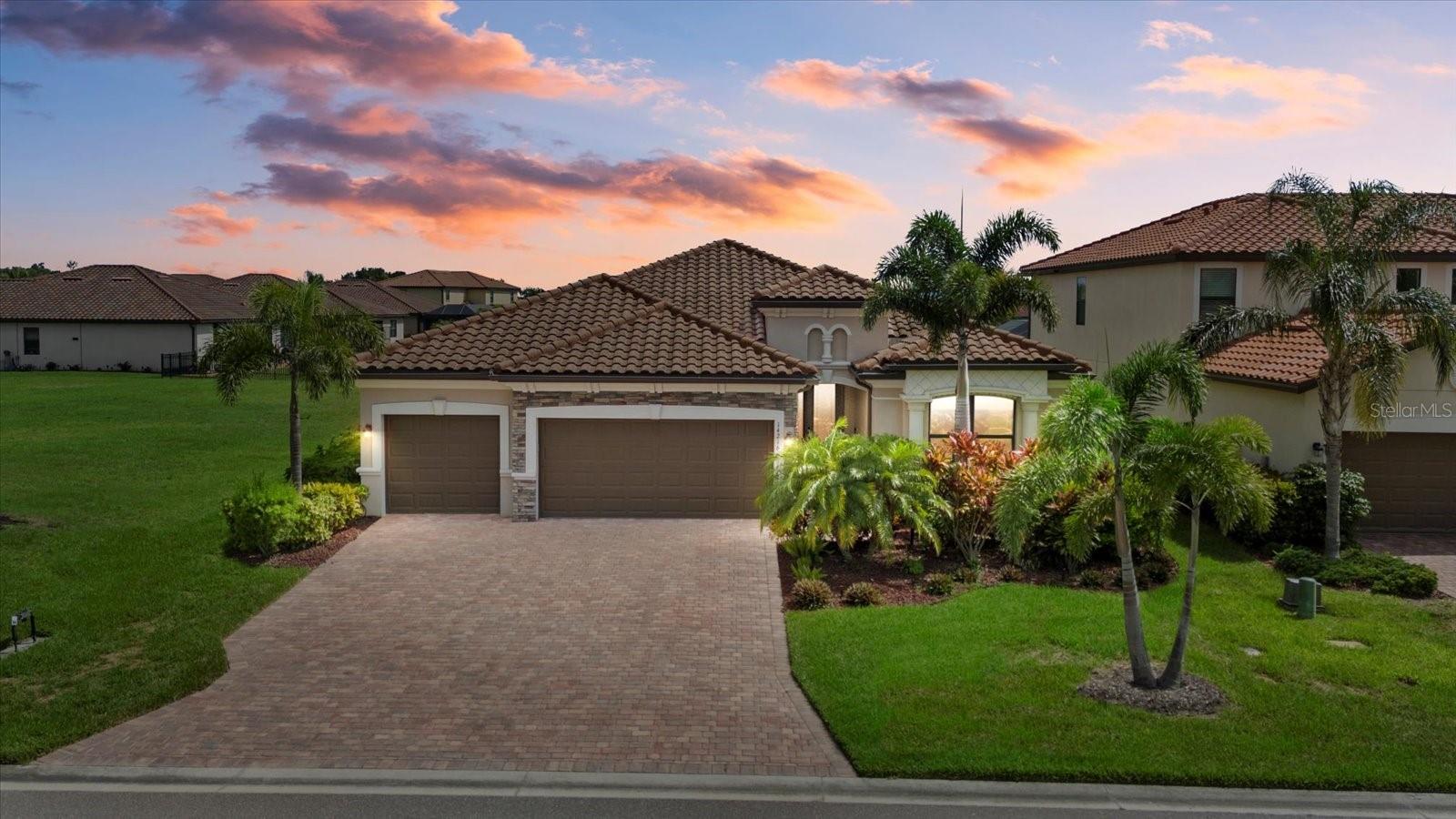 comfortable and inviting atmosphere. From the kitchen and breakfast nook, your view opens up to the sparkling pool, large paver patio, and screened lanai, all set against a backdrop of gleaming lake views and breathtaking tropical sunsets. As you arrive, the stacked stone accents on the upgraded front elevation, along with the three-car garage, immediately make a strong impression. The approach to the home is equally appealing, with lush landscaping and a perfectly manicured lawn—all maintained by the community for low-maintenance living. Located in the gated neighborhood of Savanna at Lakewood Ranch, you’ll be just minutes from everything this vibrant master-planned community has to offer—including Waterside, Lakewood Ranch Country Club, top-rated schools, and everyday conveniences. This newer construction home provides added peace of mind, knowing the structural and mechanical components are in excellent condition. Don’t miss this opportunity to own a piece of paradise in one of the most sought-after neighborhoods in Lakewood Ranch. Schedule your private showing today.