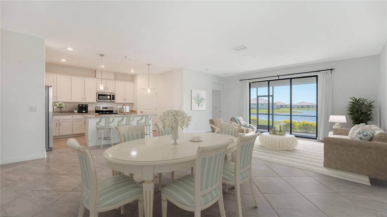 One or more photo(s) has been virtually staged. Discover your dream home in Lorraine Lakes, Lakewood Ranch—a stunning 2022 Trevi Model with mesmerizing lake vistas, offering 4 bedrooms, 3 bathrooms, and a 2-car garage in a gated, resort-style haven. The home presents a sprawling, open-concept design and ensures vibrant, unobstructed lake views that are like an ever-changing work of art—perfectly framed by panoramic windows and sliders that flood the interior with natural light. Step inside to discover a modern, airy layout designed for effortless living. The great room flows seamlessly into a well-appointed kitchen featuring polished stainless-steel appliances and durable quartz countertops, with the dining area completing the layout—all oriented to maximize that picture-perfect waterfront vista. The all-tile flooring gives the home a refined, cohesive look, with clean, functional finishes that elevate the interior. Sliding glass doors lead to a spacious lanai, your private oasis for morning coffee or evening sunsets over the serene lake—a view that feels like a daily vacation. The expansive south-facing backyard offers abundant room for future enhancements, such as a sparkling pool or an enlarged lanai, allowing you to craft your ideal outdoor oasis. The master suite is a tranquil retreat, complete with numerous windows highlighting the water views, a spa-inspired bathroom featuring a roomy shower and elegant quartz countertops, as well as plentiful closet storage. Three additional bedrooms offer flexibility for family, guests, or a home office, with two more full bathrooms—each also appointed with quartz countertops—ensuring comfort and convenience. Outside, the well-kept exterior is complemented by a 2-car garage featuring stylish epoxy floors. For added peace of mind in Florida’s climate, the home comes equipped with hurricane shutters, providing reliable storm protection. Lorraine Lakes elevates your lifestyle with exceptional amenities, rivaling a five-star resort. The grand clubhouse serves as the heart of the community, offering a coffee bar, social rooms, arcade, and meeting spaces. A dedicated lifestyle director enhances the community experience, organizing themed nights, holiday events, bingo, and poker for endless entertainment and connection. Dive into the luxury pools, unwind at the poolside bar, or let the kids enjoy the splash park. Stay active with a state-of-the-art fitness center, aerobics studio, sauna, and courts for tennis, pickleball, basketball, volleyball, and bocce ball. Golf enthusiasts will love the putting green, while scenic walking trails and a playground invite outdoor adventures—all set against the backdrop of lush preserves and sparkling lakes. Located in the heart of Lakewood Ranch, a top-ranked master-planned community, this home is minutes from Lakewood Ranch Main Street’s boutiques and dining, University Town Center’s upscale shopping, and the Premier Sports Campus. Pristine Gulf Coast beaches like Siesta Key are just a short drive away, blending small-town charm with coastal convenience. With top-rated schools (B.D. Gullett Elementary, Mona Jain Middle, Lakewood Ranch High) and included HOA perks like lawn maintenance, cable, and internet, every detail is designed for ease and enjoyment. This move-in-ready gem with its striking waterfront setting won’t last long. Schedule your private tour today to experience the magic of Lorraine Lakes living at its finest!