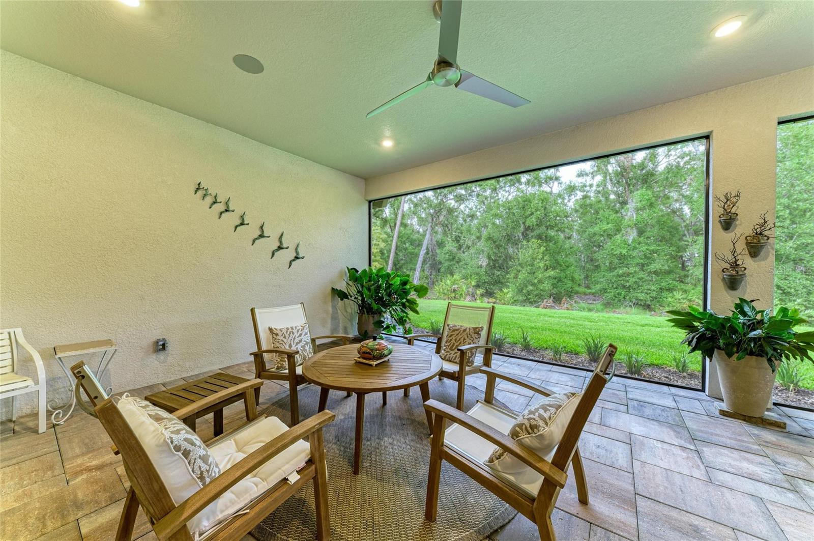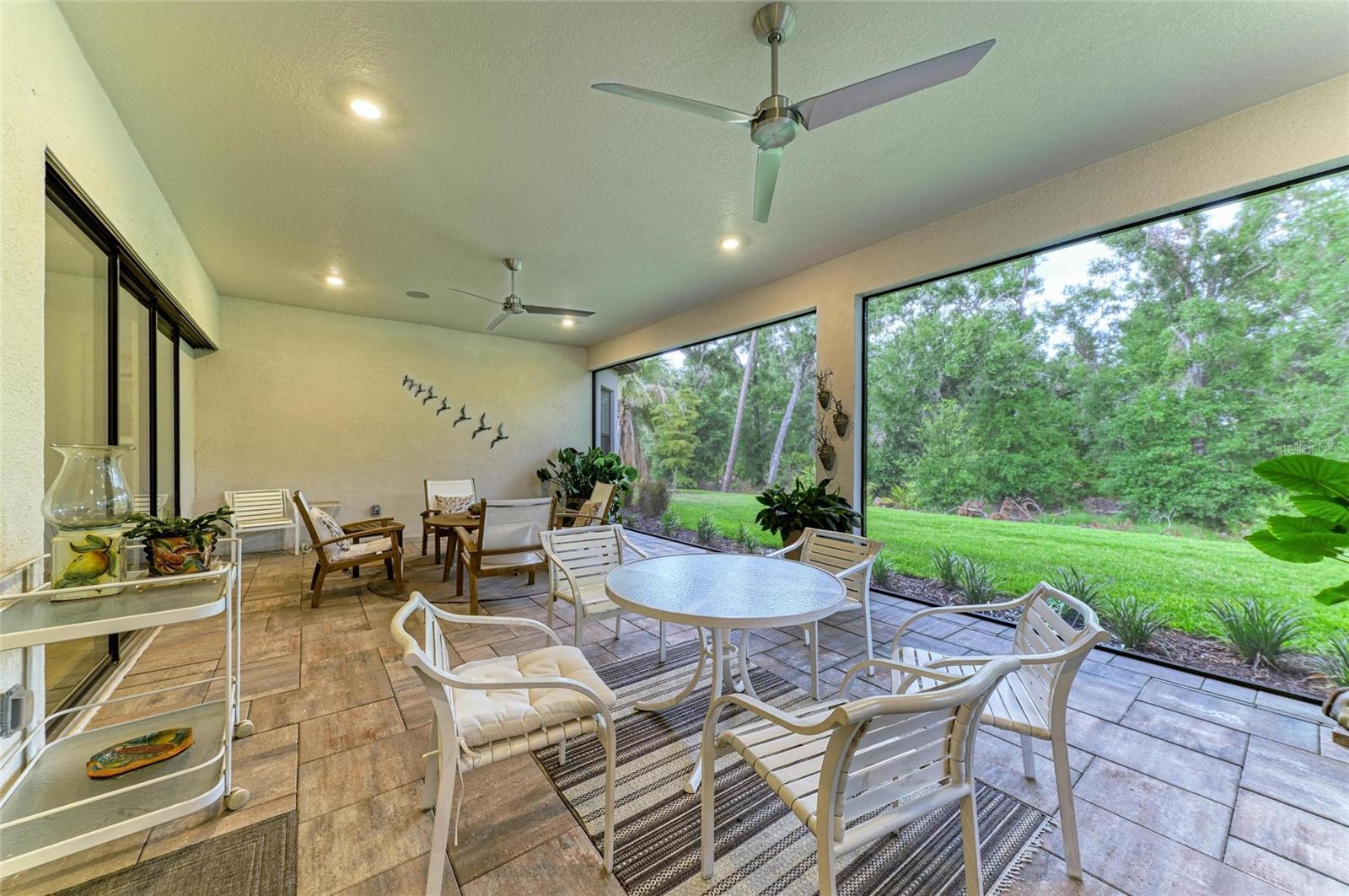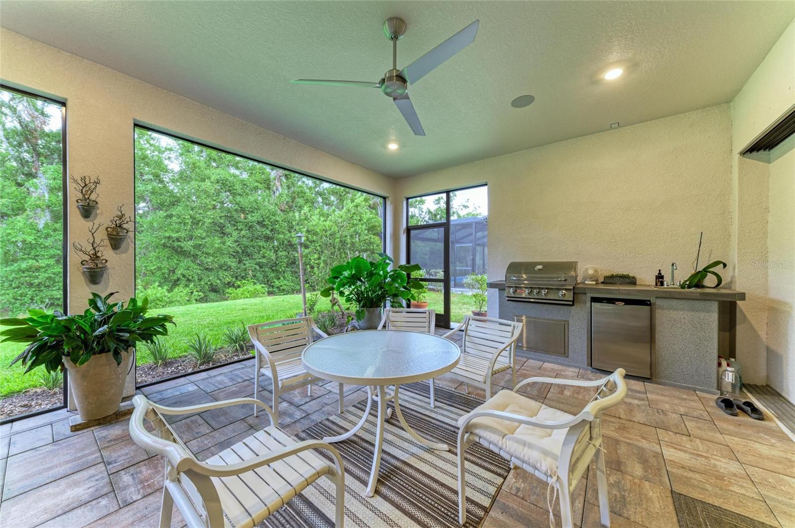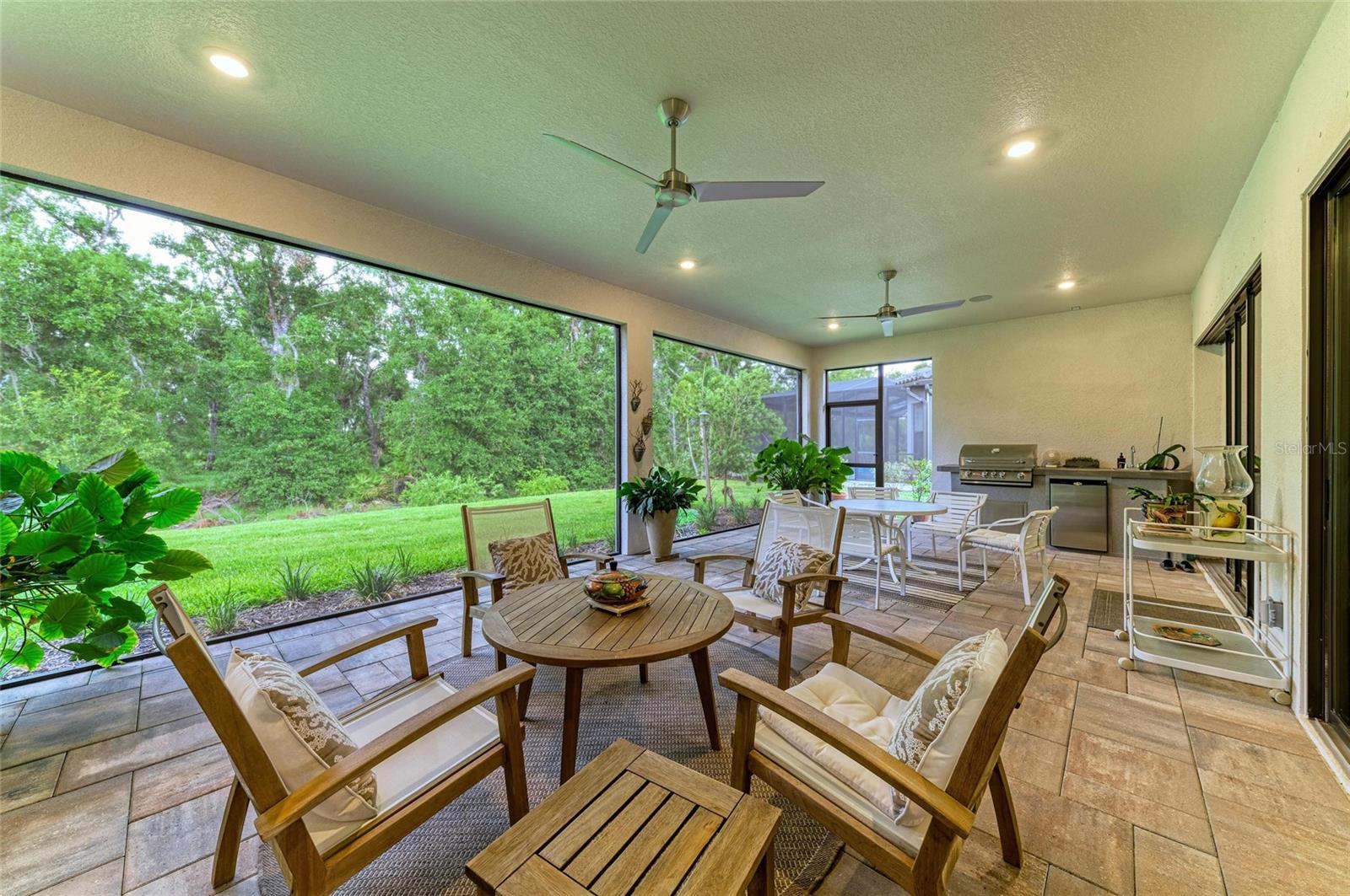 Step outside to your serene, screened-in lanai with a built-in summer kitchen, ideal for alfresco dining or hosting guests against a backdrop of Florida’s natural beauty. The home backs up to a heavily wooded preserve, offering rare and sought-after privacy. Silent ceiling fans are thoughtfully placed throughout all living areas, including the lanai, to ensure year-round comfort. The garage features an acrylic-sealed floor and an enlarged tandem space to accommodate extra storage or your favorite hobby.