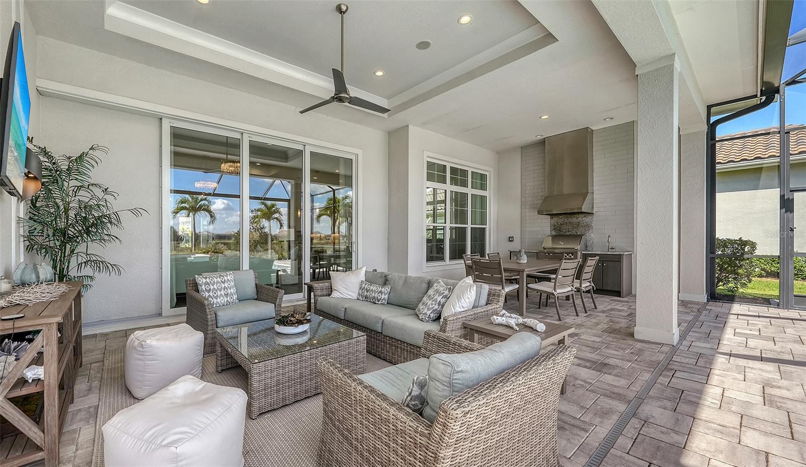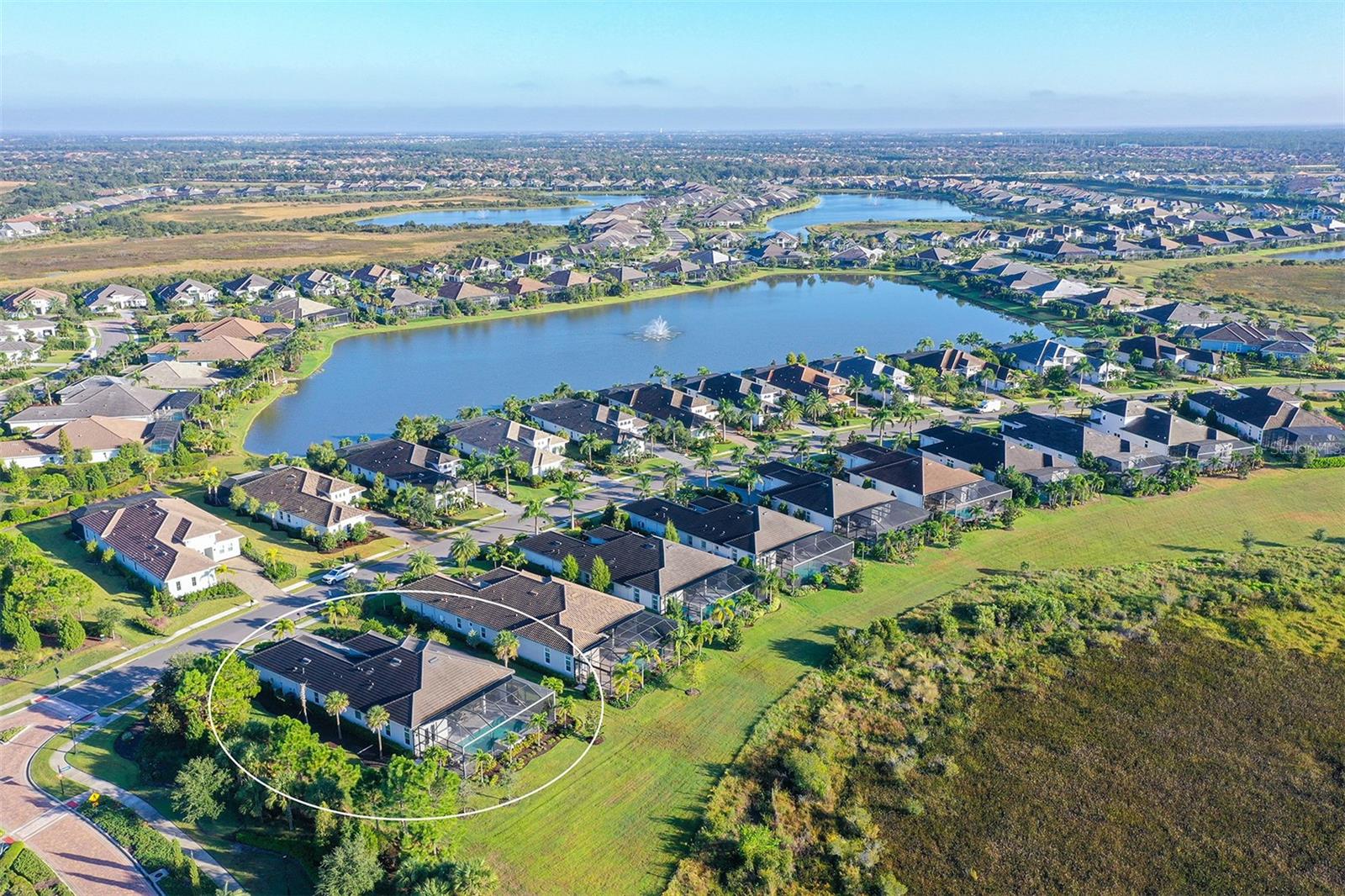 Built in 2020, this former model home presents an exceptional opportunity within Lakewood Ranch’s most prestigious gated community. Offered turnkey furnished, the home allows the new owner to move in immediately. The highly sought-after Birchwood III floor plan by Stock Luxury Homes offers 2,429 square feet under air, featuring three bedrooms, a den, two and a half baths, and a three-car garage, all designed for comfortable one-level living. Upgrades are featured throughout, including enhanced millwork, ceiling detail, wood flooring, and statement lighting, everything you would expect from a model home. The open great room connects seamlessly to the outdoors through pocketing sliding glass doors, creating an ideal flow for both everyday living and entertaining. The kitchen is well appointed with quartz countertops, upgraded appliances, pull-out cabinet organizers, and natural gas, offering both functionality and efficiency. The primary suite provides a private retreat with two walk-in closets, dual vanities, a freestanding soaking tub, and a linen closet. Outdoor living is a priority here, highlighted by a custom heated pool and spa, 460sf of covered seating and dining areas, and a built-in outdoor kitchen, all overlooking private preserve views for a peaceful and private setting. The home is offered fully furnished with professionally selected pieces, allowing for an easy and immediate move-in experience. The Lake Club offers a refined lifestyle within Lakewood Ranch, centered around a 22,000-square foot Grande Clubhouse featuring a full-service restaurant and bar, two resort-style pools, a fully equipped fitness center, spa services, and concierge amenities. Residents also enjoy access to tennis and pickleball courts, a basketball court, two dog parks, and a calendar of social events thoughtfully planned by a dedicated Lifestyle Director. Located within one of America’s top-rated multigenerational communities, The Lake Club is just minutes from upscale dining and shopping at Waterside Place and University Town Center mall. Lakewood Ranch is host to numerous sporting venues, from soccer and lacrosse to rowing and polo. Enjoy easy access to the I-75 corridor, downtown Sarasota, pristine gulf beaches, and cultural destinations such as the Van Wezel Performing Arts Hall and the Ringling Museum of Art.