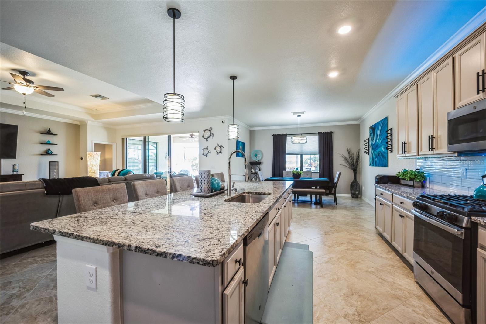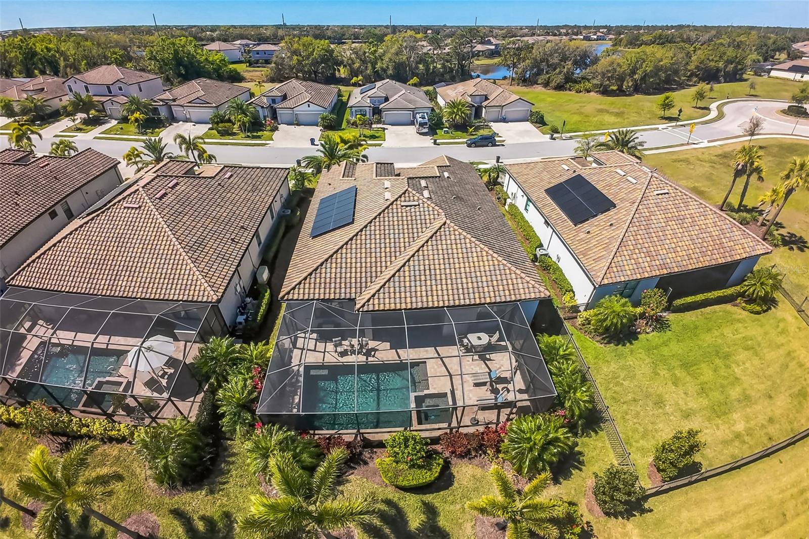 Under contract-accepting backup offers. Welcome to your Florida dream house. This beautiful and highly desirable Summerville II is situated in the amazing, master-planned community of Lakewood Ranch. As you enter the home, the vacation ambiance of this open-floor plan is immediately apparent with its large glass slider that provides views of the pool, lush landscaping, and a lake. This home has a lot of exciting features including 3 bedrooms, 3 full baths, a bonus room, and a 3-car garage. You'll find granite countertops in the kitchen and laundry, and beautiful white quartzite in all of the bathrooms. Luxury vinyl plank flooring is in all bedrooms and the bonus room, with ceramic tiles throughout the rest of the home. This wonderfully appointed home has tray ceilings, crown molding and an oversize kitchen that features a large dining area, almost 12' of island seating, stainless steel appliances, and a large ungraded kitchen sink and faucet...all perfect for entertaining guests. The spacious primary bedroom suite is gorgeously appointed with a tray ceiling, crown molding, a large soaking tub, a large walk-in shower, vanities on both sides of the bathroom, and you'll absolutely love the 2 large, walk-in closets with built-ins to maximize your storage space. Ceiling fans are located throughout the home. Polo Run is a gated neighborhood and amenities include a large, resort style heated pool, a fitness room, a yoga room, bocce ball, basketball courts, tennis courts, pickleball courts, a dog park, and a community center with grills, a playground and an outdoor shower. Lakewood Ranch is a fantastic community that has something for everyone including great shopping, fine dining, easy access to SRQ airport, and it's just a short drive to Siesta Key, one of the top beaches in America. You'll love this community. Please schedule your appointment to visit today. You'll be happy that you did.