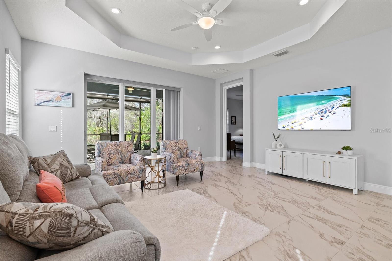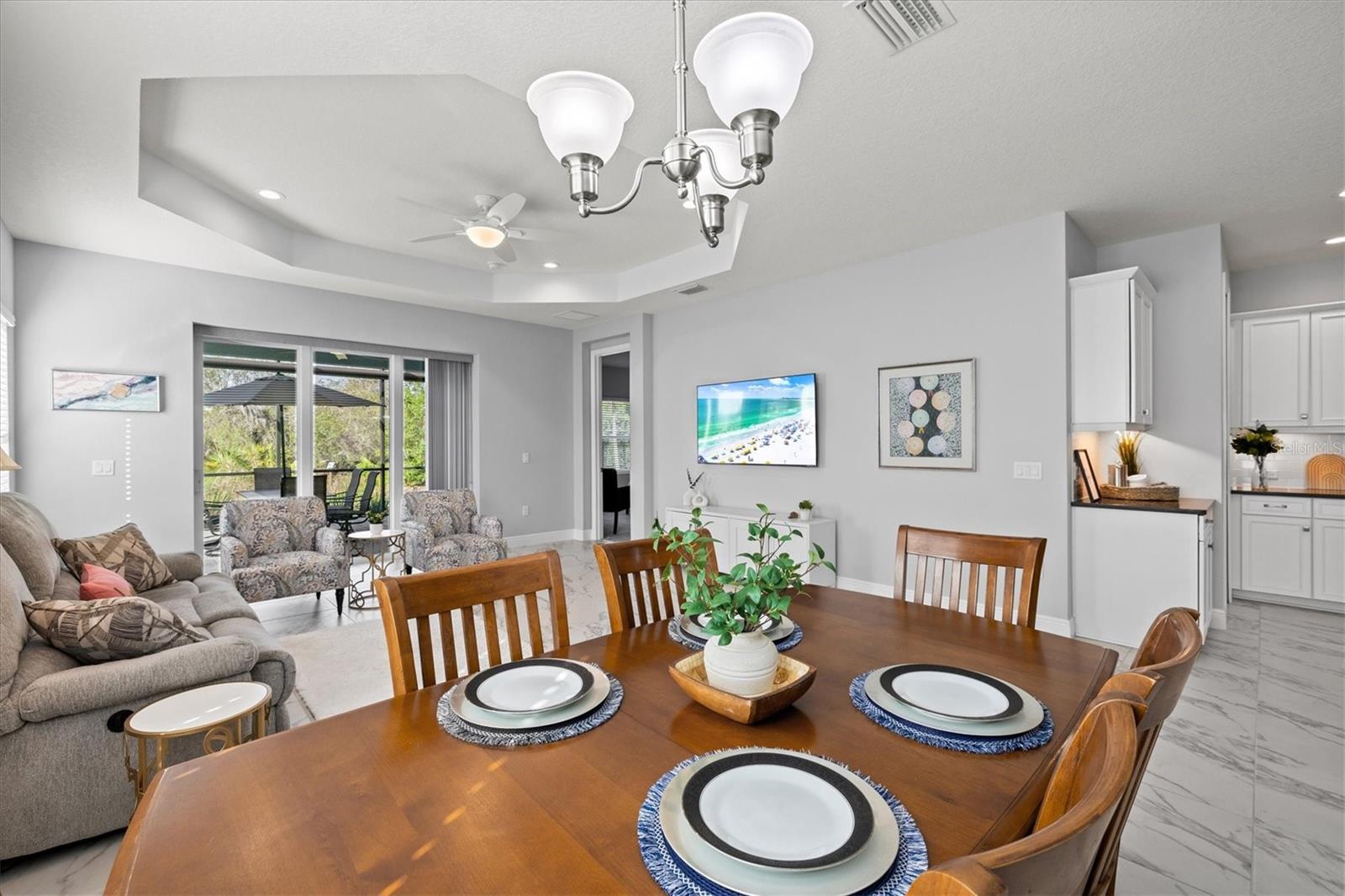 The great room seamlessly connects to the dining area and the expansive lanai, maximizing indoor-outdoor living. The preserve views provide a peaceful retreat where you can unwind, entertain, or simply embrace the beauty of nature in a serene setting.