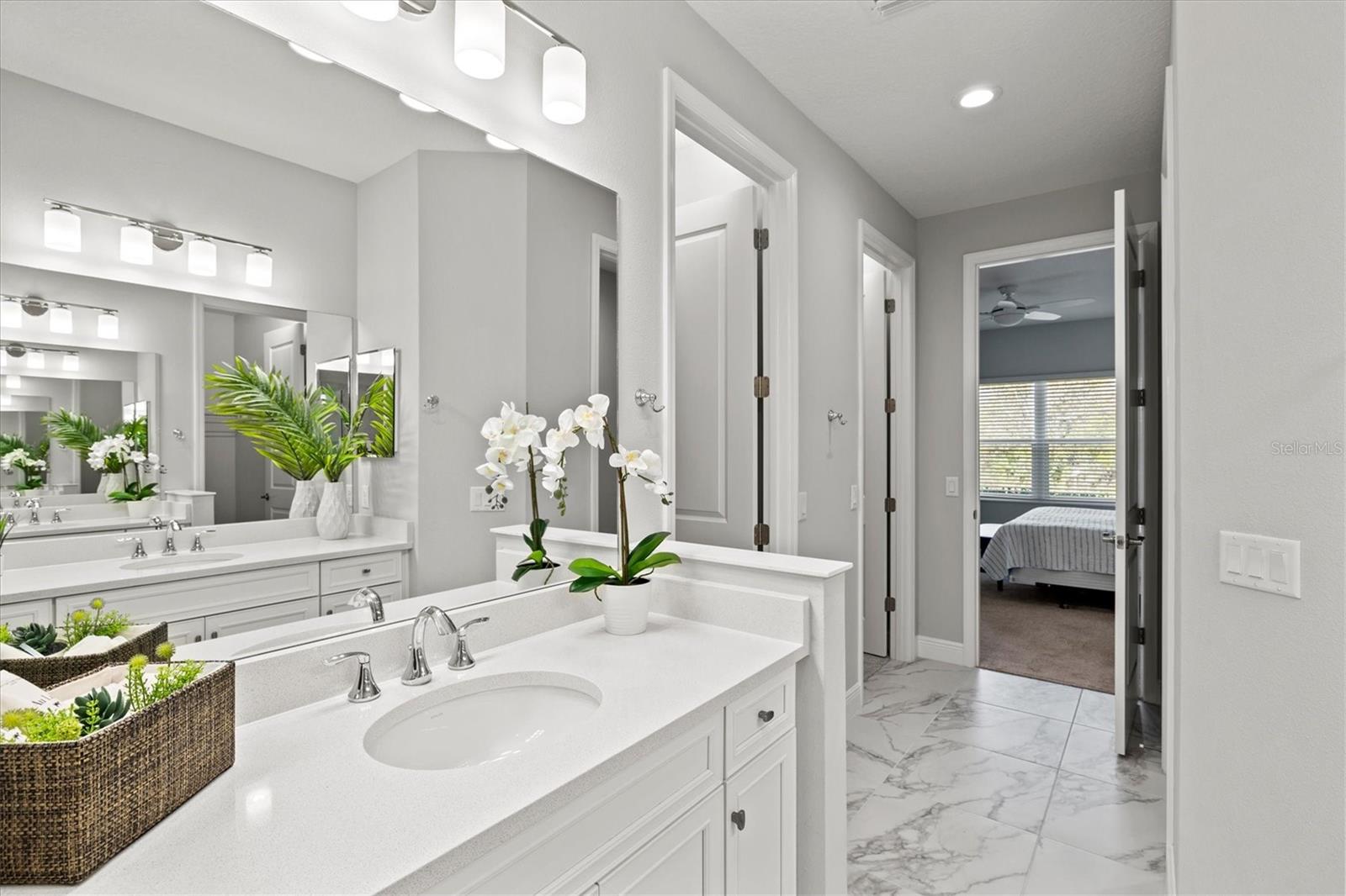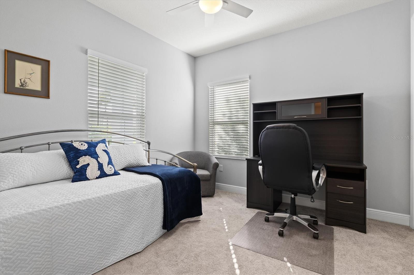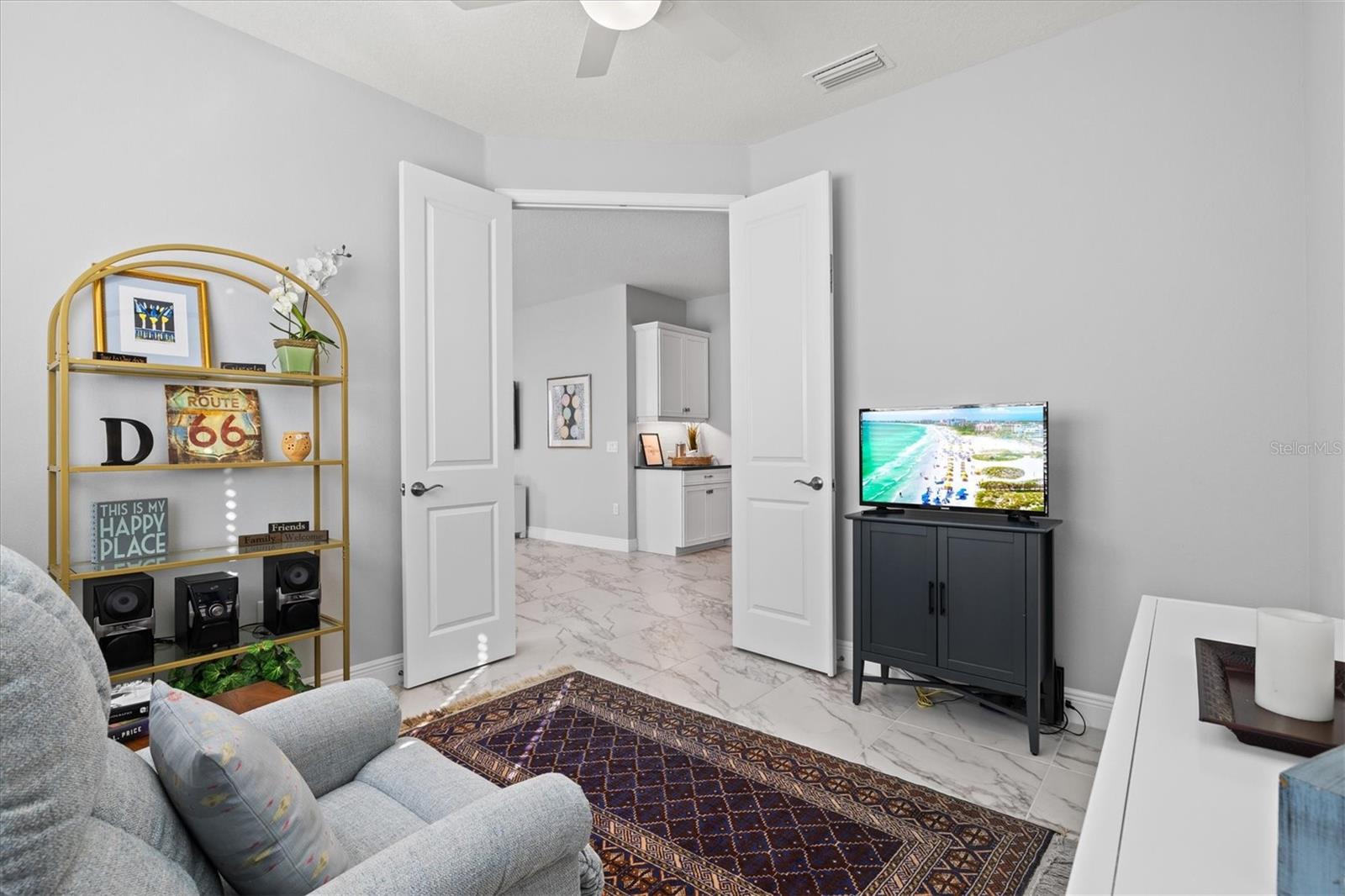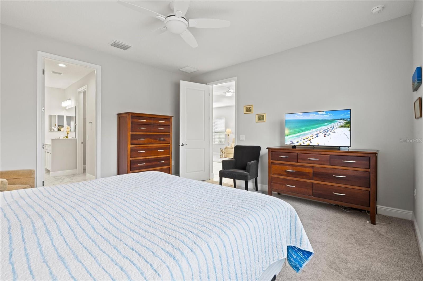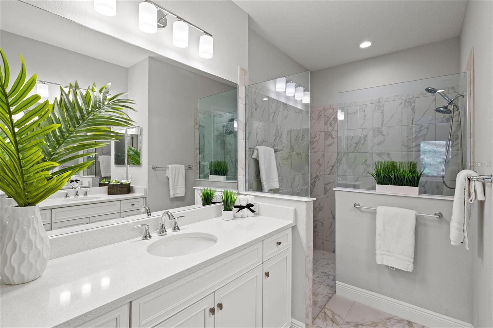 Retreat to the primary suite, a luxurious haven offering his-and-her walk-in closets, dual vanities, and a spa-like walk-in shower. Two additional bedrooms provide comfortable accommodations for guests or family, while the flexible den space can be used as a home office, media room, or additional sleeping area.