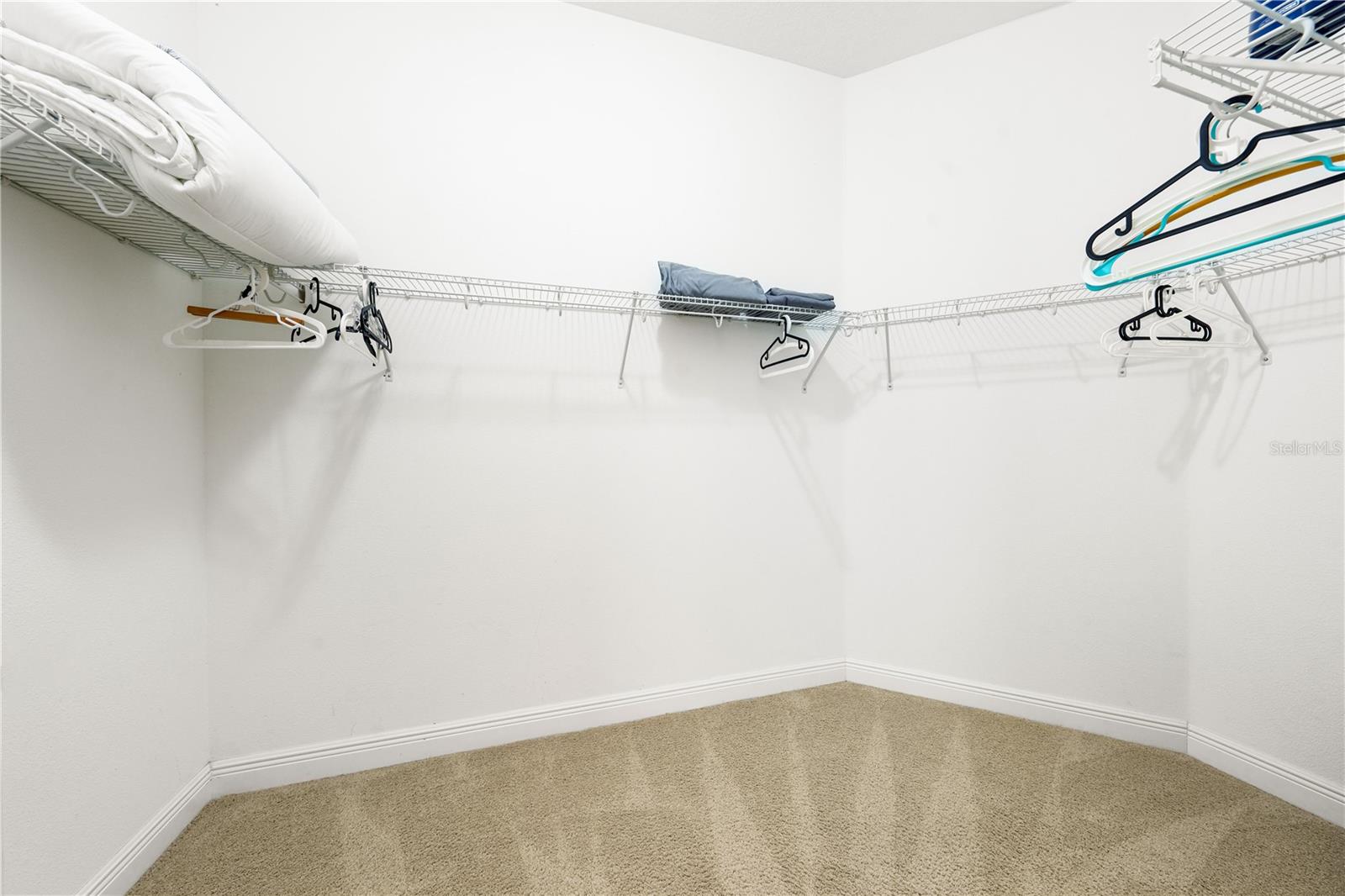 • On the main level, you’ll find the primary suite with a walk-in closet and ensuite bathroom featuring a walk-in shower and soaking tub, as well as a guest bedroom with a private full bath.