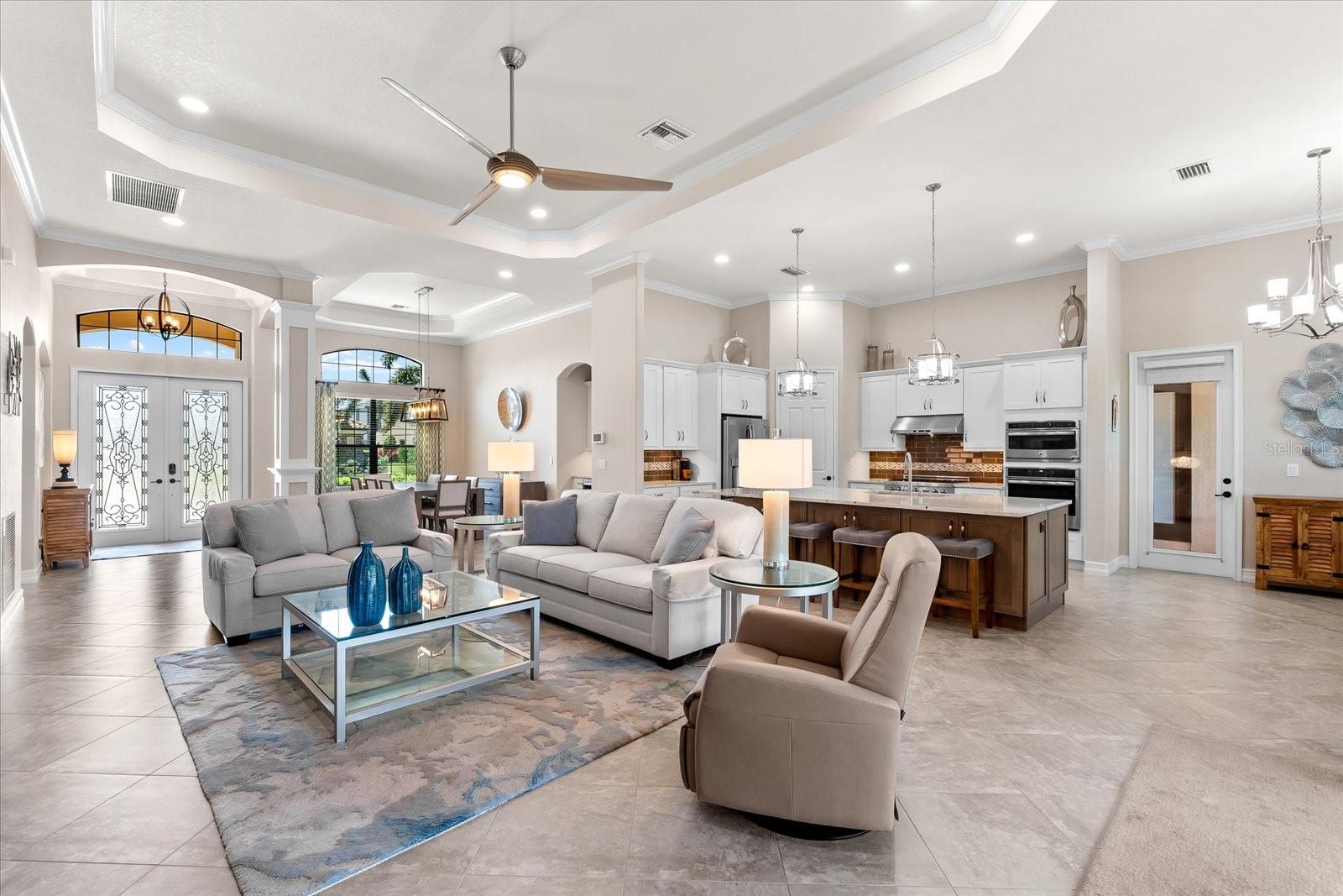 Welcome to this exceptional Bougainvillea model—the largest single-story model available in Lakewood National Golf and Country Club. Boasting 2,799 sq. ft. of luxurious living space and soaring 16 ft. ceilings, this home is thoughtfully designed for both comfort and entertaining.