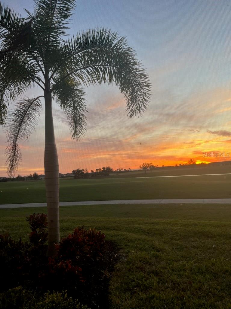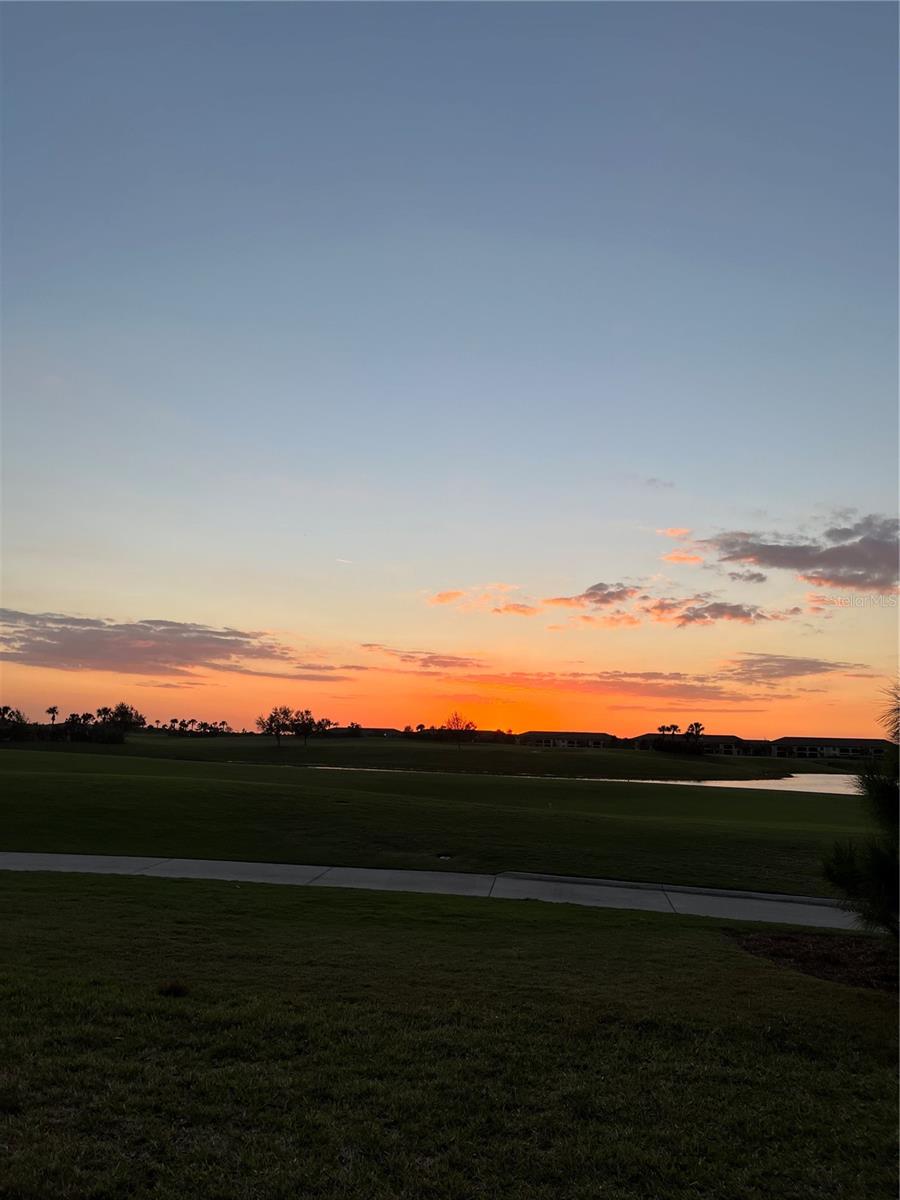 Step inside to find a spacious open floor plan with upgraded title flooring throughout the whole unit, quartz counter tops, light finishes in the kitchen, beautiful backsplash, and breathtaking west-facing views where you can unwind and take in Florida’s stunning sunsets. The kitchen boasts sleek cabinetry, stainless steel appliances, and ample counter space, perfect for entertaining or everyday living. When sitting in the office area you can enjoy the open feeling with a view of open space, palm tree and the golf course! This is an END unit with NO additional building next to you!