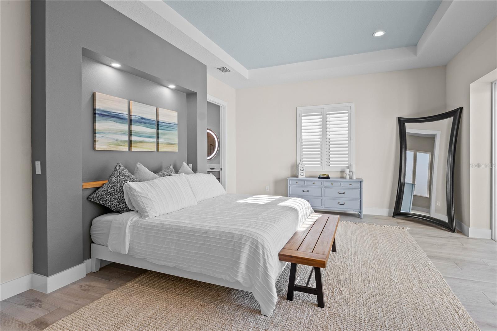 The home’s split design offers privacy, with a second ensuite on the opposite side and a versatile third bedroom or bonus room just off the primary suite—ideal as a guest room, office, or kids’ playroom. Both bedrooms have been modified to be the same size for maximum flexibility. For all your beach toys, car, and golf cart, enjoy the oversized garage—4 feet longer than standard, with alley access.