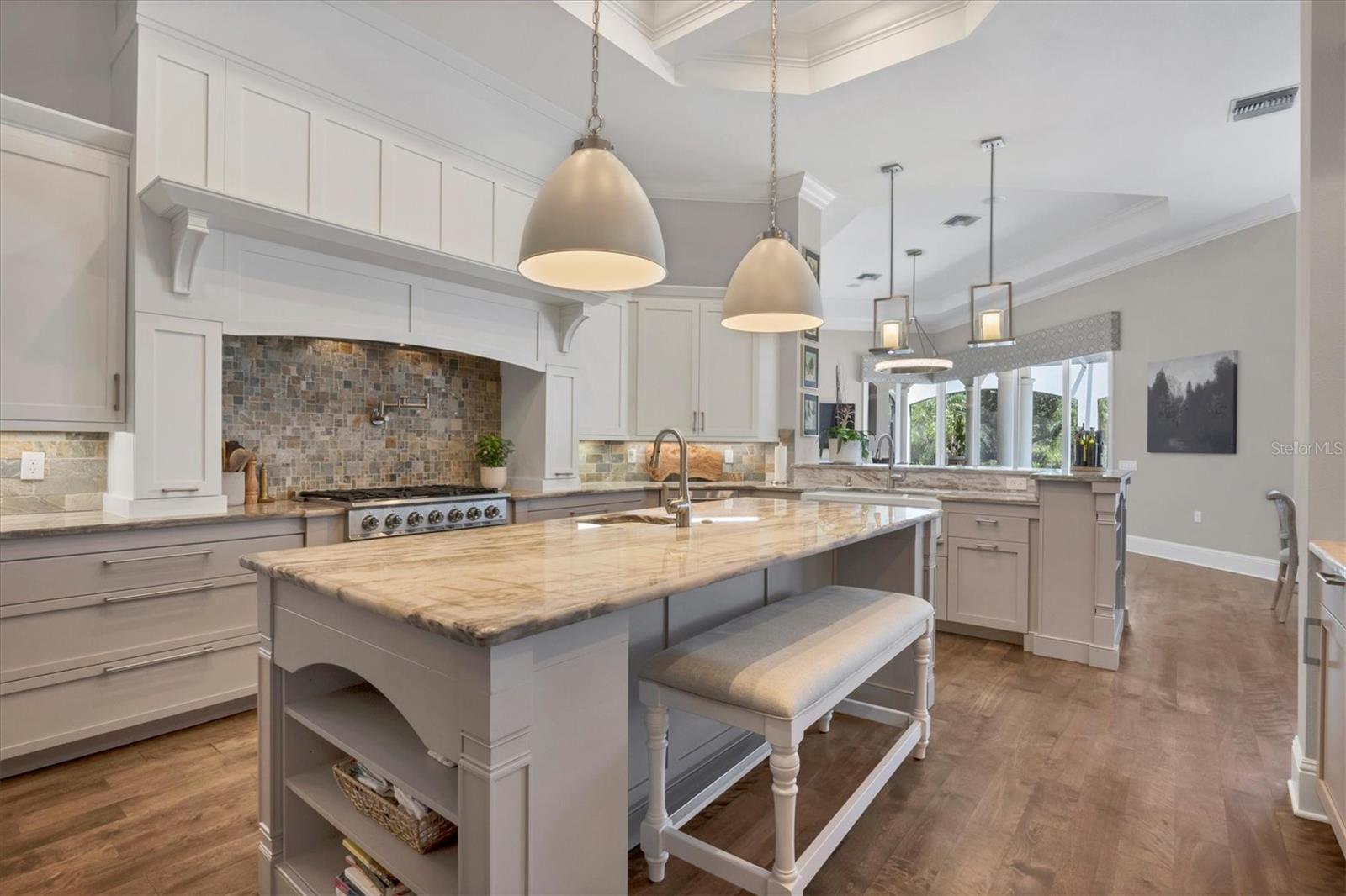 Welcome to 8009 Bounty Lane. A masterfully designed estate offering 4,484 square feet of refined living space, ideally positioned in one of Bradenton’s prestigious gated communities. This three-bedroom, 3.5-bath residence embodies a seamless blend of elegance, comfort and modern function, enhanced by a private pool, whole-house generator, and carefully selected upgrades throughout. From the moment you step through the grand entryway, soaring ceilings and expansive living areas set the tone for timeless sophistication. Architectural details and thoughtful finishes add warmth and character, while large windows bathe the home in natural light. The open floor plan encourages effortless flow, making it equally inviting for quiet relaxation or lively gatherings. At the heart of the home lies a chef’s kitchen designed to impress. Outfitted with premium appliances, custom cabinetry, a generous center island, and open sightlines to the main living and dining spaces, this kitchen is ideal for casual meals and upscale entertaining. The expansive primary suite serves as a private retreat, complete with a sitting area, spa-inspired bath, oversized walk-in shower, soaking tub, dual vanities, and a custom-designed walk-in closet. Two additional guest suites—each with its private bath—provide unmatched comfort and privacy for family and friends. Outdoor living is elevated to new heights with a spacious screened lanai, sparkling pool, and multiple lounging and dining areas. A fully fenced portion of the yard offers a secure haven for pets, while the whole-house generator ensures uninterrupted comfort year-round. Life at 8009 Bounty Lane extends well beyond the walls of the home. Residents of this sought-after community enjoy resort-style amenities including a beautifully appointed clubhouse, full fitness center, sauna, on-site restaurant, scenic parks, a basketball court, dog park, and a stunning resort-style pool, all within a secure, gated setting. Ideally just minutes from Lakewood Ranch, world-class golf courses, fine dining, boutique shopping, and the sugar-sand beaches of Florida’s Gulf Coast, this residence combines luxury living with everyday convenience. 8009 Bounty Lane is more than a home—it’s a lifestyle. A rare opportunity to own a residence where elegance, privacy and location converge in harmony.