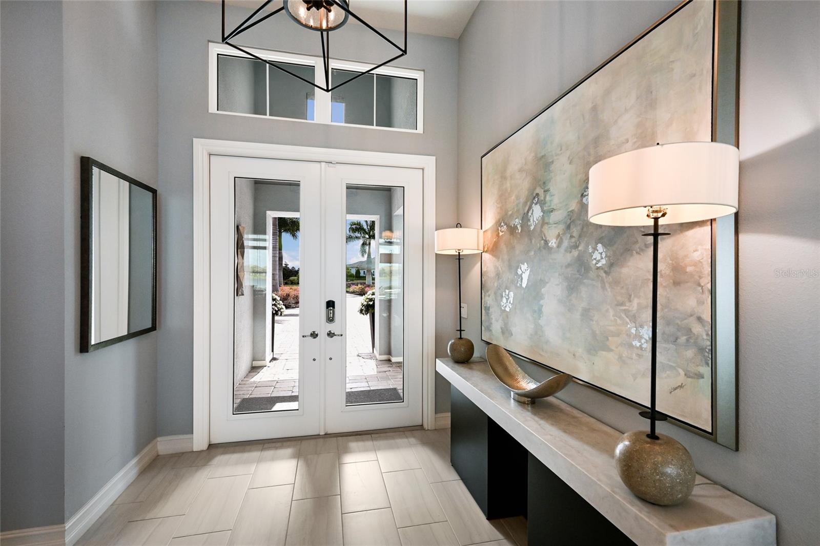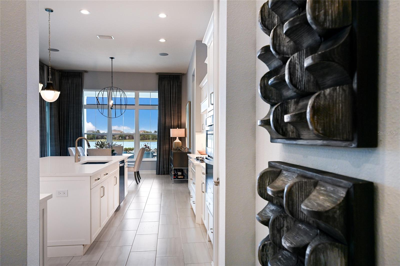 Other notable highlights of this stunning residence includes a brilliantly finished laundry room with cabinetry and sink, tankless water heater, all impact windows and doors, smarthome automation, and an oversized three car air-conditioned garage with epoxy flooring and storage. This rare offering beckons a lifestyle fulfilled in The Lake Club, where residents enjoy access to a wealth of amenities, including two resort-style heated pools, Grande Clubhouse with fine dining and bar area, a fitness center, spa, tennis courts, pickleball, a playground, dog park, and services of a full-time concierge and activities director.