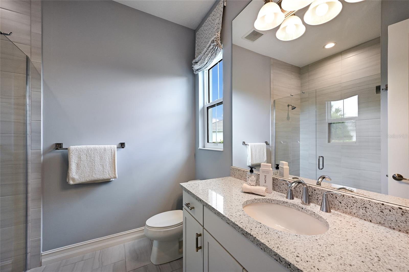 This exceptional property offers a highly sought-after layout in Lakewood Ranch featuring a 3 bedroom, 3 full bath main residence complemented by a fully independent 2 bedroom, 2 full bath private casita, ideal for extended family, guests, or a dedicated work-from-home retreat. Added in 2024, the newly built separate entry living quarters also boasts a living area, a den and its own kitchenette complete with microwave, refrigerator drawers and dishwasher.