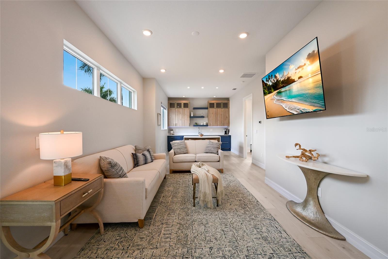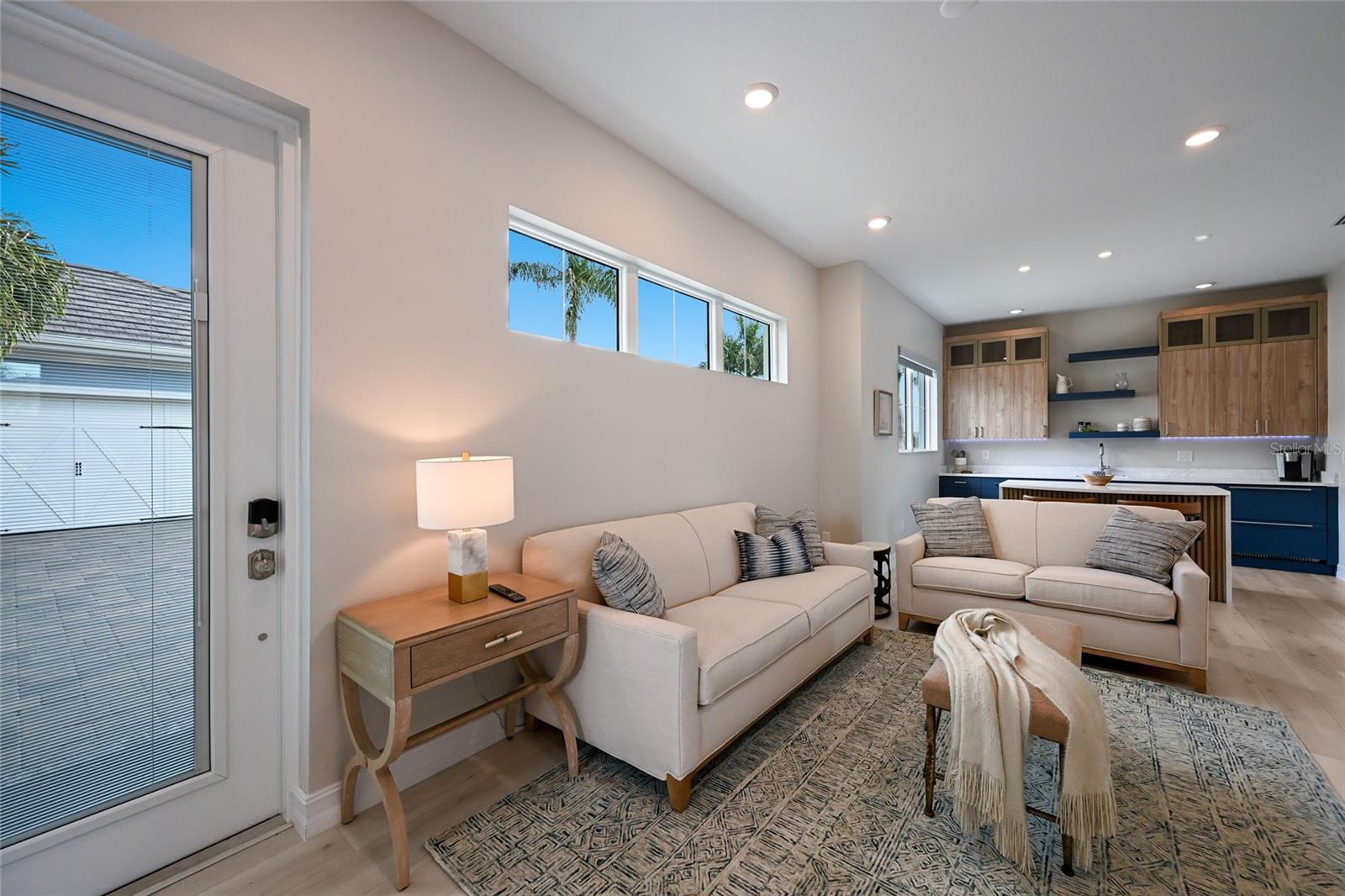 Meanwhile, the main house is a stylishly open one-story great room plan plus a study that epitomizes the indoor-outdoor living experience with thoughtfully planned living spaces, accentuated volume ceilings, skillfully selected finishes, and, of course, all IMPACT windows/doors/sliders.