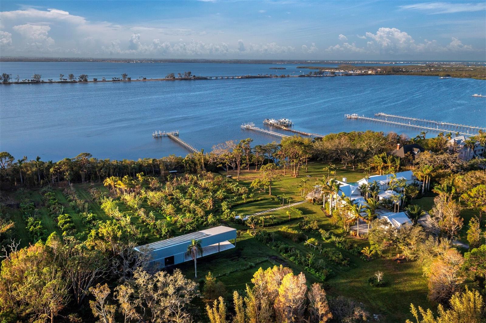 Jubilee Estate: An Extraordinary Waterfront Legacy Property....Nestled on 12.2 acres of pristine, privately gated grounds with an impressive 700 feet of direct frontage on Palma Sola Bay, Jubilee Estate represents a rare opportunity to acquire one of West Florida’s most distinguished waterfront compounds. This singular legacy estate combines expansive living spaces, complete self-sufficiency, and breathtaking water views, all while offering the seamless continuation of operations through an assumable professional management agreement. At the heart of the property stands the magnificent 8,400 square-foot main residence—a masterpiece of contemporary coastal architecture designed by award-winning architect Jerry Sparkman of Sweet Sparkman Architecture & Interiors and meticulously crafted by Ross Built Custom Homes, renowned for their unparalleled quality and bespoke luxury construction. The home features eight luxurious bedroom suites, each with its own private bath, a resort-caliber infinity-edge pool with integrated lounge seating, a gourmet chef’s kitchen with dedicated catering prep area and scullery, and exquisite hand-crafted details including beamed ceilings, bluestone and marble flooring, soapstone and marble surfaces, and custom millwork throughout. The primary suite is an oasis unto itself, complete with a private reading room, expansive dressing salon, and a secluded balcony overlooking the bay and manicured grounds. Complementing the main residence are two elegantly appointed guest cottages, plus a separate three-bedroom 1,900 square-foot caretaker’s residence—providing exceptional flexibility for multi-generational living, distinguished guests, or continued hospitality use. The property comfortably accommodates up to 20 overnight guests in complete privacy and comfort. Boating enthusiasts will appreciate the deep-water dockage equipped with two boat lifts, offering immediate access to the open waters of the Manatee River, Tampa Bay, and the Gulf of Mexico beyond. Currently operating as an acclaimed boutique waterfront inn and sought-after wedding and event venue, Jubilee Estate benefits from an assumable management agreement that allows a new owner to step effortlessly into a turnkey luxury hospitality operation—or to transition the property into a magnificent private family compound or corporate retreat. Properties of this scale, privacy, and refinement—executed by a builder of Ross Built’s caliber—seldom become available. Jubilee Estate is more than a home; it is a private resort, a waterfront sanctuary, and an enduring legacy awaiting its next steward. Inquiries are strictly confidential and by appointment only. This listing includes two separate parcels being sold together: 8413 9th Ave NW, Bradenton, FL 34209 (PID 7331315109), and 8409 9th Ave NW, Bradenton, FL 34209 (PID 7331315159). Combined offering price of $13,995,000 for both properties. Total combined acreage: 12.24 acres. Combined PID numbers: 7331315109 and 7331315159. Properties will not be sold separately.