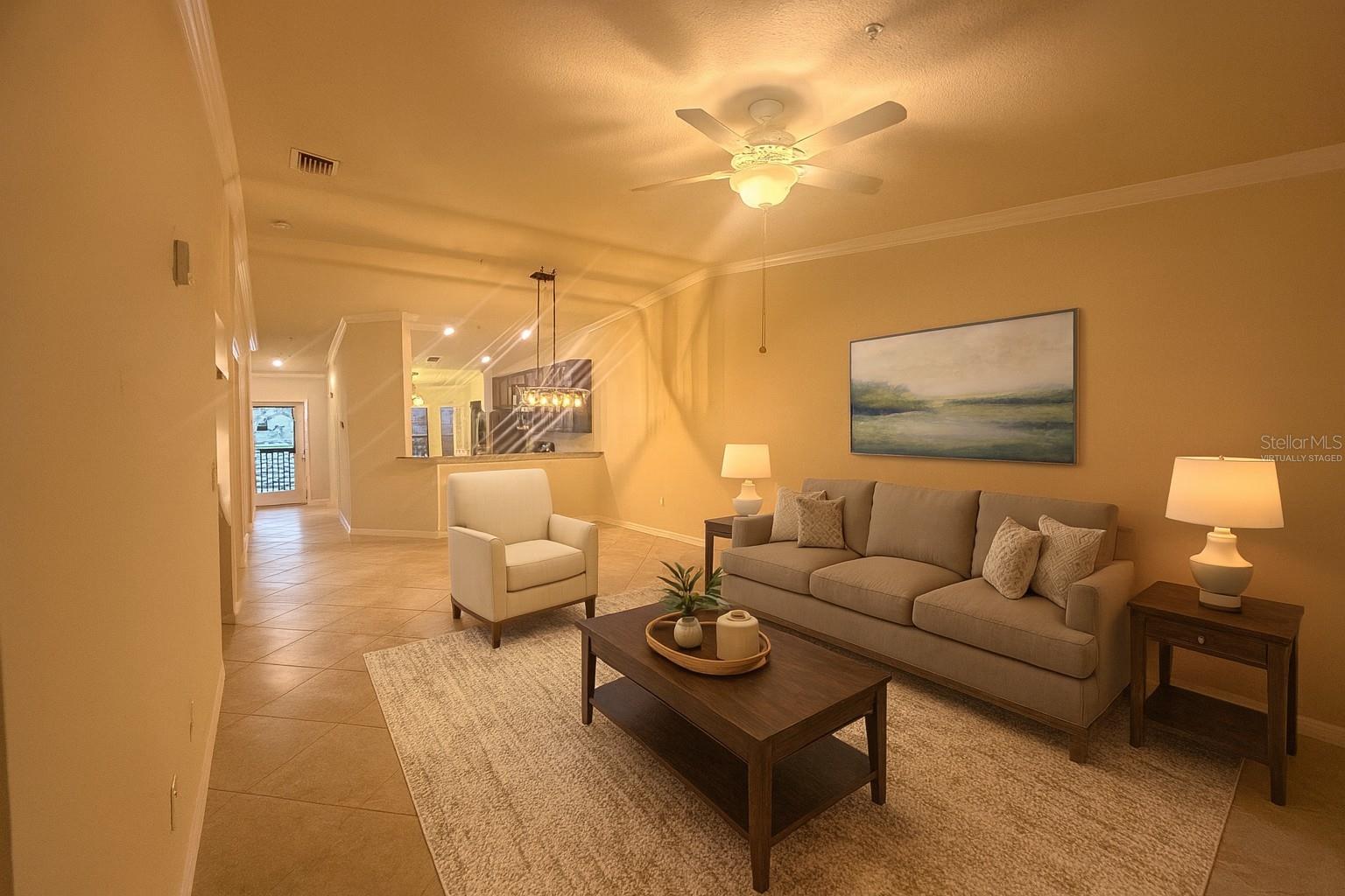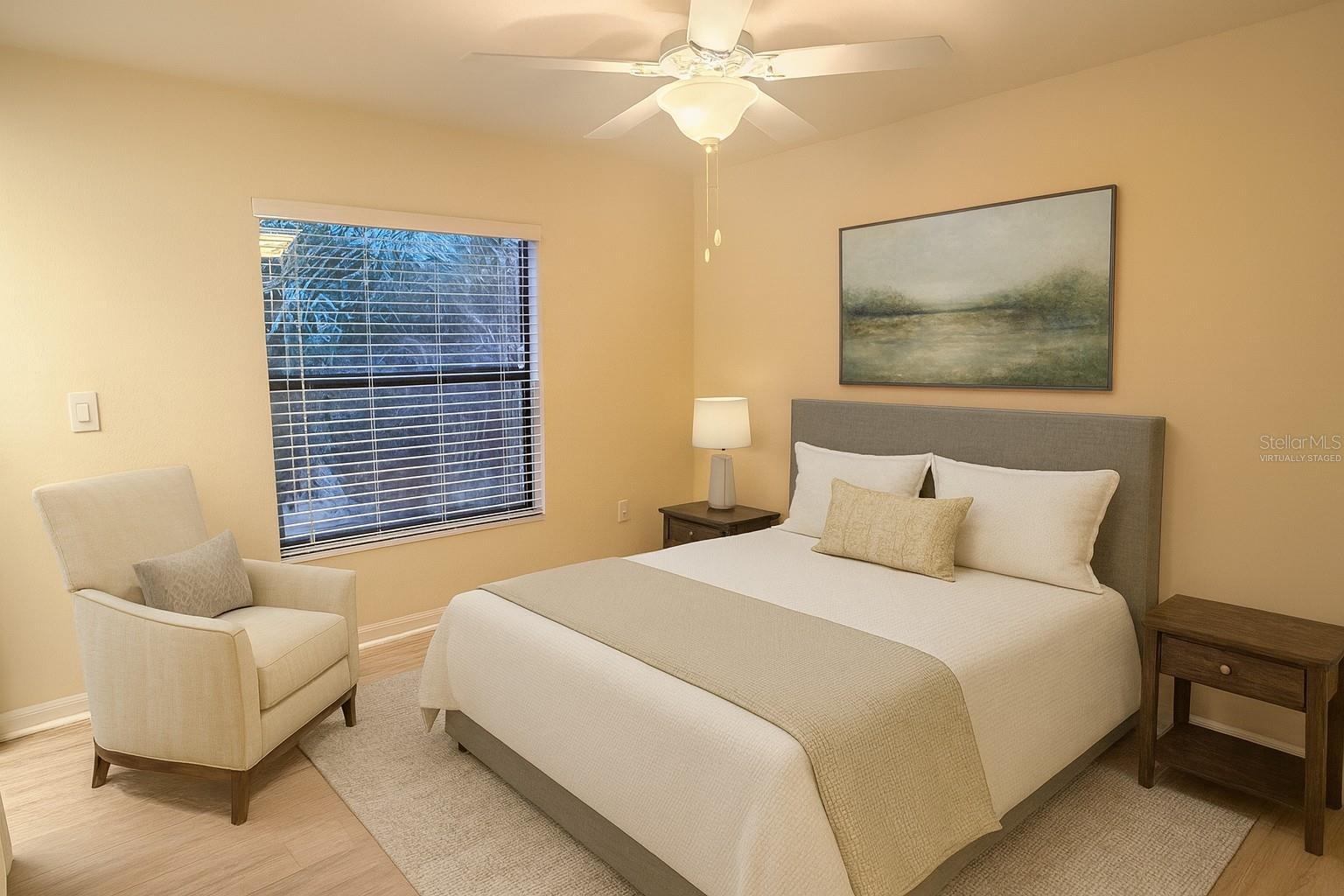 Welcome to luxury living in the heart of Lakewood Ranch! This Arabella floor plan 2-bedroom, 2-bathroom plus den condo in the sought-after Lakewood National Golf Club offers a spacious, open layout, high ceilings with abundant natural light as an end unit. The versatile den can be used as a home office, reading nook, media room, or 3rd bedroom, adding flexibility to the floor plan. The primary suite features two walk-in closets and ensuite bath with soaking tub and walk-shower with frameless glass door while the rear screened lanai provides the perfect place to relax and enjoy tranquil golf views of the 9th fairway of The Commander Course. As a bonus, this becomes the 18th fairway during the Korn Ferry Tour every spring and gives you a prime viewing location. The sought after location of this end unit is walking distance to all the amenities. This home is ideal as a primary residence, seasonal retreat, or investment property. As part of a meticulously planned gated golf community, residents enjoy resort style amenities including 36-Hole Arnold Palmer-Designed Championship Golf, two exceptional courses blending agrarian landscapes and rolling terrain—perfect for golf enthusiasts, Grand Clubhouse and dining, resort-style swimming oasis: A lagoon-style, beach-entry pool complete with waterfalls and grotto; plus a poolside tiki bar and several satellite pools for added convenience. Racquet Sports Hub: Eight lighted Har-Tru tennis courts (including one with automatic ball retrieval), four pickleball courts, and two Har-Tru bocce courts. State-of-the-Art Fitness Center: Open 24/7 via member ID access, staffed by a Fitness Director and a TPI-certified personal trainer, plus group fitness classes available, full-service spa, gated community with 24-hour security, fully maintained lawns, and a professionally managed homeowners association ensures peace of mind and pristine surroundings. Close to top-rated schools, shopping, dining, I-75, beaches, and cultural attractions, you’re in the heart of convenience.