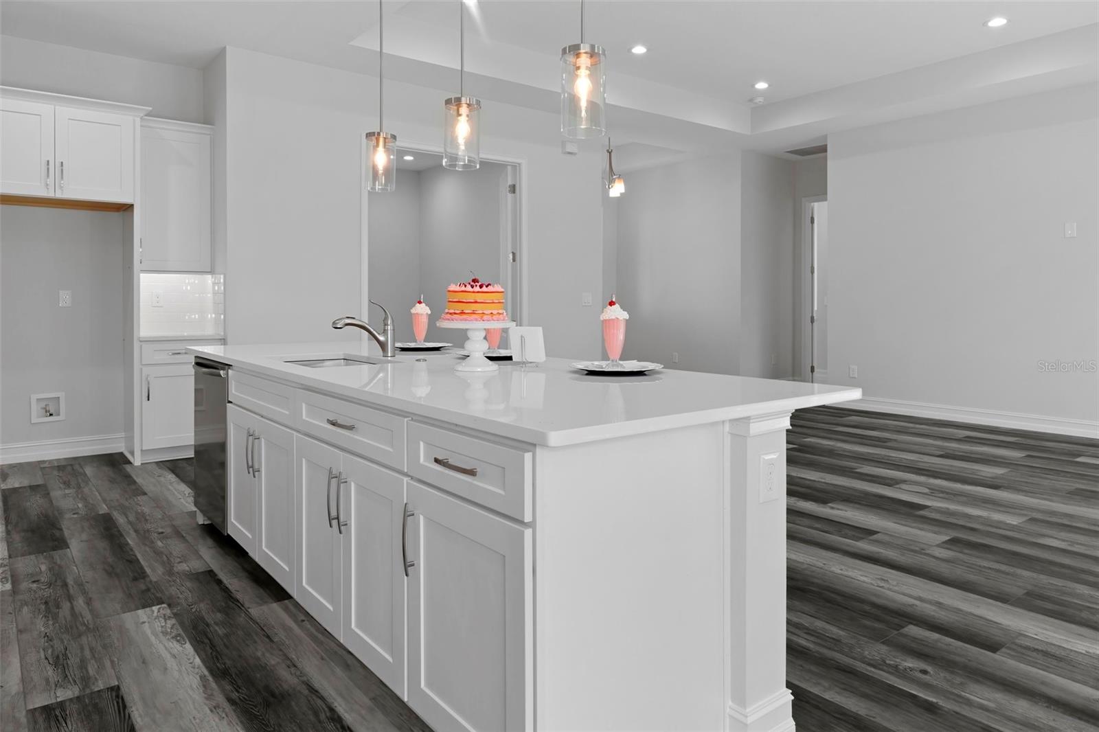 One or more photo(s) has been virtually staged. Under Construction. This stunning and luxurious model home, built by Spire Homes, a semi-custom builder, abounds with beautiful interior appointments and includes the washer, dryer, refrigerator, plantation shutters throughout, and all decor and furnishings!! It is located in the premier golf course and lifestyle community of Southern Hills Plantation, in the Estates neighborhood. The lovely front exterior entry creates a warm and welcoming ambiance. Starting at the entry foyer, you will walk into a fabulous open, airy, spacious floor plan. This home features a gourmet chef's delight kitchen with a large island opening to the great room, allowing for easy conversation and entertaining. The soft-close cabinetry throughout this beautiful home includes high-end quartz countertops, subway tile backsplash, and under-mount lighting. You'll also love the 5-burner gas cooktop, gas tankless water heater, and the pre-plumbing, giving you the choice of gas or electric dryer. A huge walk-through butler's pantry and an en-suite guest bed/bath offer fabulous uniqueness to this home. You will love the 8-foot doors and 5 1/4'' baseboards throughout! The owner's suite and bath are awe-inspiring. LVP flooring comes with a Lifetime residential warranty for further peace of mind in all main living areas. The expansive 35' extended lanai offers Florida outdoor living at its best. The lanai also offers a pre-plumbed gas drop for the further enjoyment of outdoor living and entertainment—total serenity.
