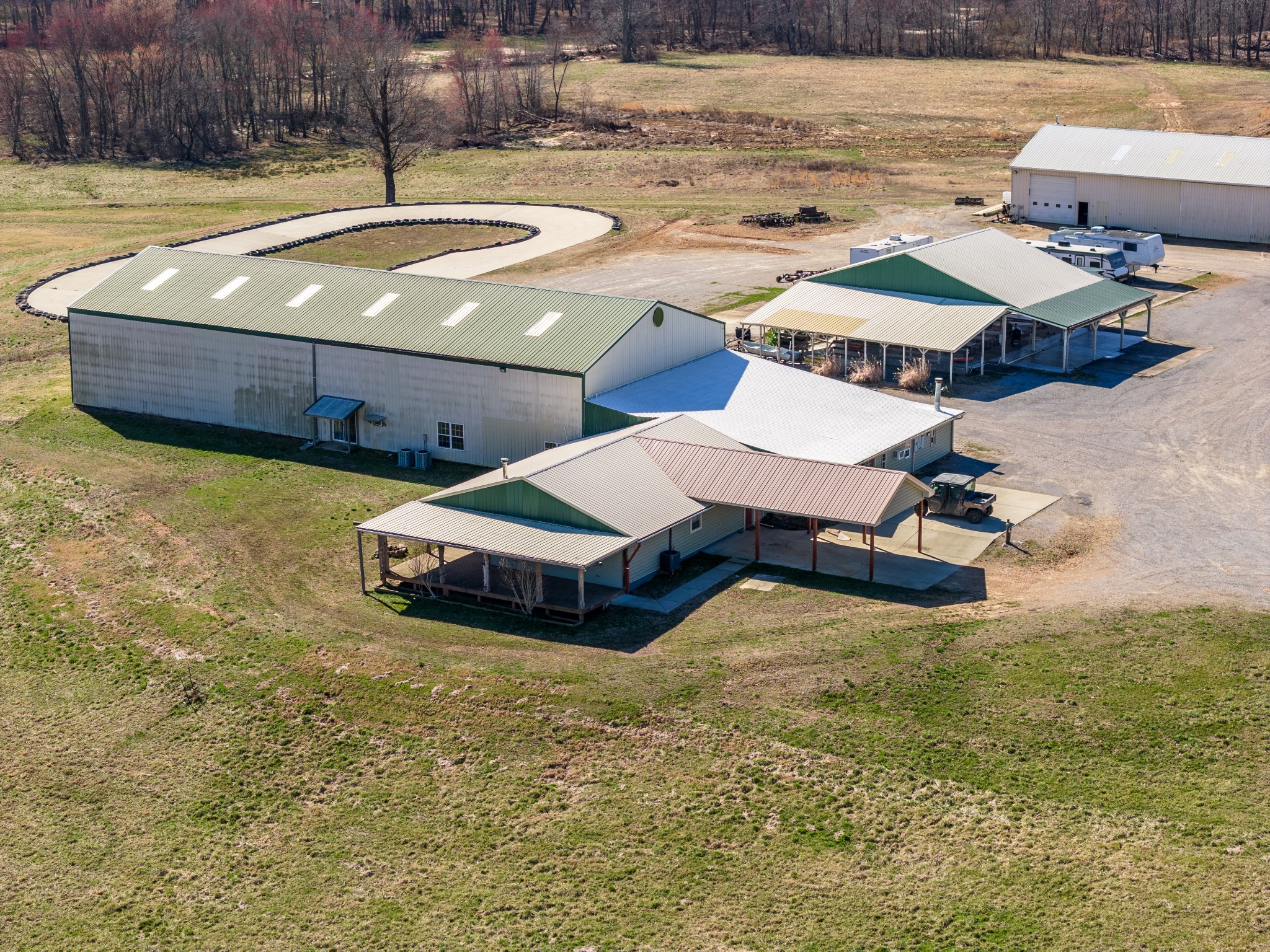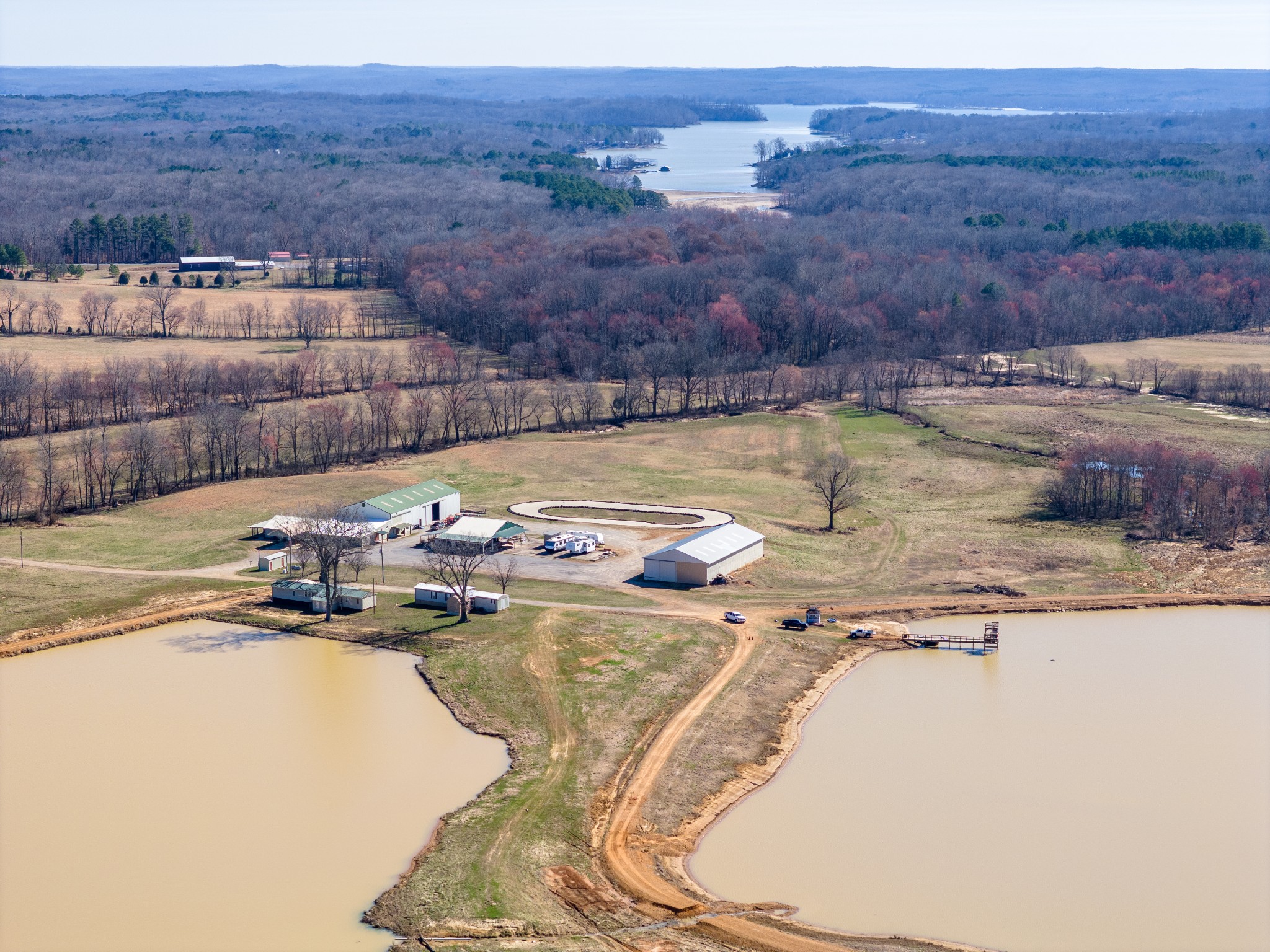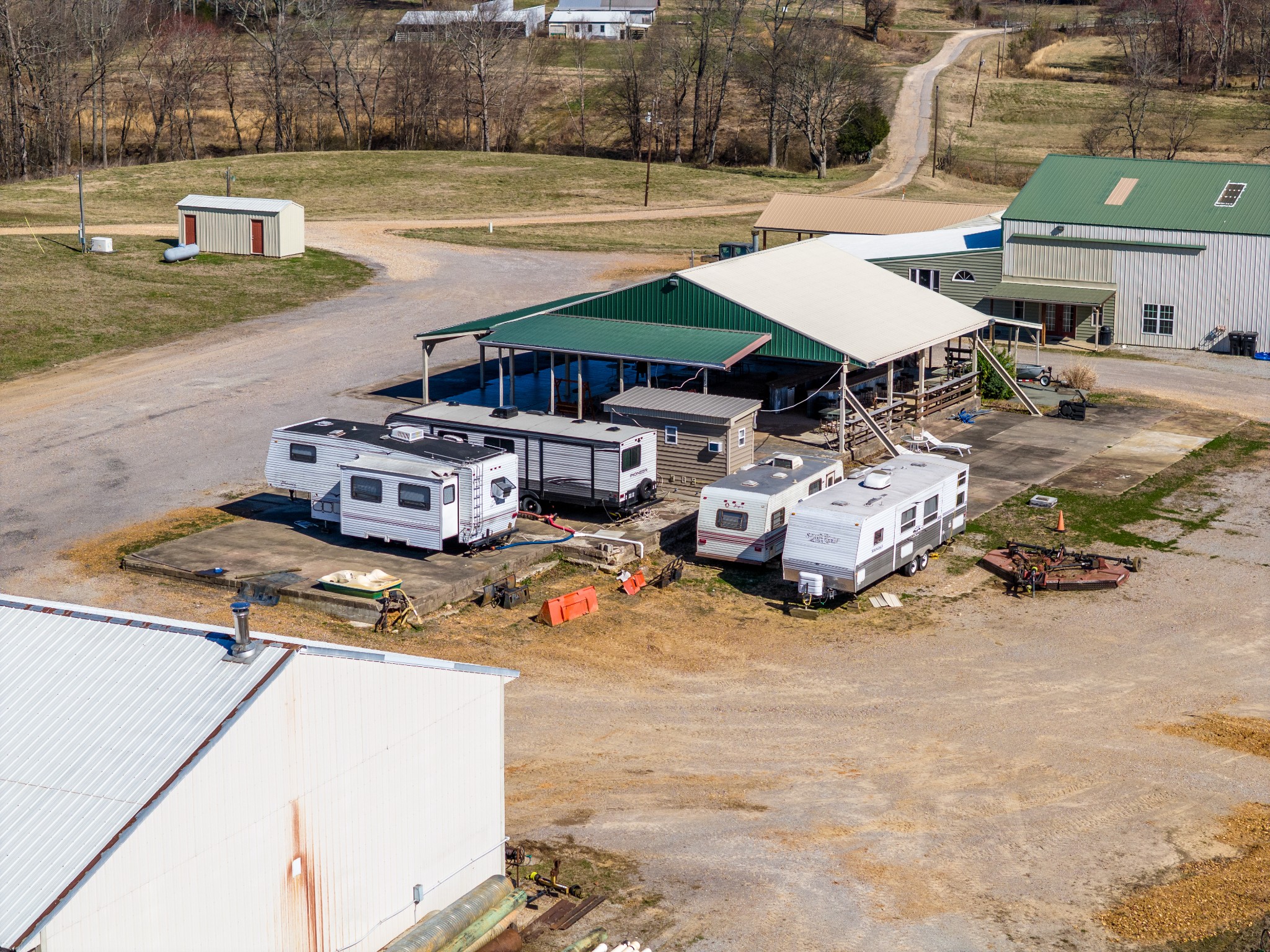 Approx 610 Ac of Blissful Ranch Living & Entertaining!! Unlimited Building spots with views of KY Lake in the distance from the higher elevations. Currently, there are two 3 bedroom mobile homes & a 1 bedroom apartment attached to the Event Center, which was a restaurant at one time, still featuring a Chefs Kitchen, Dining Hall, Bathrooms & Gameroom! Outside there is an XL Pavillion with more tables & a bar + 2 Add'l Bathrooms Overlooking a Small Racetrack & Gorgeous Rolling Farmland! By the 2 mobile Homes are 2 ponds, each 8-9 acres. Jetski's anyone? Approx 10 miles of Trails for Off Road Vehicles. Much of the land is fenced around the perimeter with multiple gates. There are multiple wells, septic tanks, generator, etc. Two Very Large Shops are there for any storage or mechanical needs you have as well as 6 RV Hook-ups. There is another set of farm buildings nearby for cattle or horses. Too much to list!
