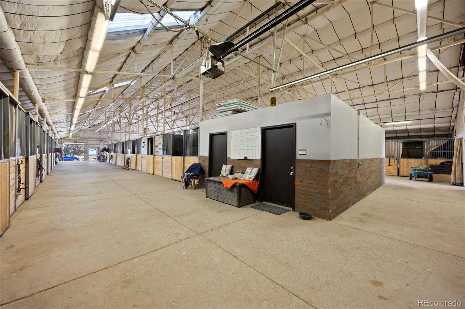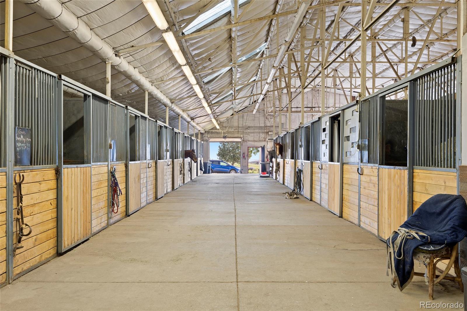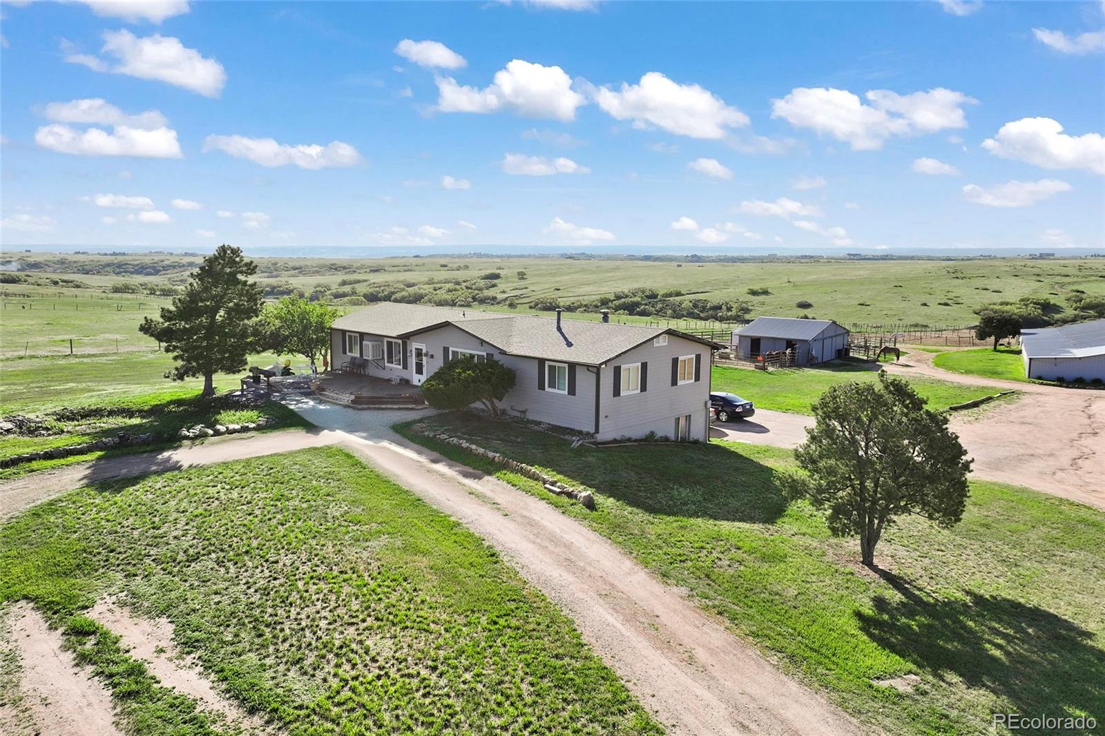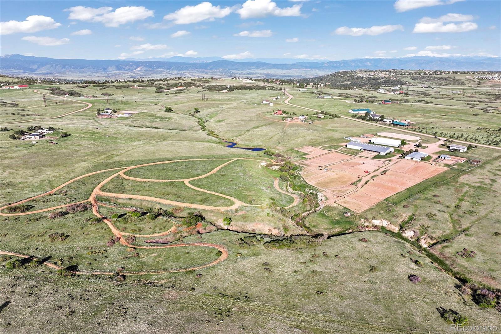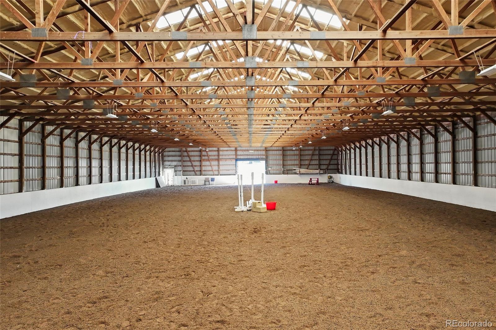 Location!! Offering Sky View Farms,legal operating Equestrian facility in Douglas County, special use permit for 50 plus horses, commercial well and water rights.This peaceful oasis is convenient to Castle Pines and also allows easy access to Denver Tech Center. It sits east of of 1-25 and directly south of the newly developed Canyons.Close to Castle Rock downtown,,every amenity is at your fingertips.The properties private gated entry accesses a thriving 50 stall occupied equestrian training business of competitive horses along side a 5013c with room for retirement horses or brood mares and ample turnout ,good footing in both, indoor and outdoor arenas ,a large round pen and plenty of trails. Dirt roads through the community allow for trail riding as well. The main show barn boasts 29 large stalls, a Heated Office and Lounge (Class Room) 1 large tack room plus 2 small converted additional tack rooms.It also has Heated water in the wash bay and 3 grooming stalls.The lower barn has 17 Retirement or breeding oversized stalls a heated lounge , tack and feed room.A 5013c leases a 4 stall small barn on the property and will happily continue to lease. There are 38 individual paddocks and 1 large pasture all fenced with white lightening fencing to keep your horses safe..The pastures are frequented by elk .Train year round in this large heavily Insulated indoor arena with led lights with more than enough room to jump a course. The indoor has a lovely separate office with a patio.The large oudoor arena has views and great natural footing that drains quickly. The round pen is a nice size for longe lining or lunging horses. A euroxciser could also easily be placed there.There is a 3bd 2 ba Modular home for support staff creates a place for full time help to reside on site.It could be replaced with your dream home. The full walk out basement gives options for staff or boarders. The possibilities of your own venue, 5013c or training business allow you to create your lifestyle!