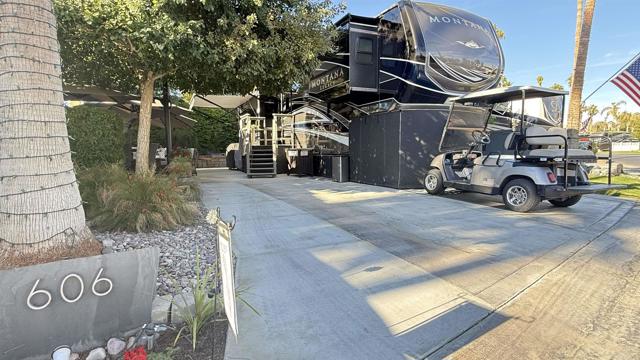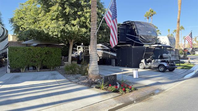 Lot 606, PRICE IS FOR LOT ONLY (please inquire for package pricing). Rarely available extra-wide lot with additional full-sized parking space! Located along the west wall and loaded to the brim with upgrades, this Lot/RV package offers a great combination of outdoor entertaining and luxury RV living. Entertaining is a breeze with multiple patios options complete with 5 piece seating and fire pit table, 3 anchored umbrellas, water fountain, plus a few other perks: buffet cart, deck boxes and a pet relief area. Custom staircase leads to a gorgeous 2021 40 Montana Legacy Four Seasons that is sure to overload your senses! Spacious kitchen with stainless steel appliances (including a full-size residential refrigerator), maple cabinetry and large center island. Living Room features two leather couches for ample seating, new 50 flatscreen, built-in desk area. Additional features include a King-size Sleep Number Bed, THREE air conditioners, new exterior awnings, TWO 150 watt solar panels, Sunbrella doghouse and side skirts, and stacked washer/dryer. Outdoor Resort Palm Springs (ORPS) is a Guard Gated 5-Star RV Resort Community offering an active and luxurious lifestyle featuring golf (27 holes), tennis, pickleball, swimming and more! Two clubhouses, fitness center, beauty solan, La Roma Restaurant on campus, dog park and more!