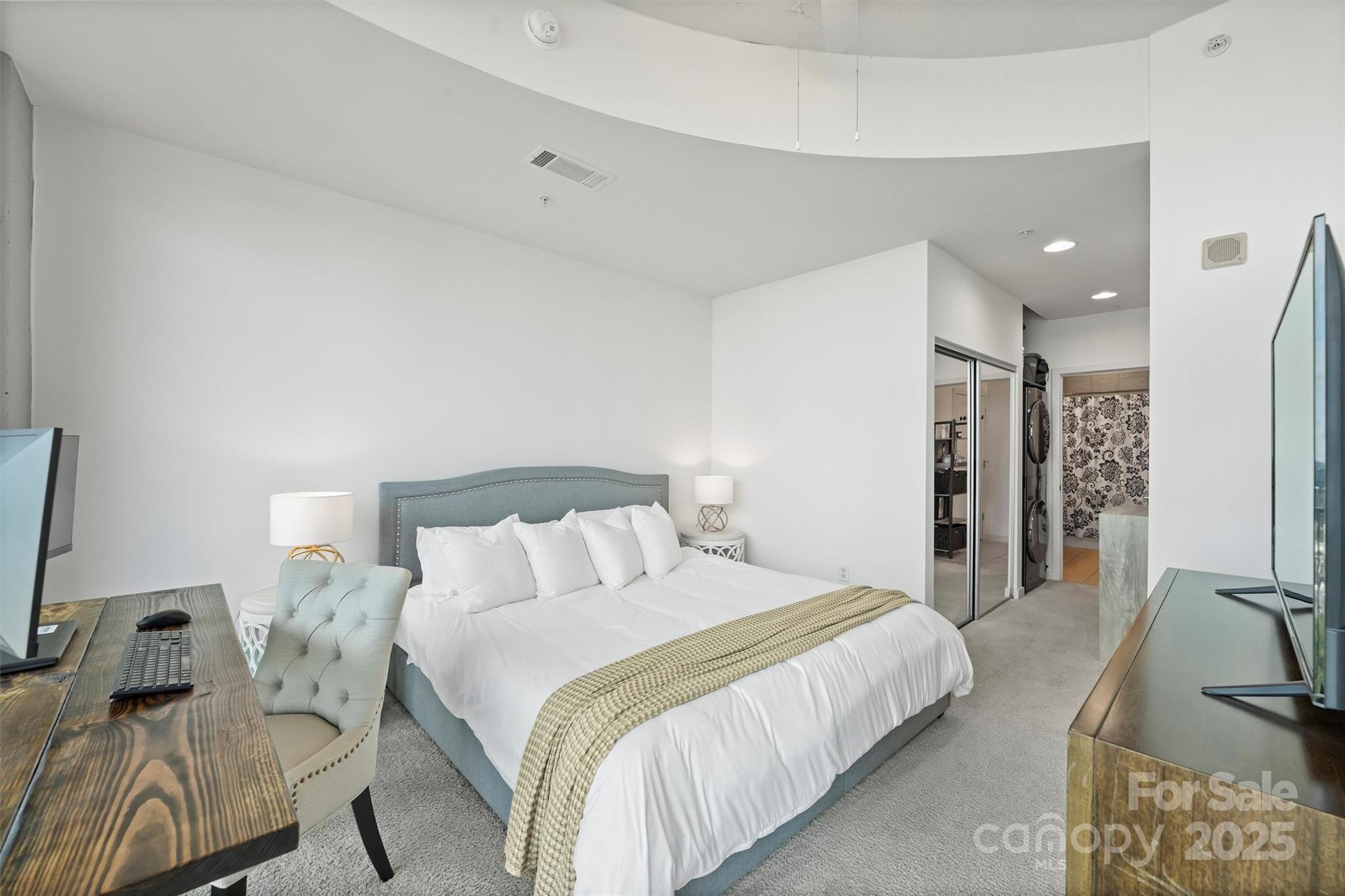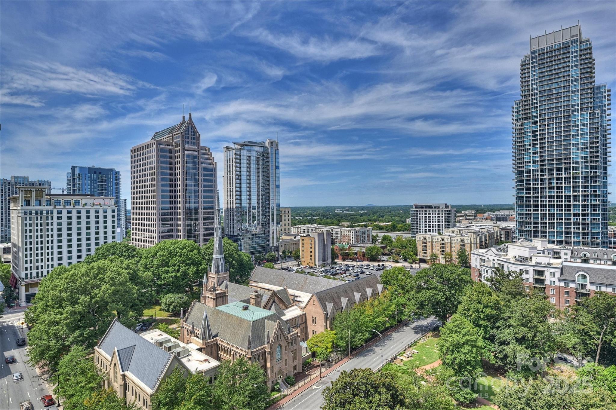 Welcome to elevated city living in this high-rise, luxury condo in the heart of Uptown Charlotte. This modern 1-bedroom, 1-bathroom residence spans 776 square feet with an open floorplan and floor-to-ceiling windows offering panoramic views of the Charlotte city skyline. Step inside to find beautiful hardwood floors and a sleek kitchen with granite countertops and stainless steel appliances. This unit offers a private balcony, dedicated storage unit, and deeded parking space within the secure/gated community entrance. Residence of this premier residential building enjoy luxurious amenities, including 24/7 Concierge Service, a heated rooftop pool, state-of-the-art fitness center, sky lounge with indoor/outdoor entertaining space, and a business center for professional needs. Enjoy the ease of 24-hour package retrieval featuring Amazon Lockers. Savor city life only steps away from dining, nightlife, sporting events, live music venues, shopping and more!