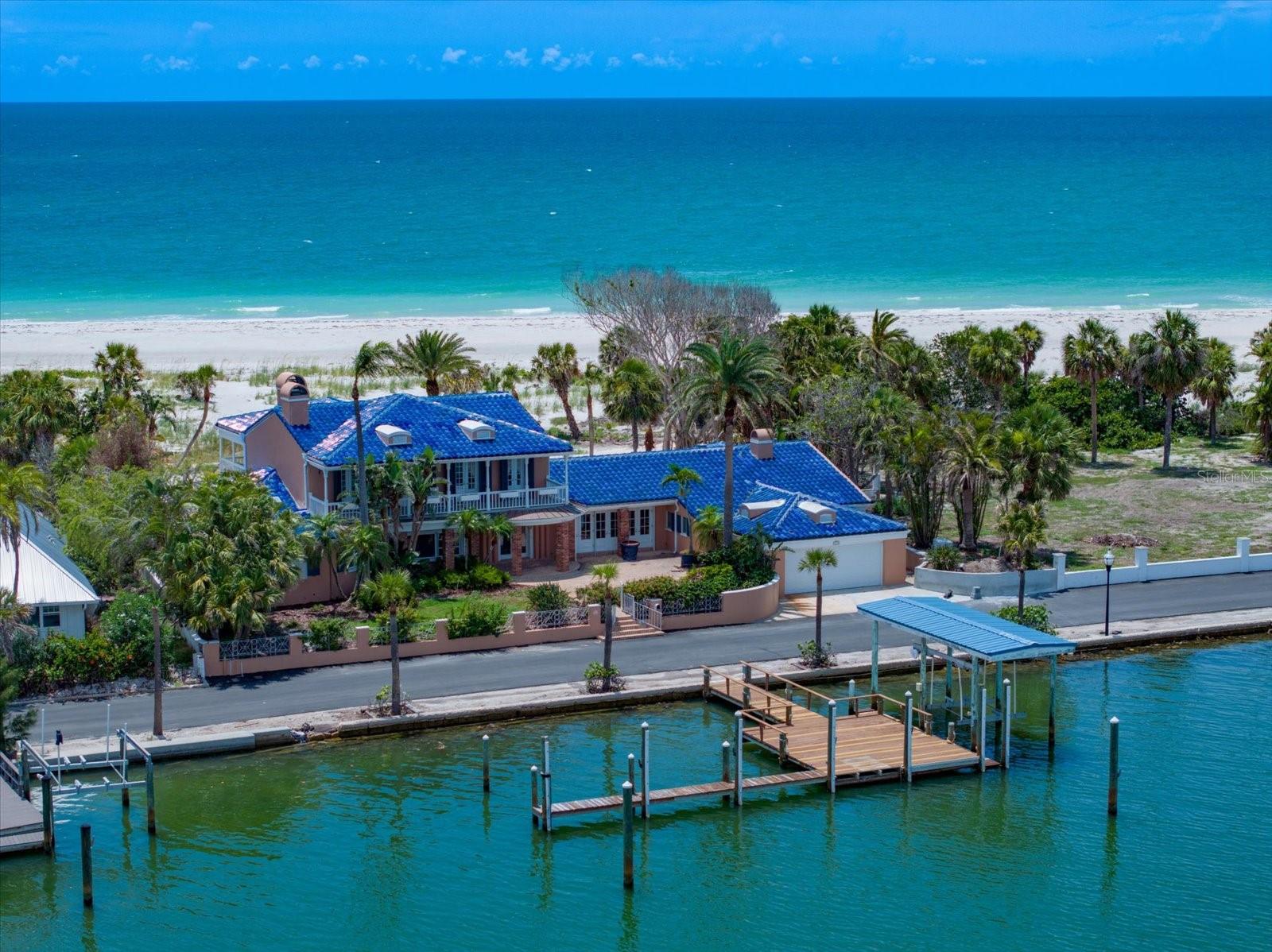 Nestled in the coveted, gated 11-home community at the north end of Clearwater Beach, 1114 Mandalay Point offers a truly rare chance to own one of the most extraordinary waterfront properties on Florida's Gulf Coast. Spanning over an acre, this estate delivers full Gulf-to-Bay frontage - 140 feet on the beach side and 137 feet on the bay side - providing unmatched panoramic views of both sunrise and sunset. Stroll down the private road for dinner at the Carlouel Beach & Yacht Club - or go by boat. This property is a boater's dream, offering 8-10 feet of protected deep-water dockage and a covered boat slip with quick access to the Intracoastal Waterway and Gulf of Mexico. Dockage will accommodate a 70 + foot yacht.