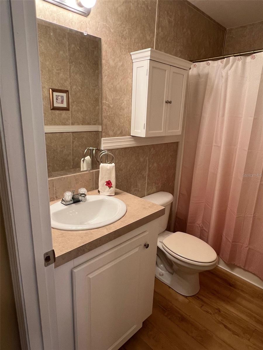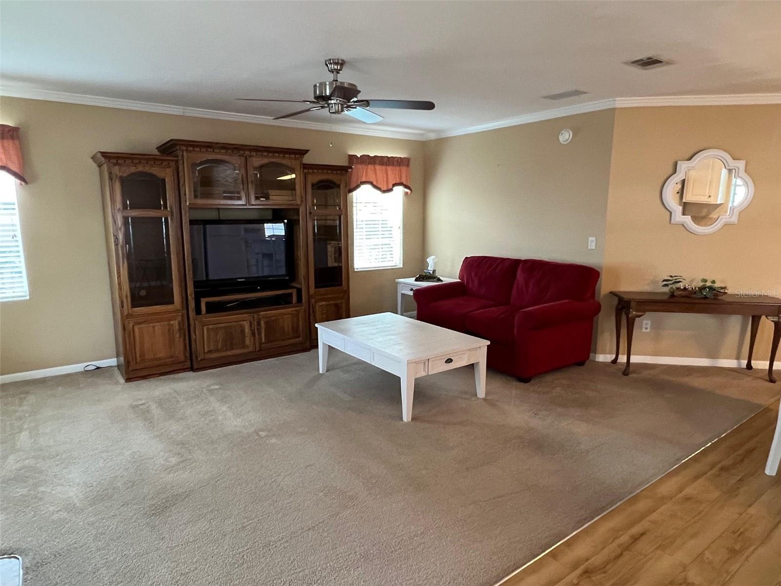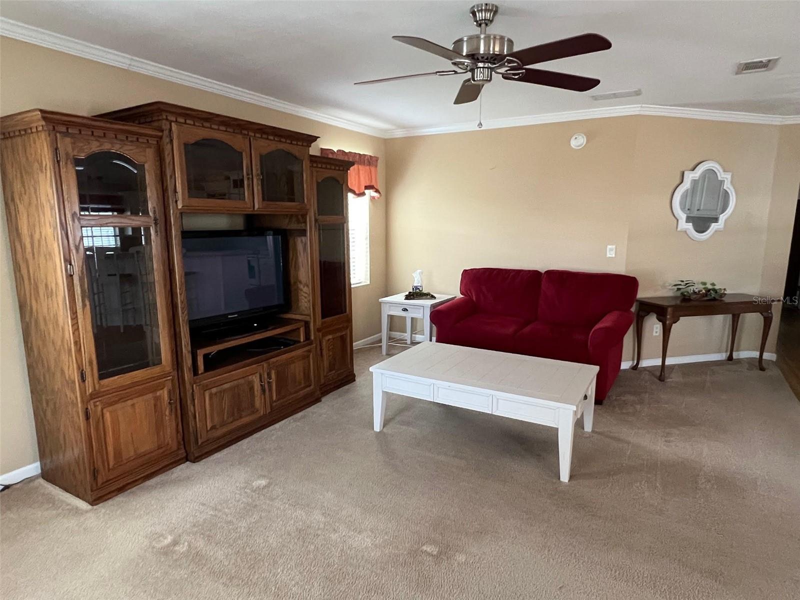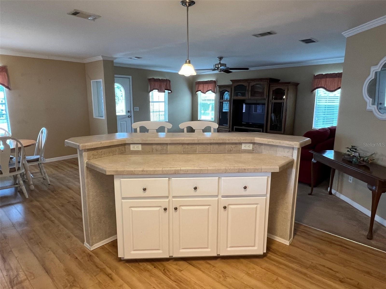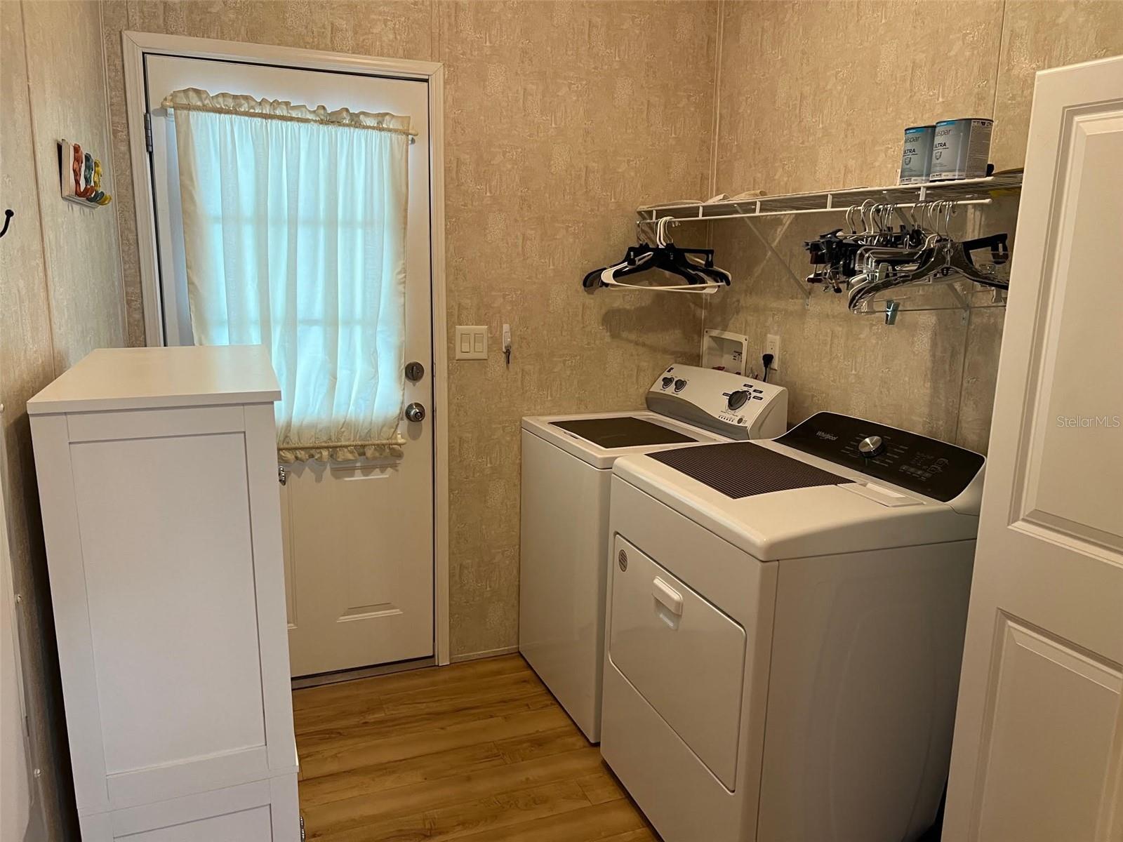 From the moment you arrive, this spacious layout invites you into a fully furnished home where comfort meets functionality in an open floor plan. A blend of laminate, carpet, and vinyl flooring flows throughout, complemented by elegant six-panel doors, ceiling fans, and the comfort of central heat and air conditioning (2018). The bright, cheerful kitchen features a central island with stools for quick bites, abundant cabinetry, and modern appliances—including a fridge, range, oven, dishwasher, and microwave—seamlessly opening to a dining area that's roomy enough to host gatherings. The pleasant living room offers a relaxing atmosphere, while the generous primary bedroom features a wall-to-wall closet and an ensuite with a walk-in shower and make-up vanity. The guest bedroom provides a cozy retreat for friends and family, with an easily accessible bath across the hall showcasing a tub/shower combo. A large indoor laundry room, complete with washer, dryer, shelving, and extra storage, adds the finishing touch to this well-appointed home.