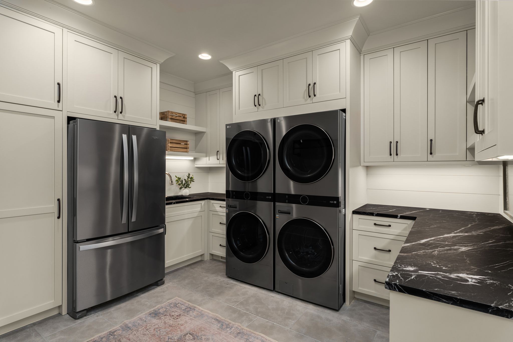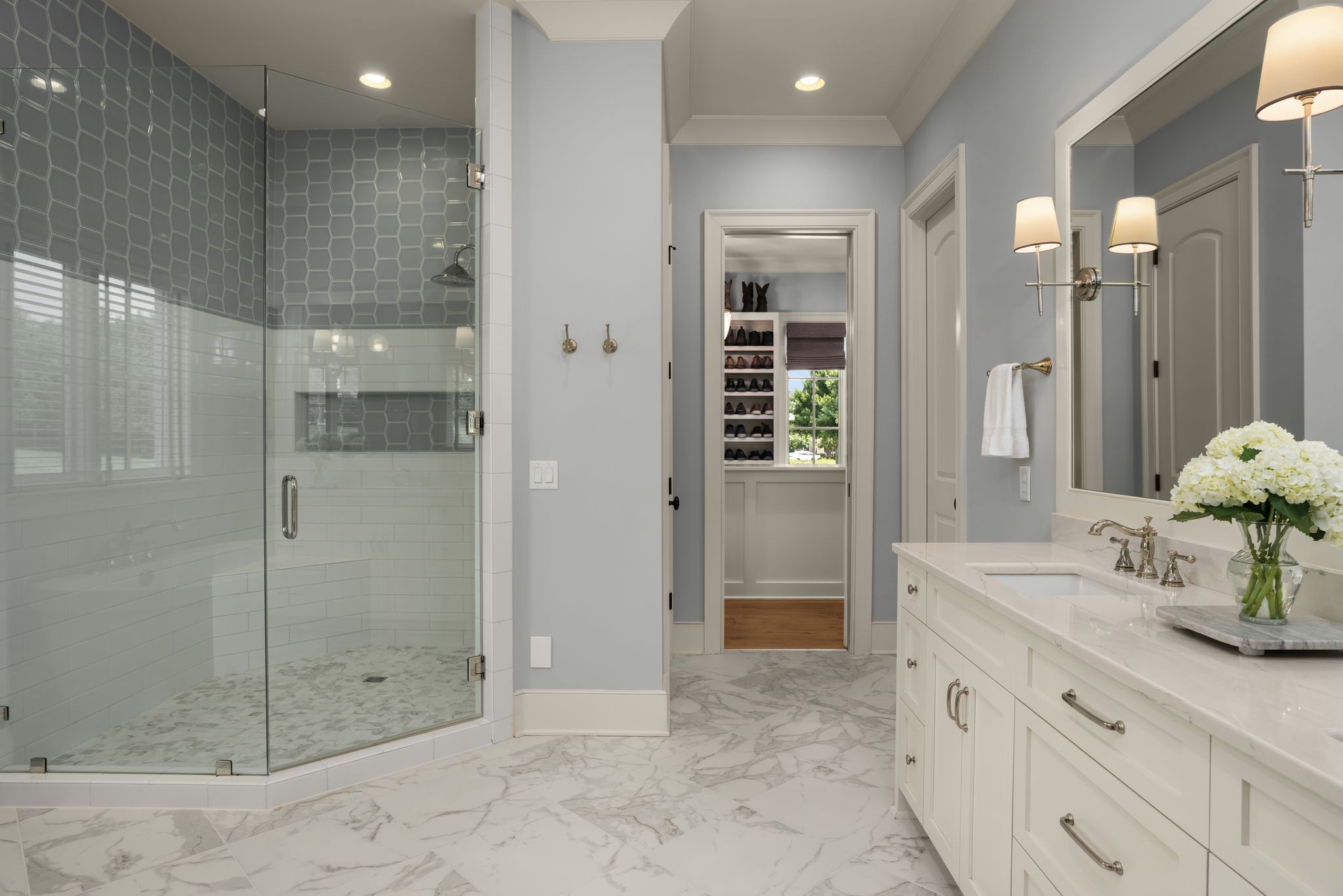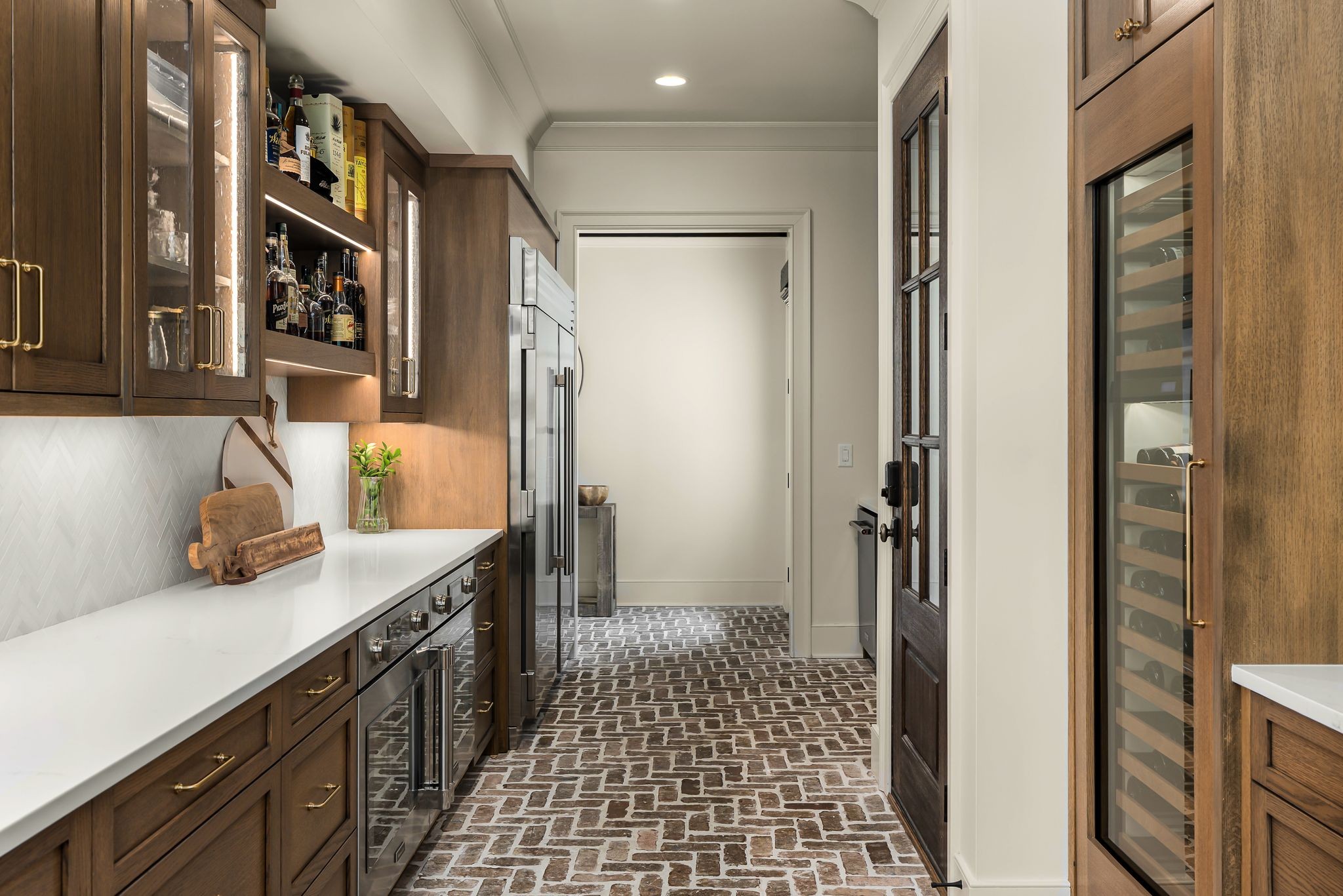 Designed for both grand entertaining and effortless everyday living, the property features 6 full baths, 2 half baths, a 5‑car garage, two laundry rooms, a spacious bonus room, and a beautifully appointed guest house connected to the main residence by a covered brick walkway. The layout blends elegance with functionality, offering generous room sizes, sophisticated finishes, and exceptional flow throughout.