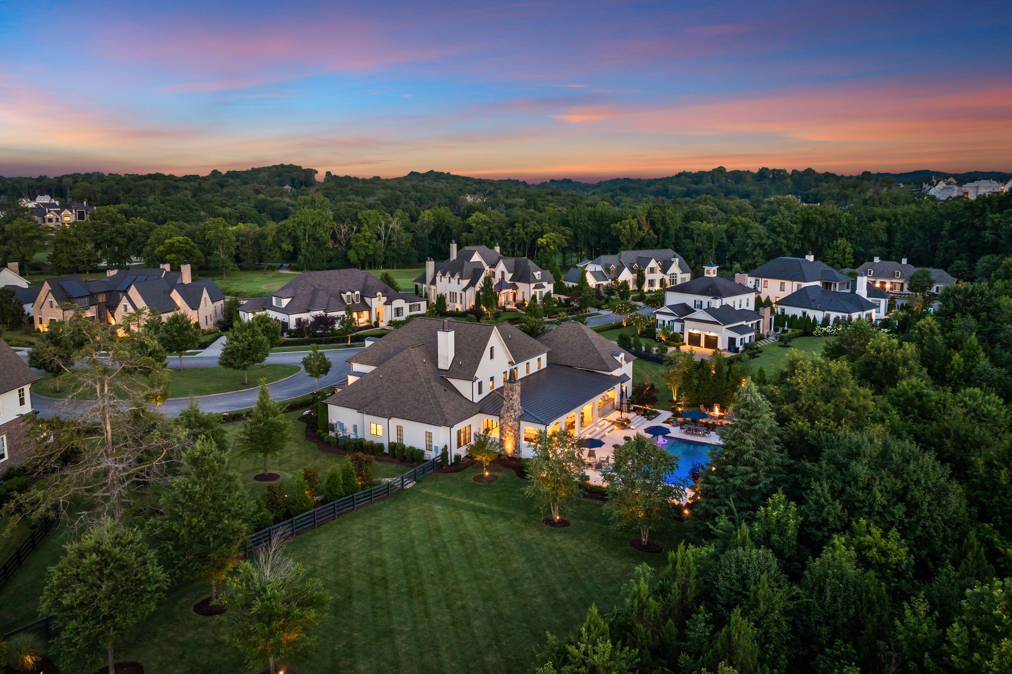 Located in The Grove, one of Middle Tennessee’s most prestigious gated golf communities, this exceptional custom estate spans 1.36 acres and offers more than 7,250 square feet of refined, thoughtfully curated living space. Set along an established, tranquil street with no nearby active construction, the residence provides a sense of privacy and serenity while remaining moments from the community’s world‑class amenities.